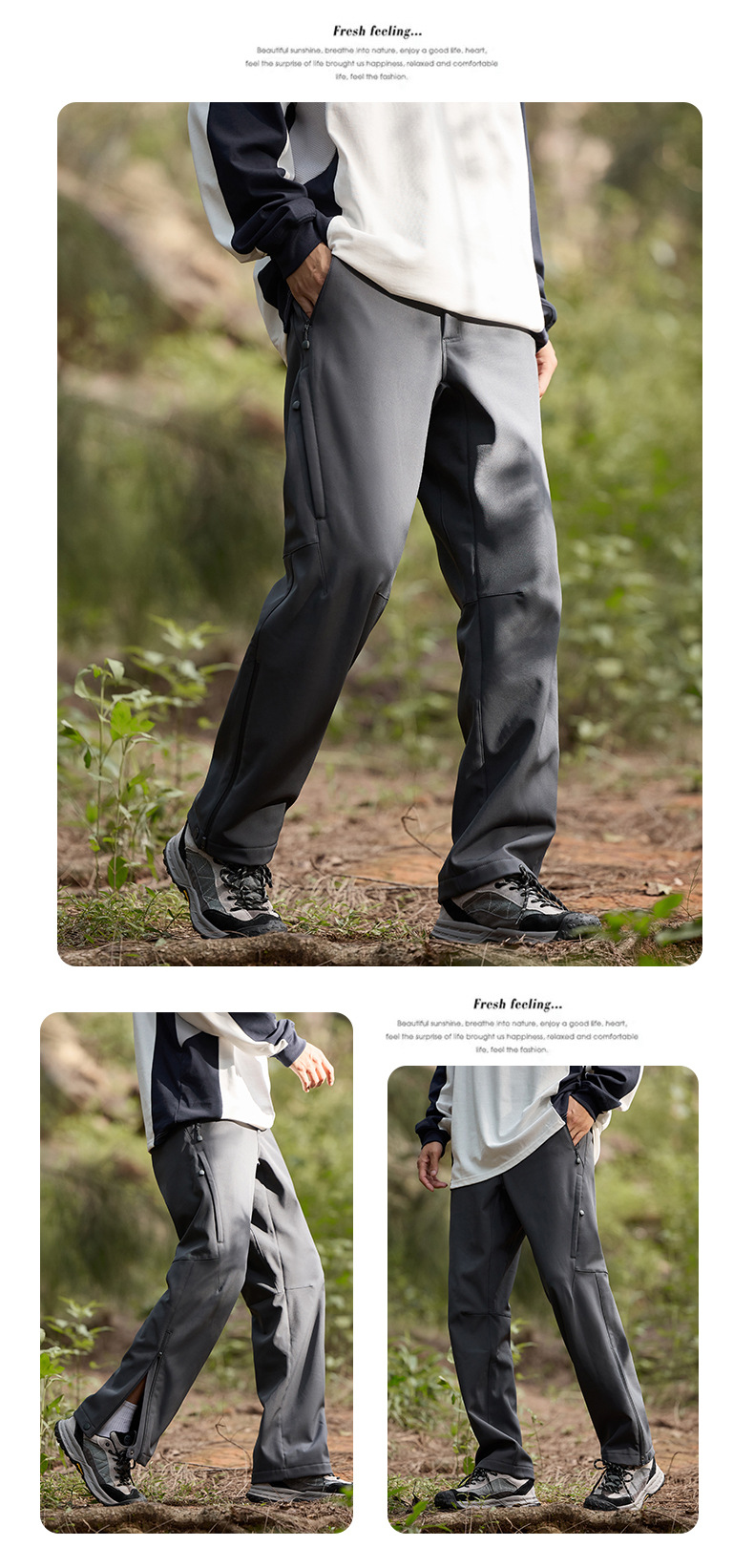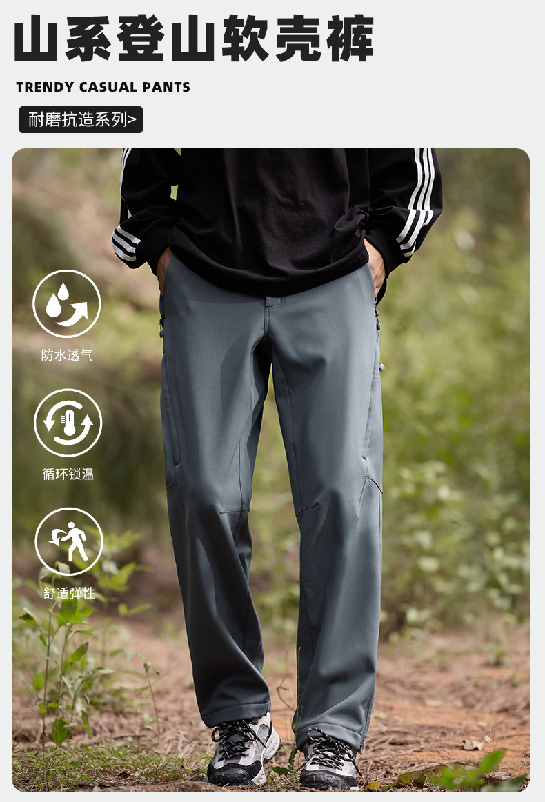산악 스타일 충전 바지 남성용 통기성 내마모성 야외 등산 바지 하이킹 여성용 방수제 기모 두꺼운 소프트 쉘 캐주얼 바지스토어 가기
