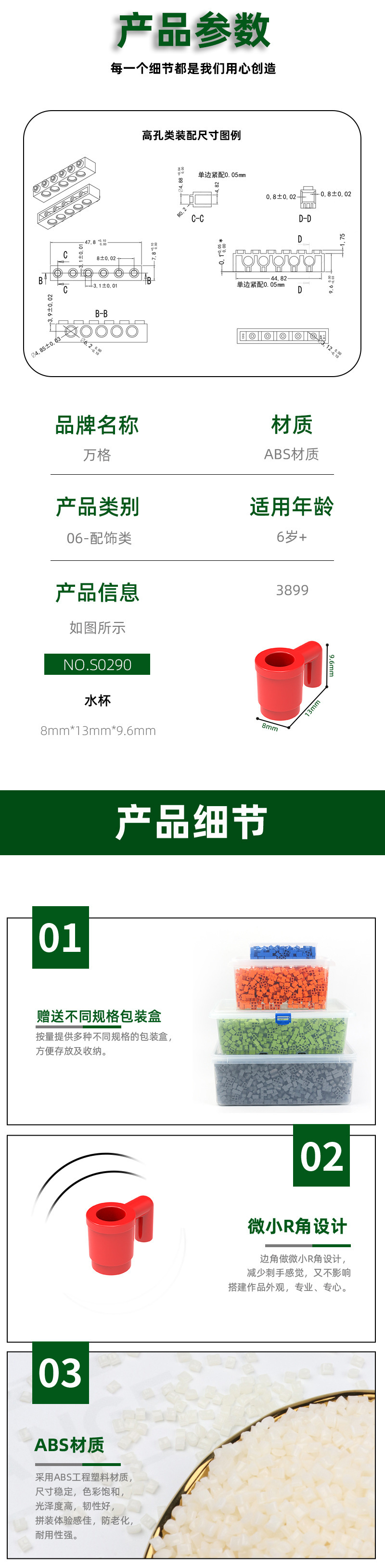 Vanger 장난감 diy 작은 입자 moc 국내 빌딩 블록 3899 조립 부품 물 컵 과학 및 교육 국경 도매