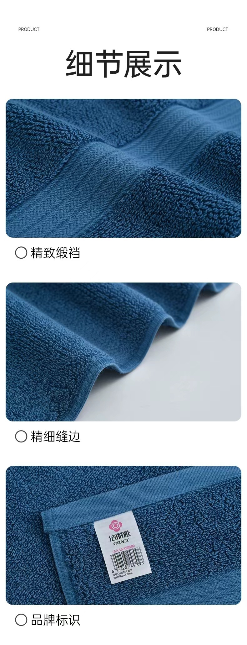 150g 케리야 두꺼운 대형 타월 순면 A급 흡수성 5A 항균 성인 남성용 세안 타월