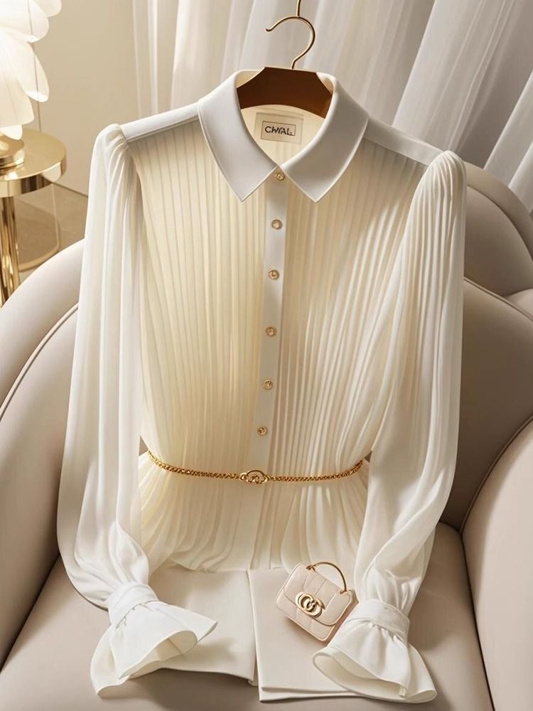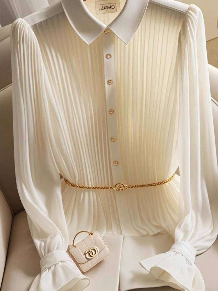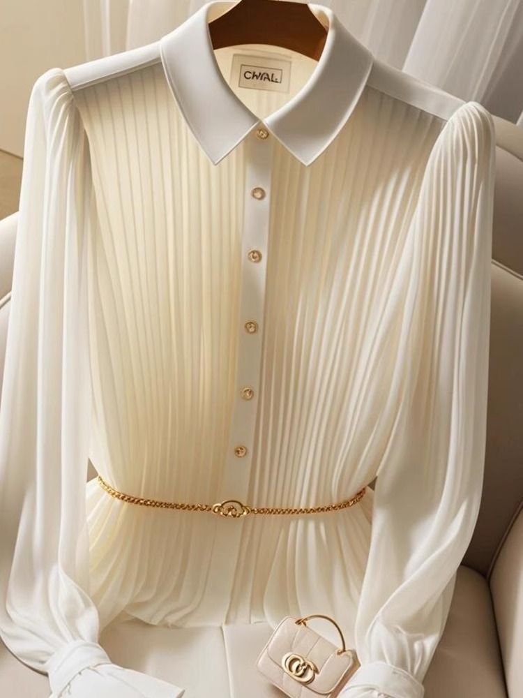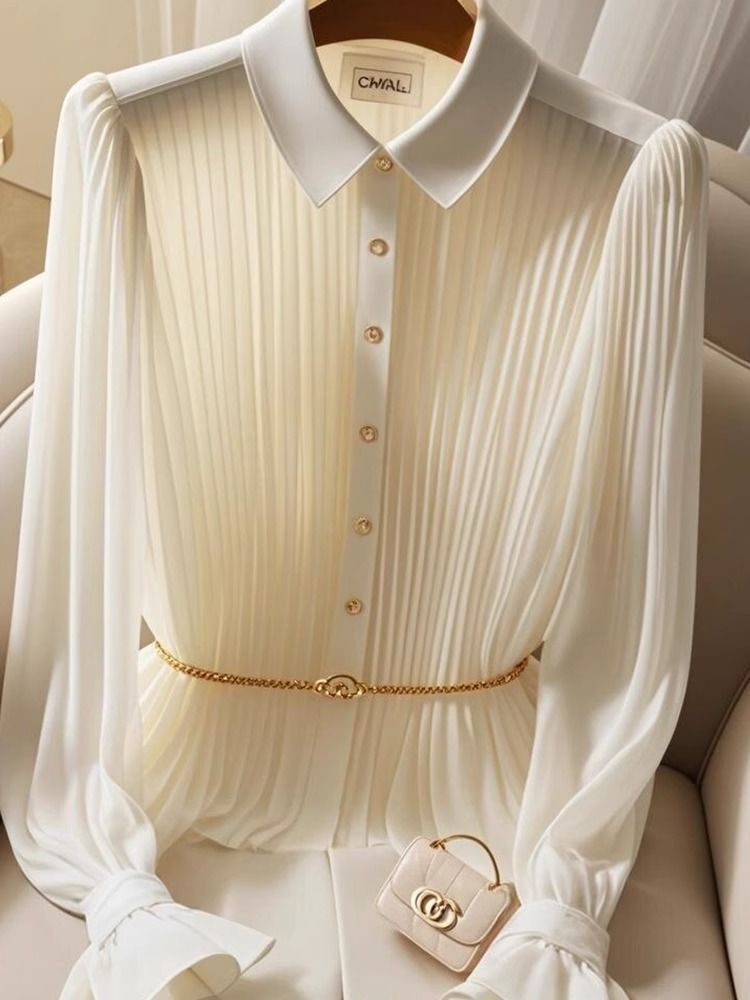 우아한 쉬폰 탑 여성의 여름 빛 성숙한 프랑스 틈새 독특한 아름다운 작은 셔츠 빛 고급 고급 고급 흰색 셔츠 가을