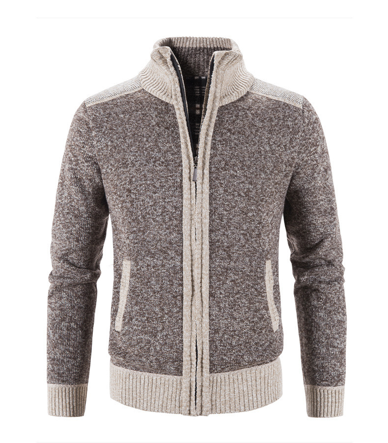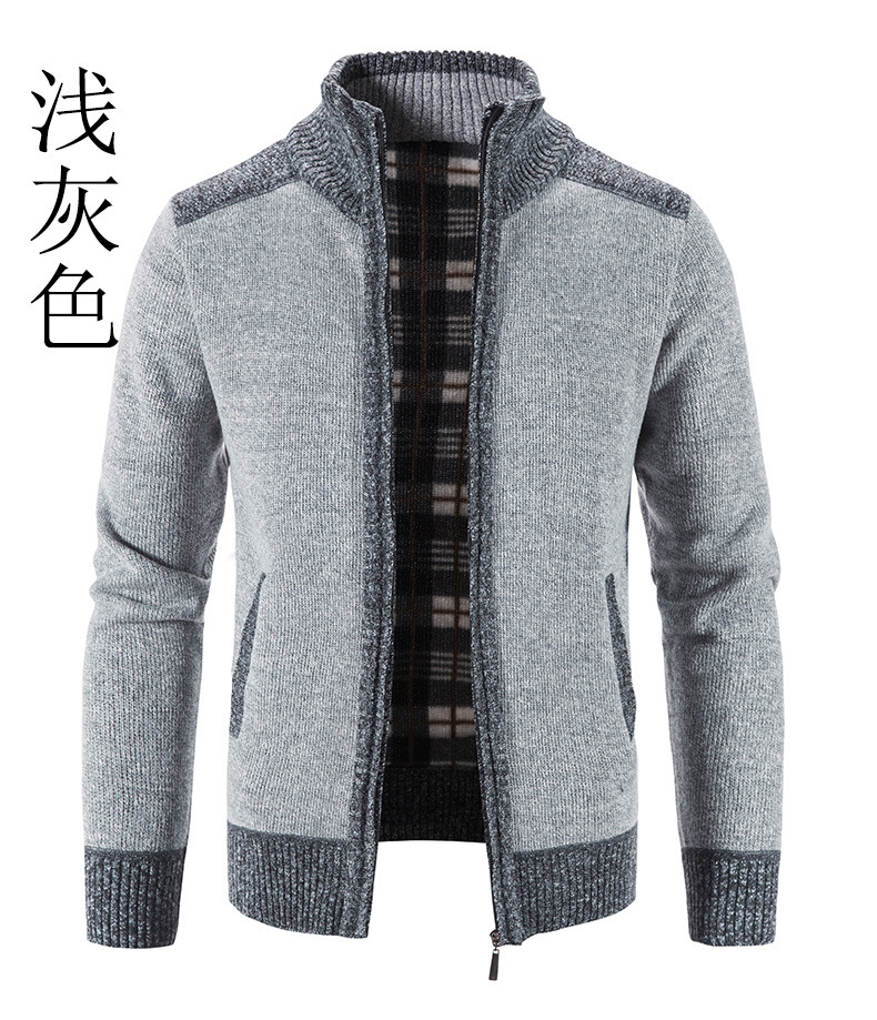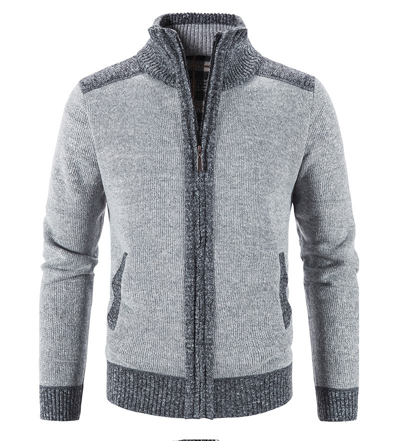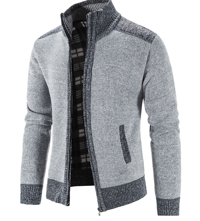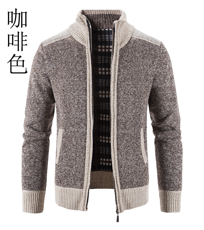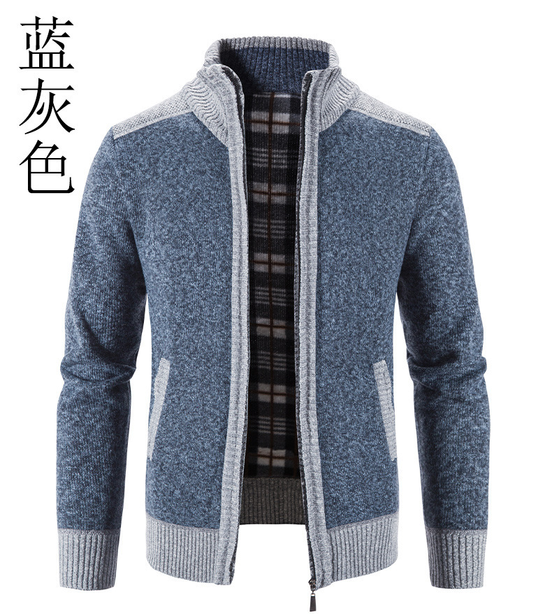 국경 간 대외 무역 남성 카디건 스웨터 가을과 겨울 색상 대조 기모 따뜻한 스탠드 칼라 스웨터 카디건 코트 도매