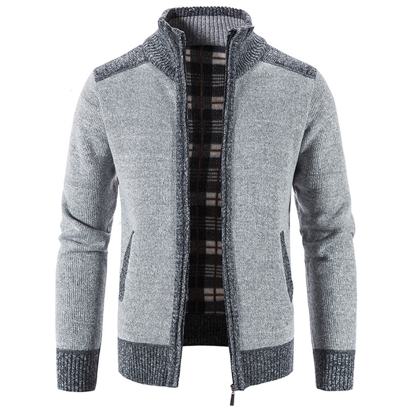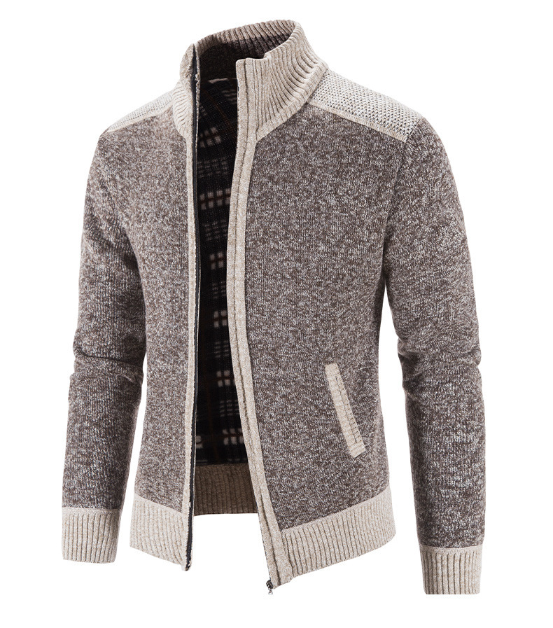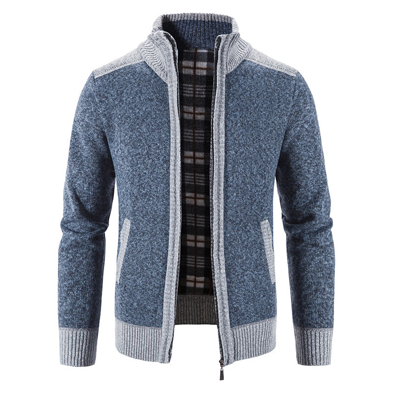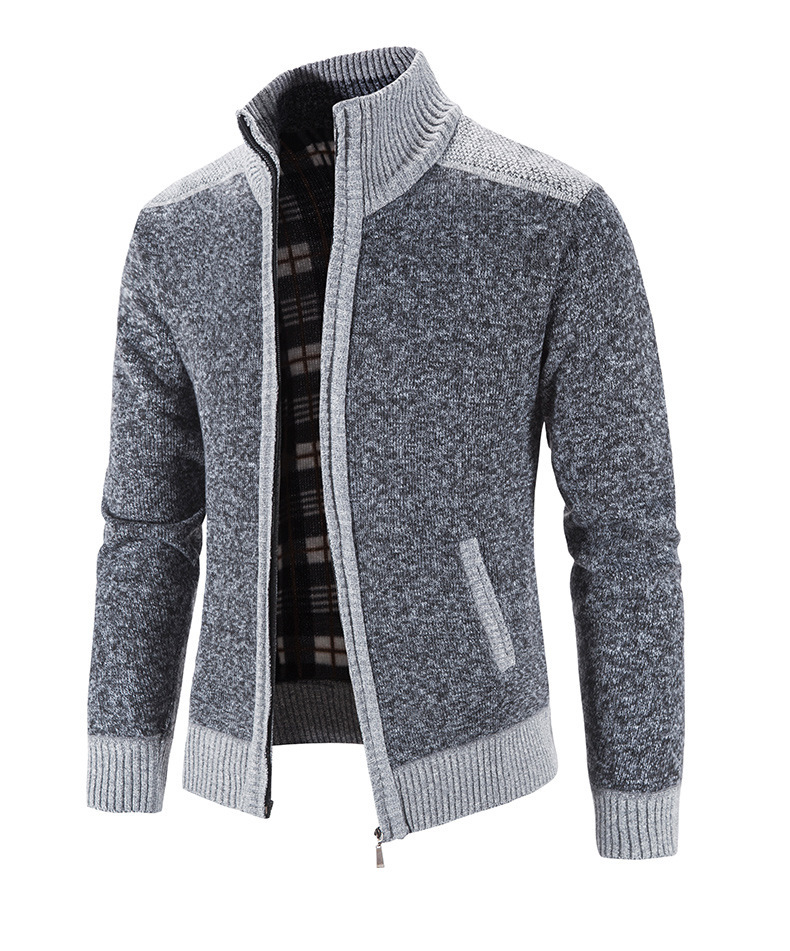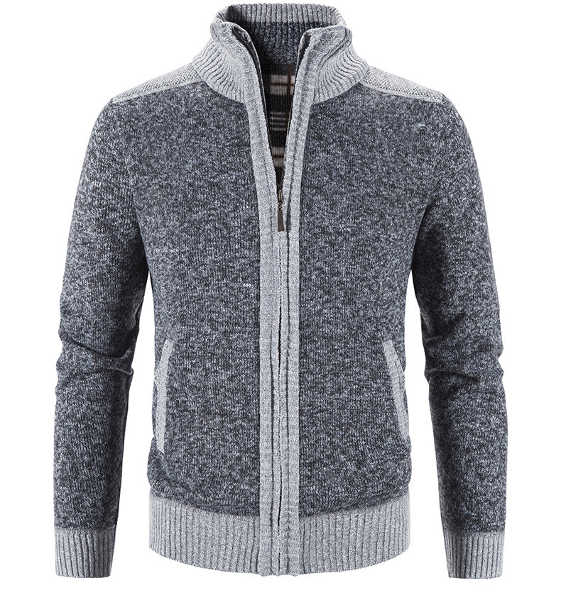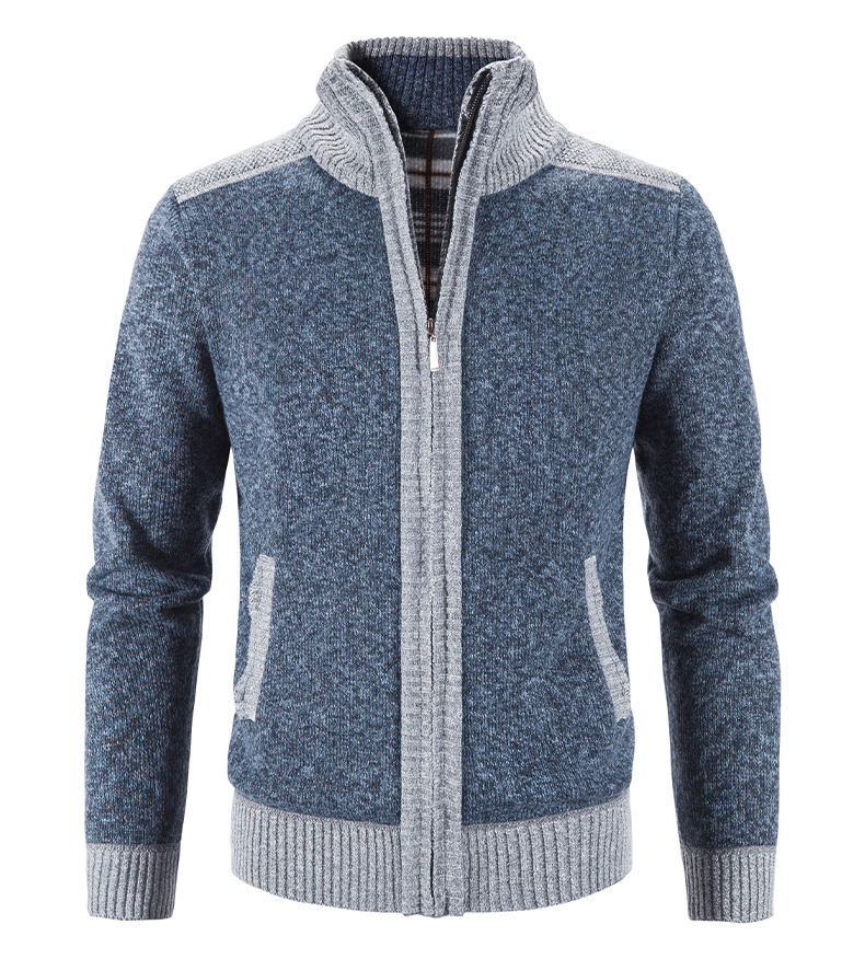 국경 간 대외 무역 남성 카디건 스웨터 가을과 겨울 색상 대조 기모 따뜻한 스탠드 칼라 스웨터 카디건 코트 도매