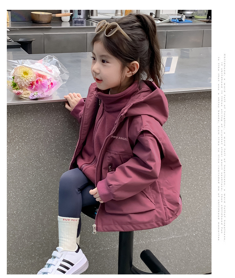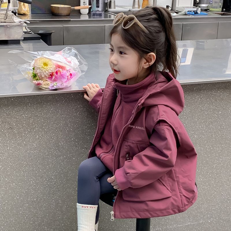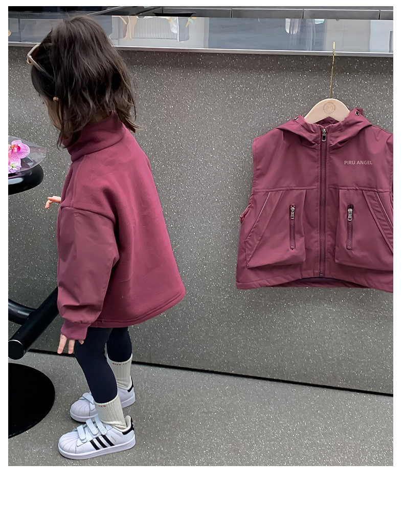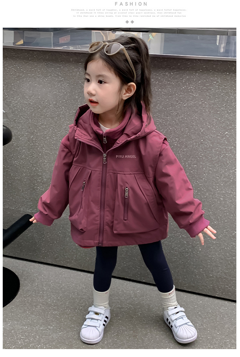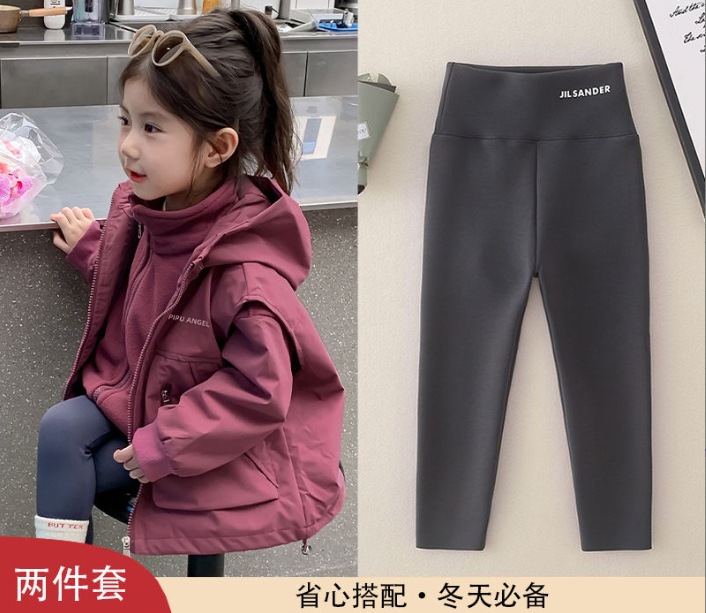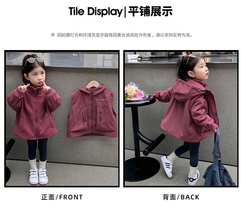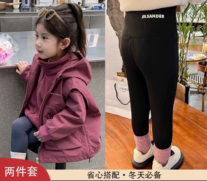 소녀 코트 가을 2024 새로운 가을 옷 어린이 충전 옷 조끼 투피스 세트 소녀의 가을과 겨울 세트스토어 가기