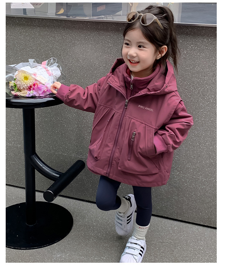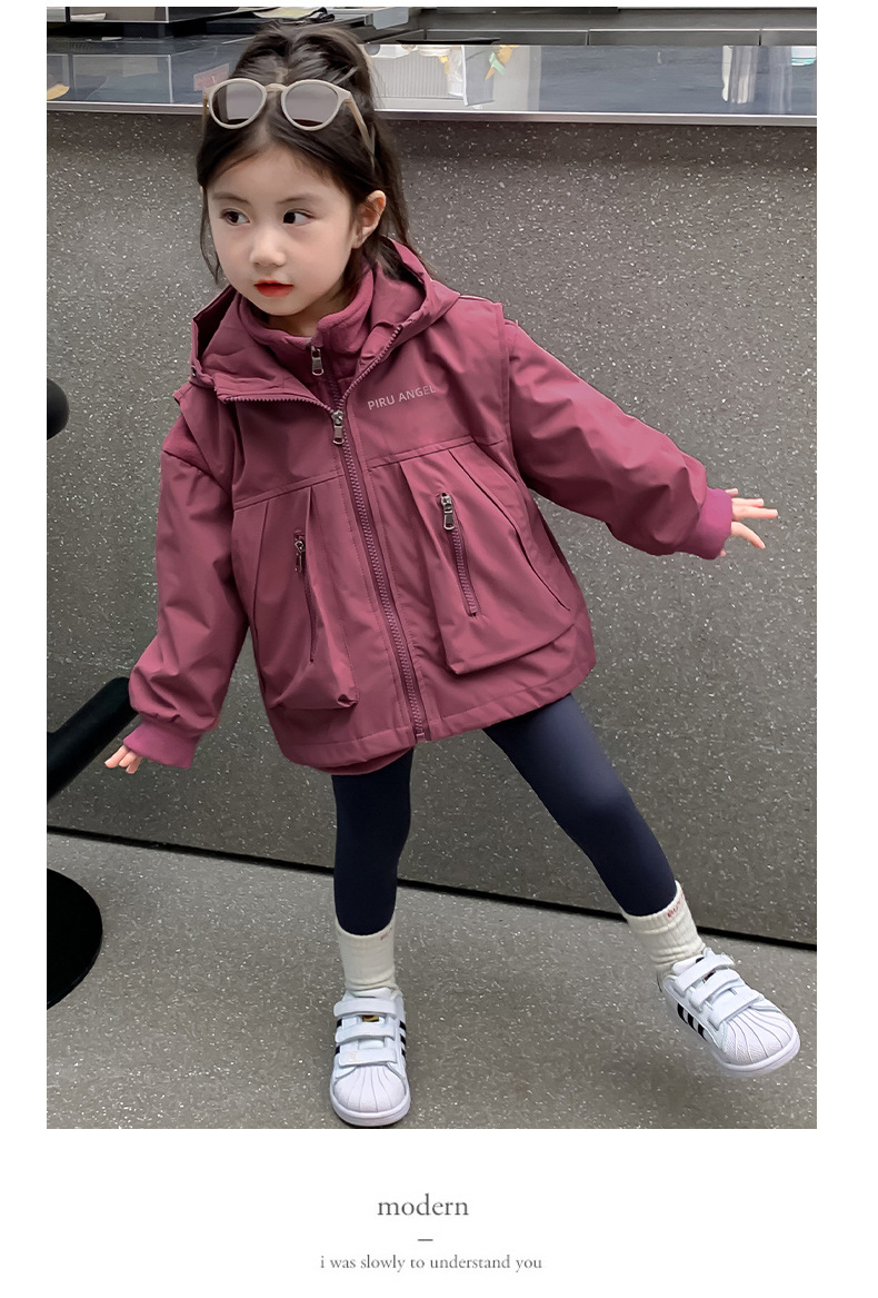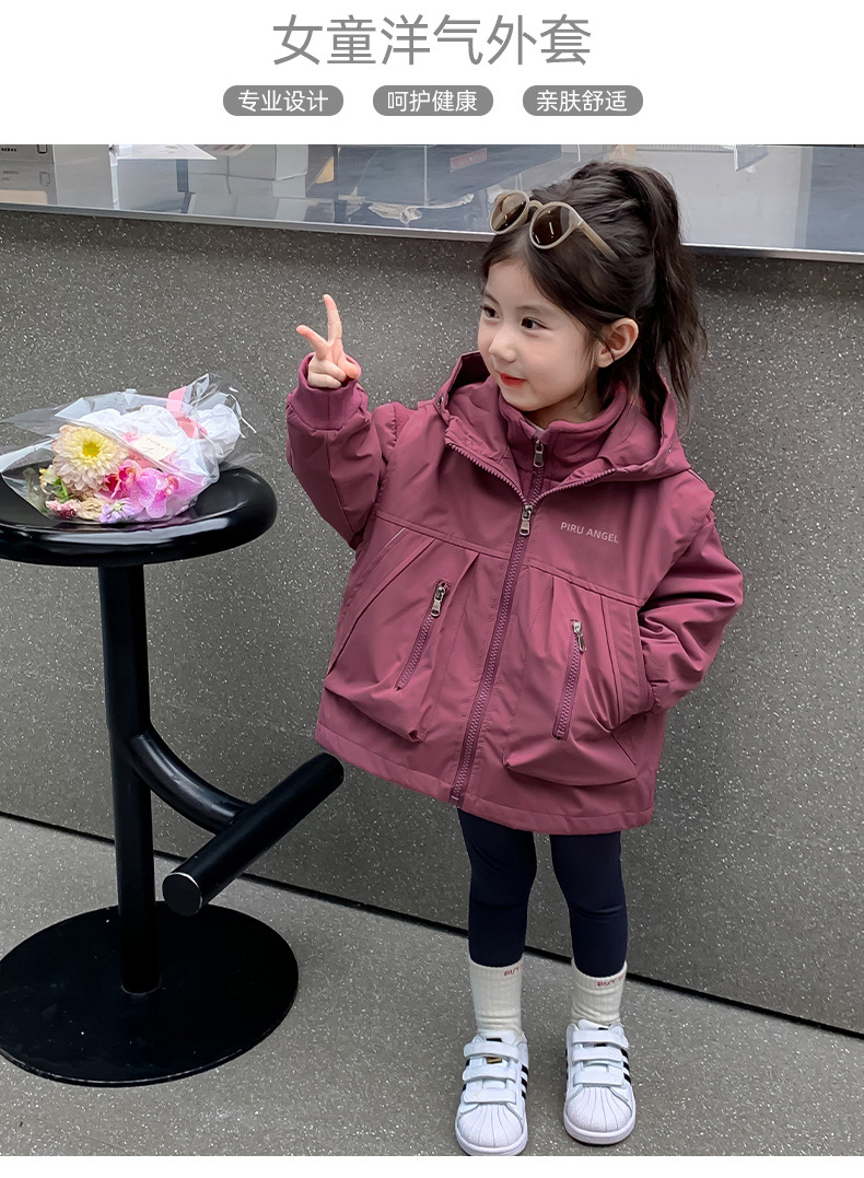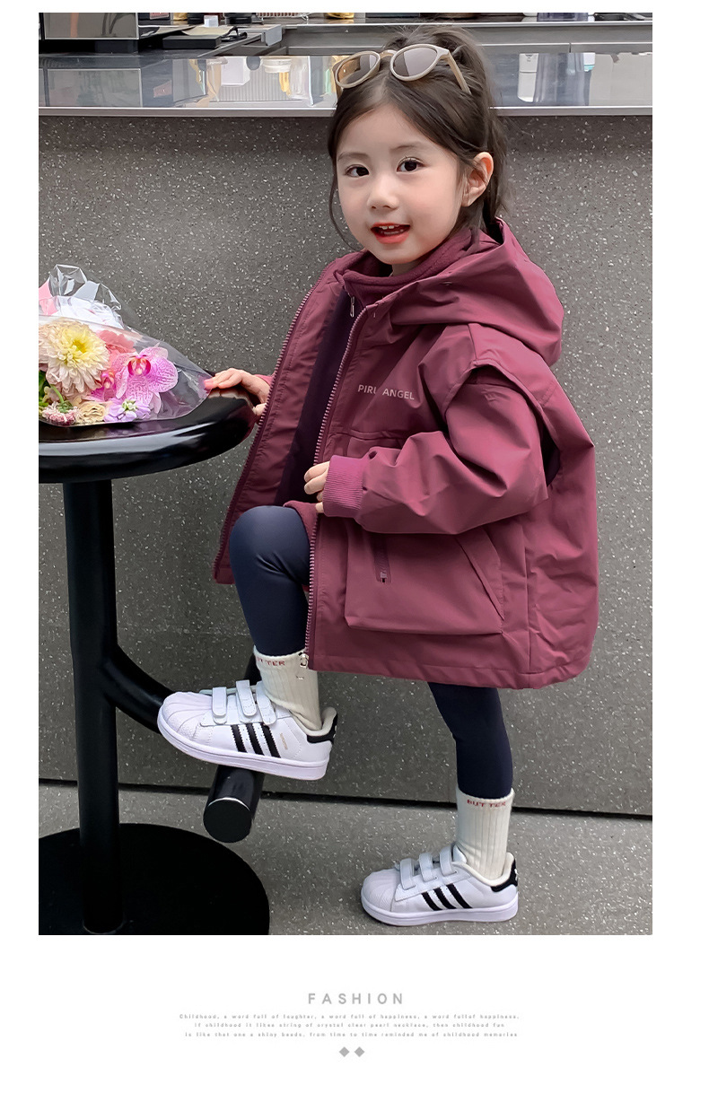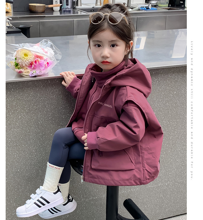 소녀 코트 가을 2024 새로운 가을 옷 어린이 충전 옷 조끼 투피스 세트 소녀의 가을과 겨울 세트스토어 가기