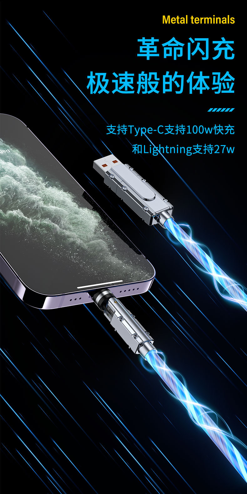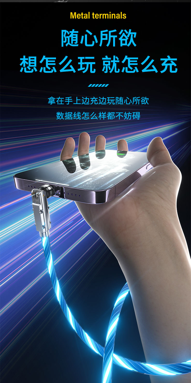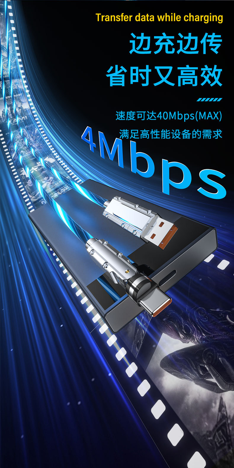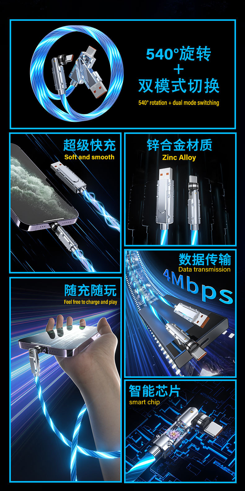 범용 회전 스트리머 팔꿈치 기계 PD 빠른 충전 데이터 케이블 애플 15 화웨이 mate60 충전 트레몰로