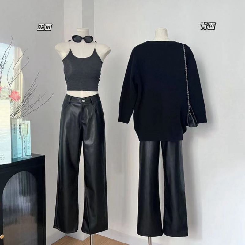 Maillard Vintage Halo 다크 브라운 가죽 바지 여성용 가을과 겨울 높은 허리 넓은 다리 바지 캐주얼 스트레이트 바지스토어 가기