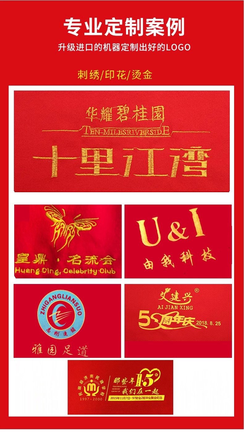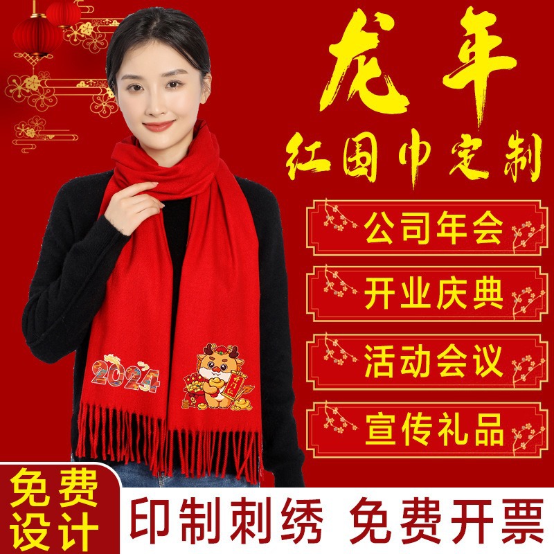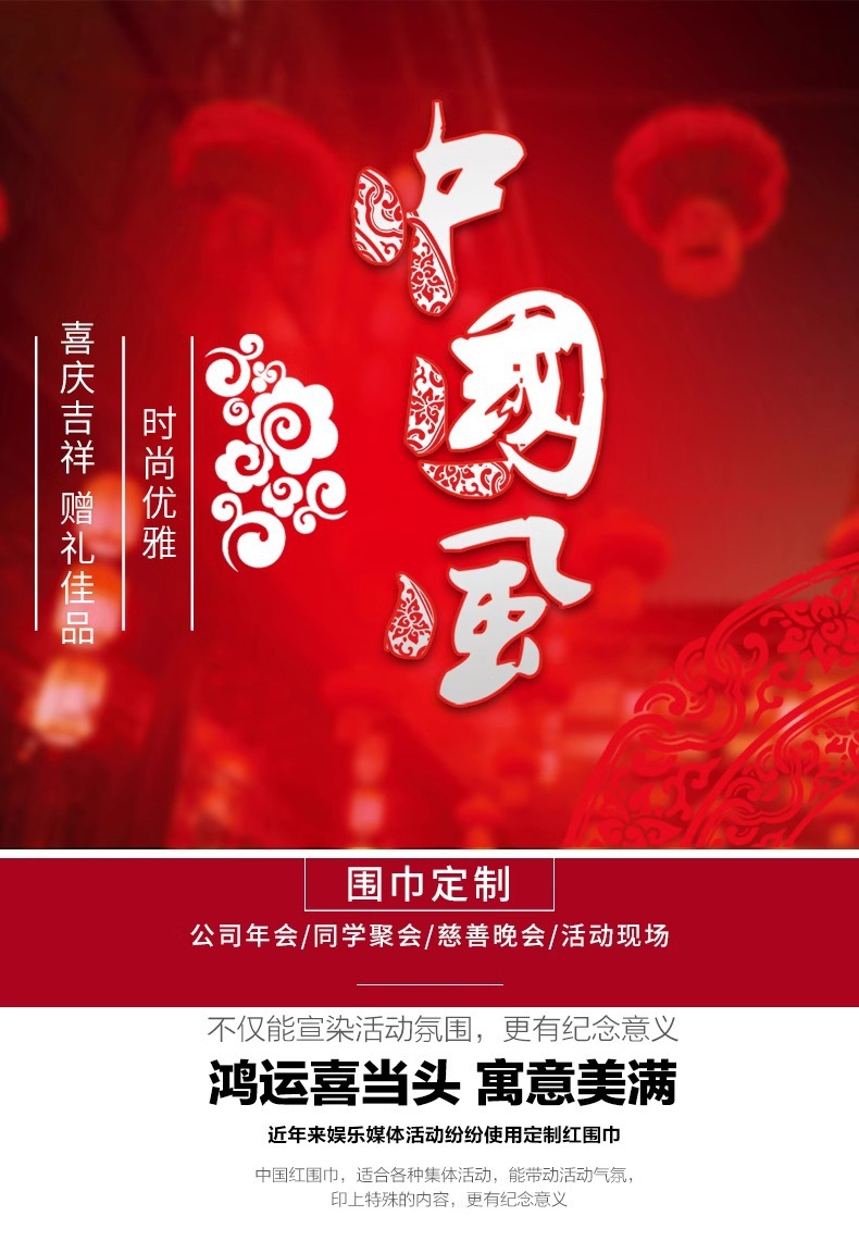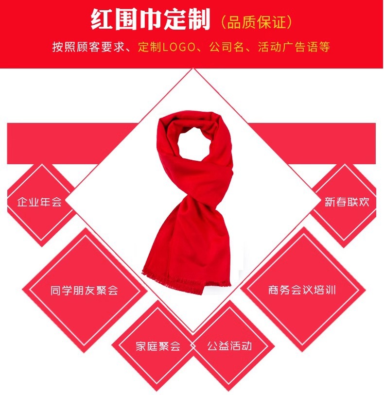 연례 회의 중국 빨간 스카프 맞춤 도매 파티 활동 사용자 정의 자수 인쇄 로고 큰 빨간 핑 푸스토어 가기