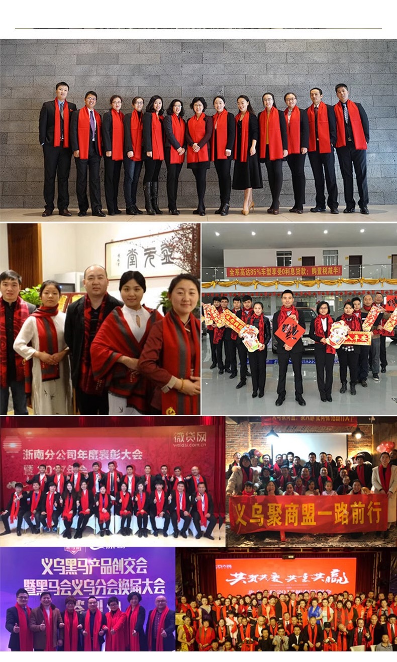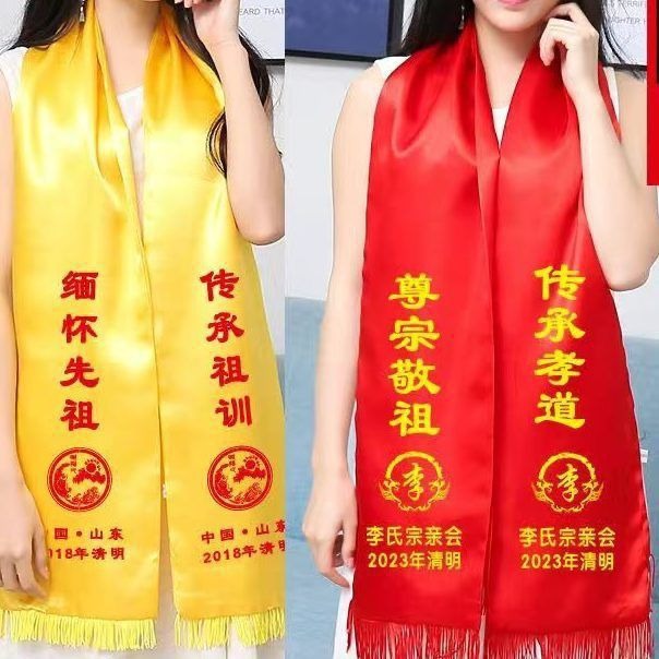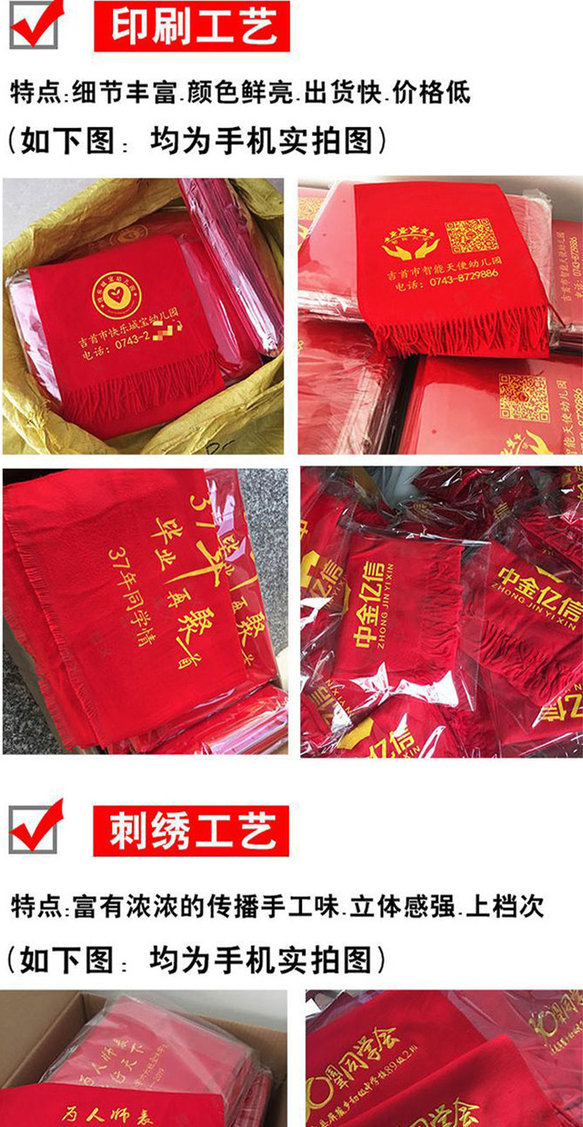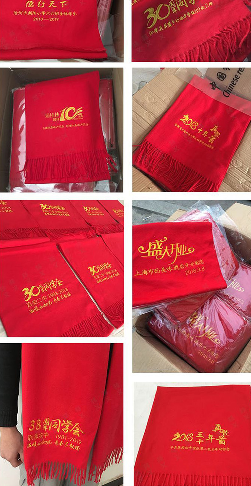 연례 회의 중국 빨간 스카프 맞춤 도매 파티 활동 사용자 정의 자수 인쇄 로고 큰 빨간 핑 푸스토어 가기