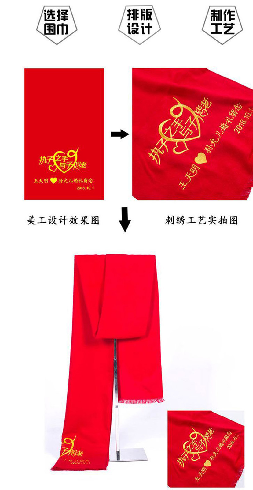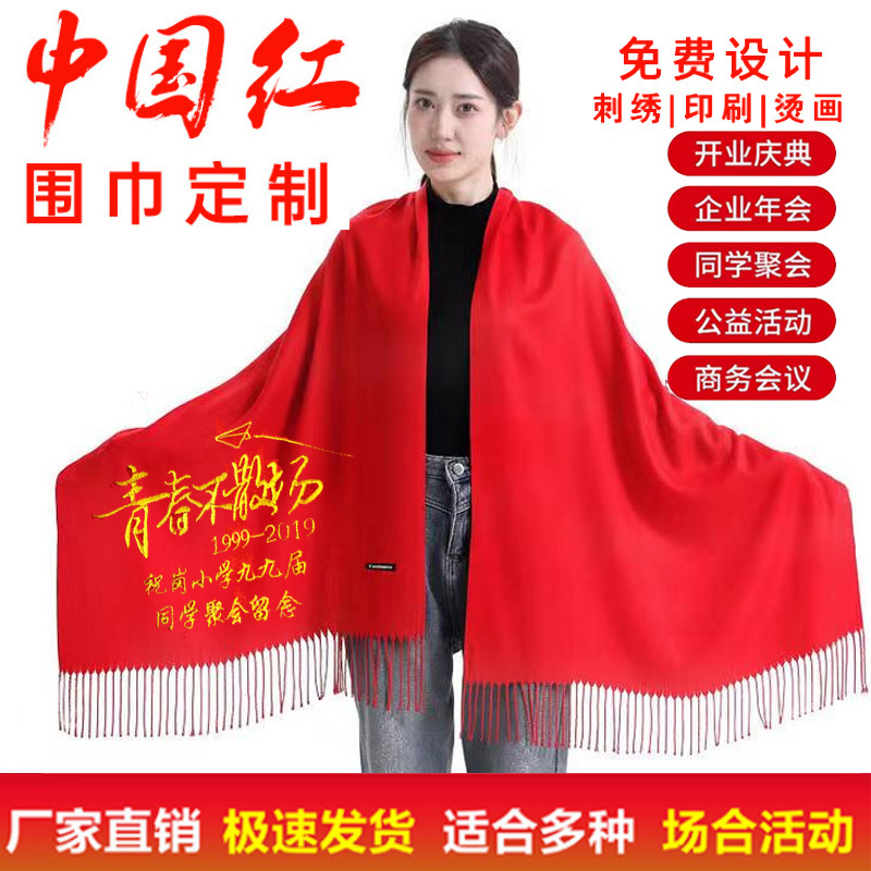 연례 회의 중국 빨간 스카프 맞춤 도매 파티 활동 사용자 정의 자수 인쇄 로고 큰 빨간 핑 푸
