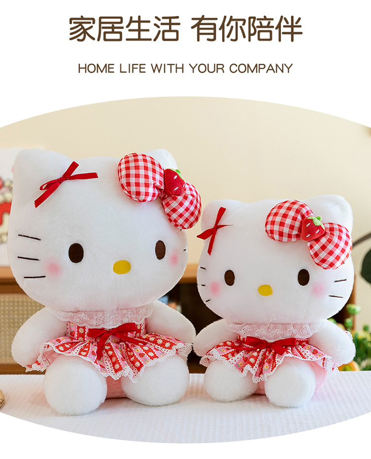 국경 새 딸기 체크 스커트 헬로 키티 인형 잡아 인형 베개 천 인형 소녀 선물 도매스토어 가기