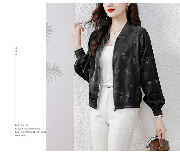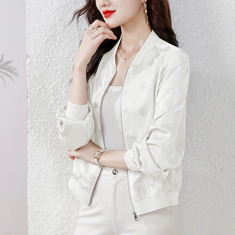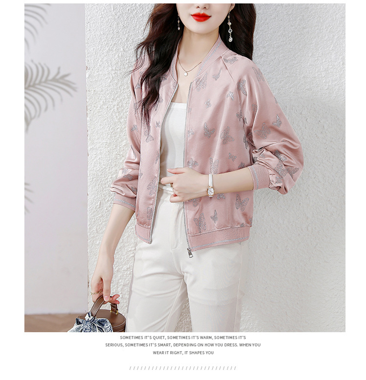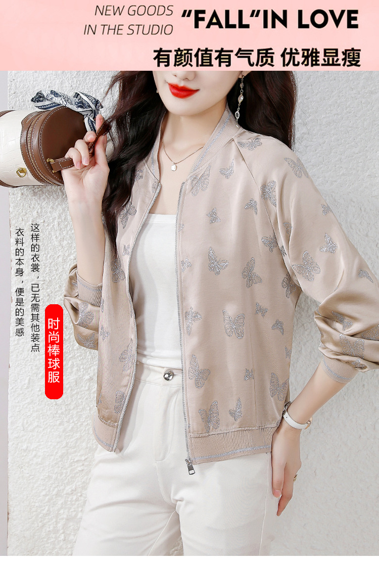 세련된 나이를 줄이는 실크 짧은 코트 여성의 봄과 가을 새로운 패션 캐주얼 재킷 여성 야구 의류 탑