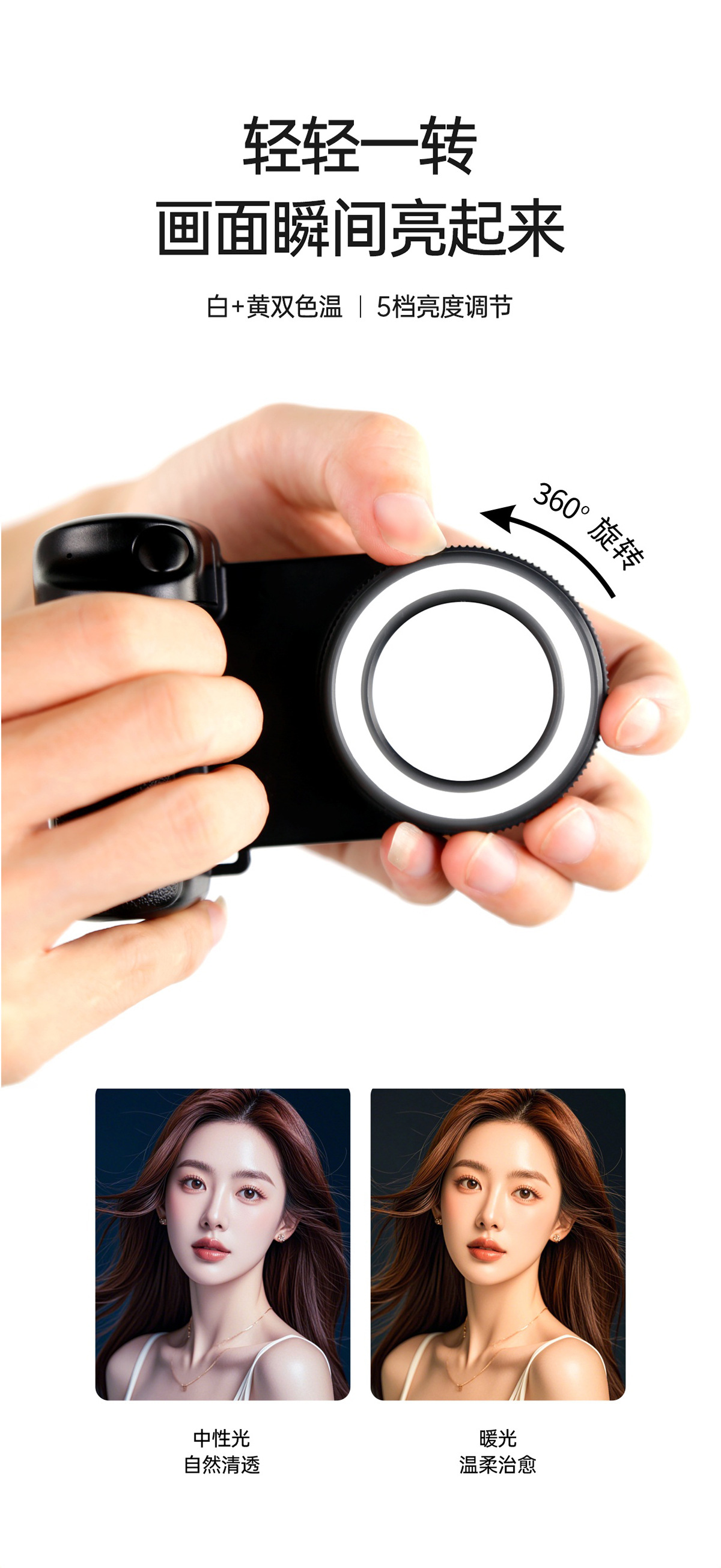 새로운 휴대 전화 셀카 조명 블루투스 보조 셀카 링 라이트 라이브 비디오 촬영 조명