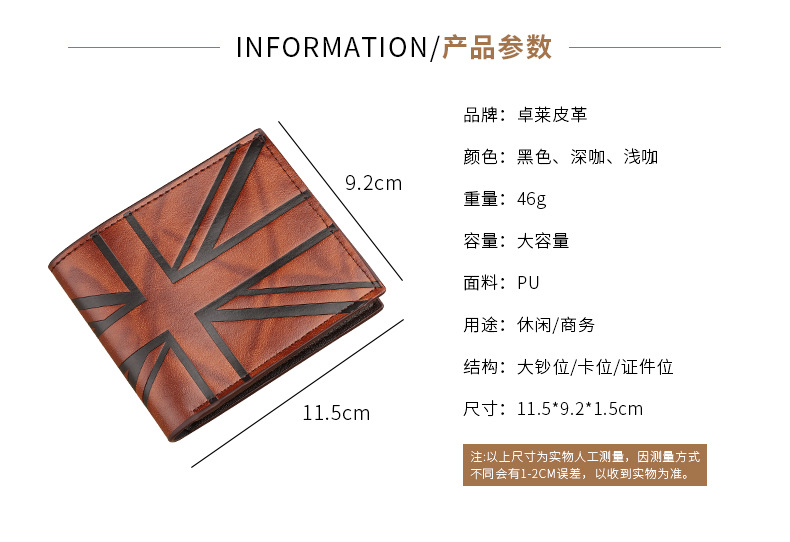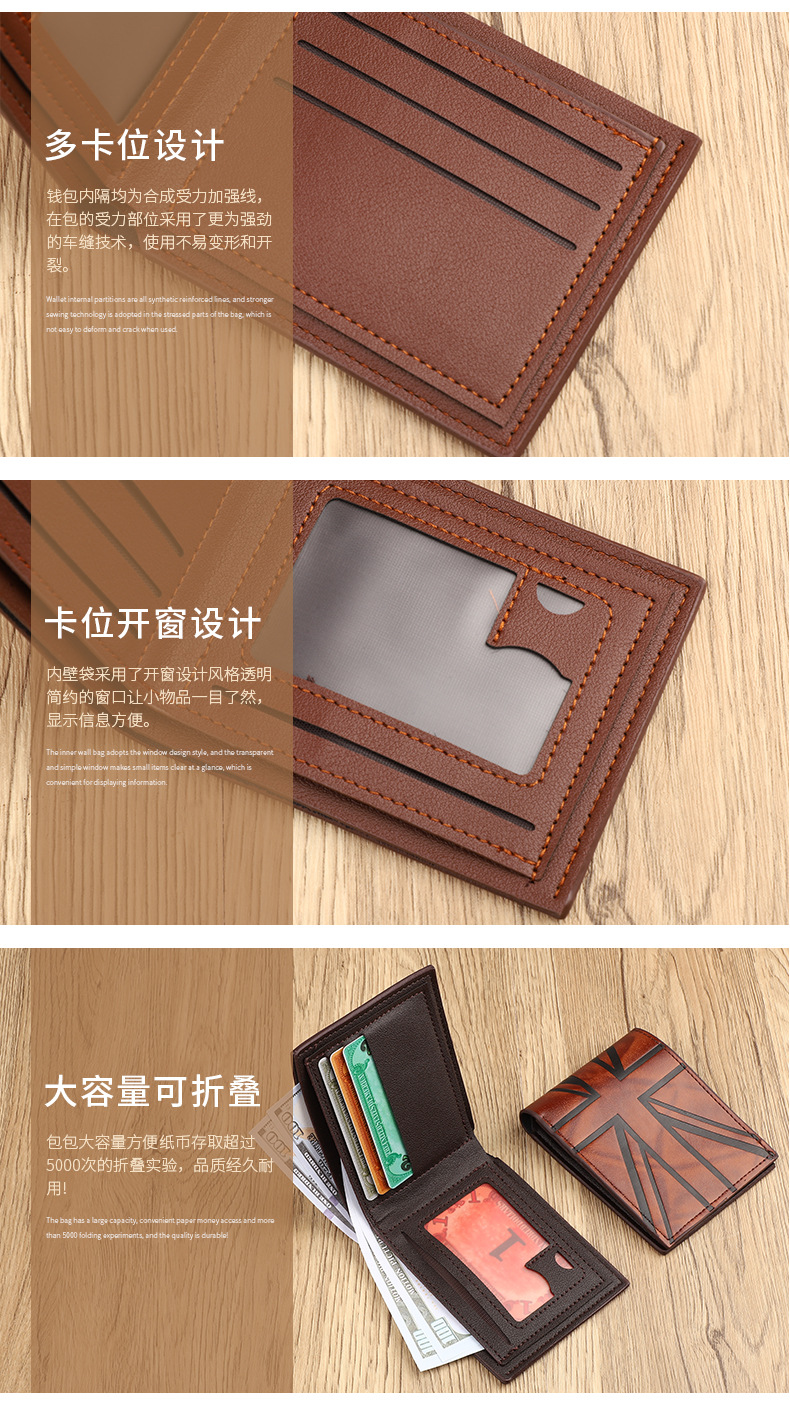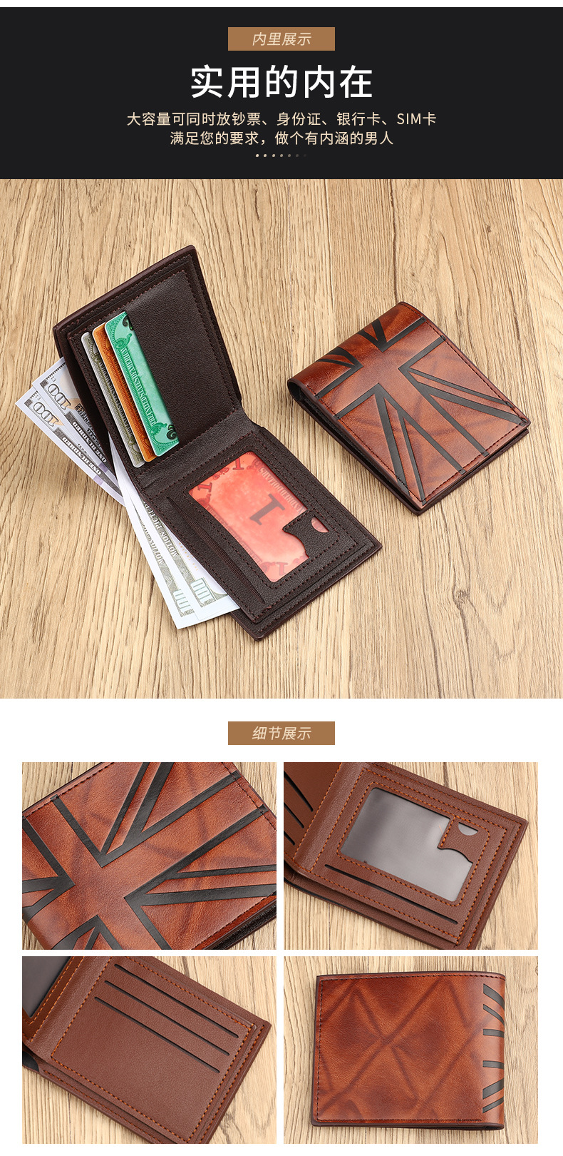 유럽과 미국의 복고풍 쌀 양각 남성 짧은 지갑 대용량 동전 지갑 멀티 카드 지갑 재고 도매