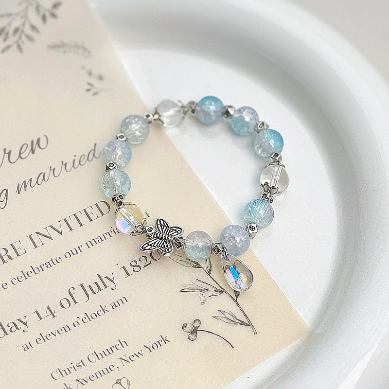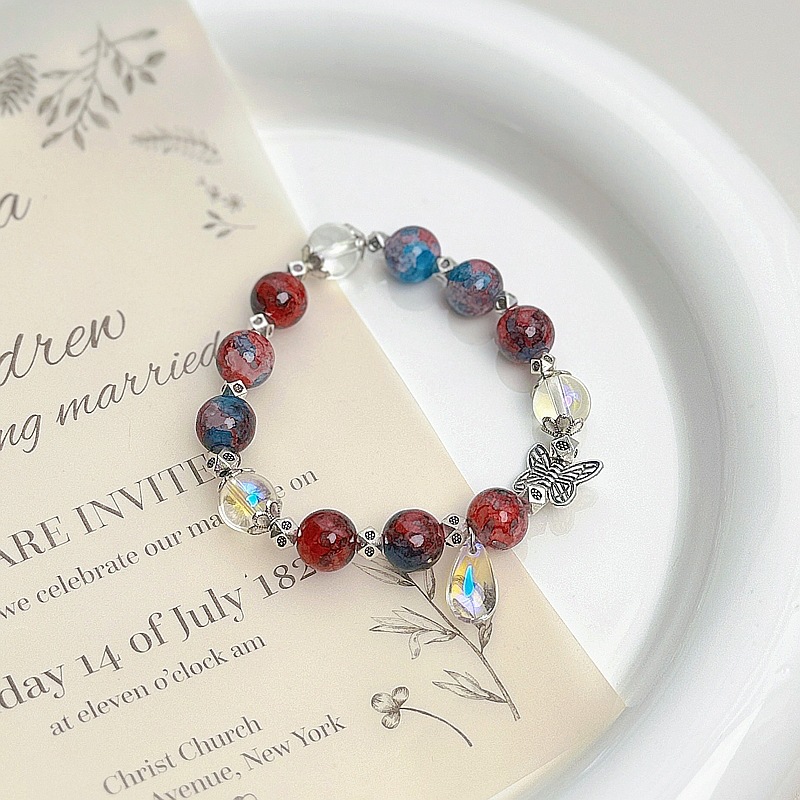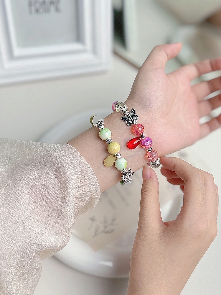국가 스타일의 창조적 인 유리 플레이트 플레이 텍스트 플레이 팔찌 여성 도매 아트 새로운 중국 나비 크리스탈 팔찌는 조수를 퇴색하지 않습니다