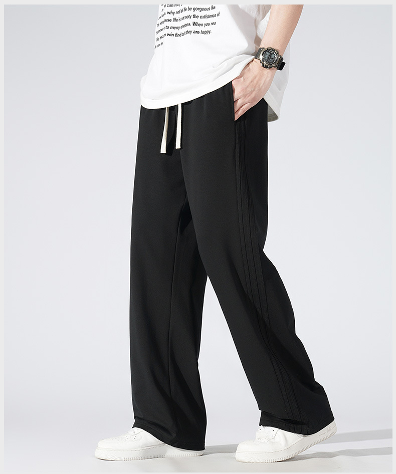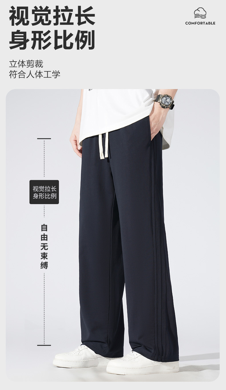 여름 남성 캐주얼 바지 얇은 스트레이트 레그 스웨트팬츠 루즈핏 캐주얼 스포츠 팬츠 젊은 트렌드 학생 와이드 레그 남성 바지