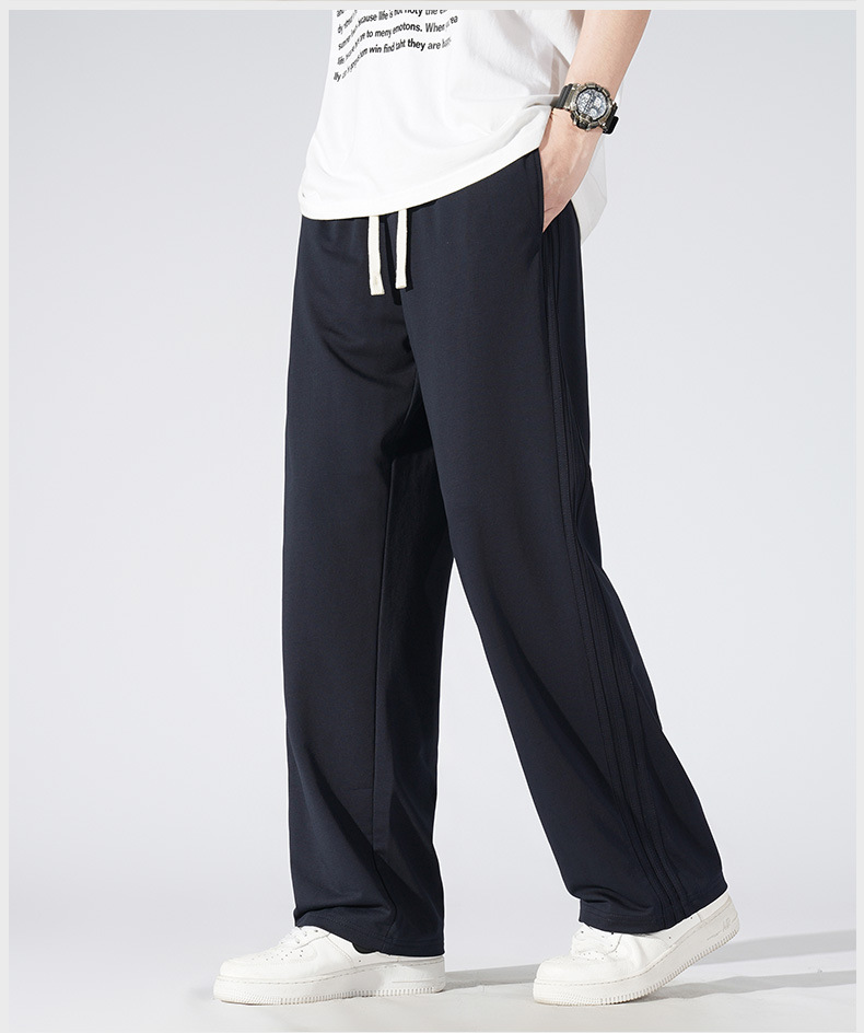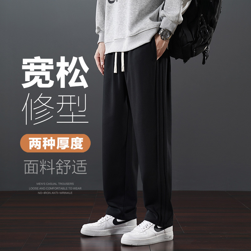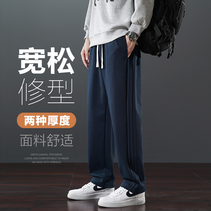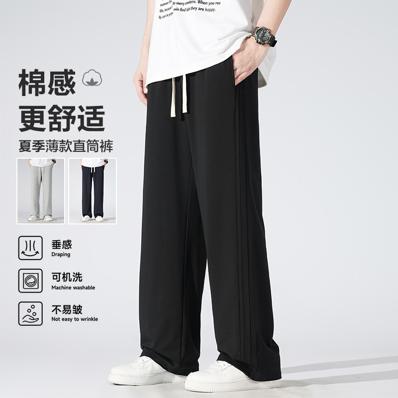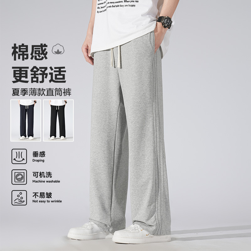 여름 남성 캐주얼 바지 얇은 스트레이트 레그 스웨트팬츠 루즈핏 캐주얼 스포츠 팬츠 젊은 트렌드 학생 와이드 레그 남성 바지스토어 가기