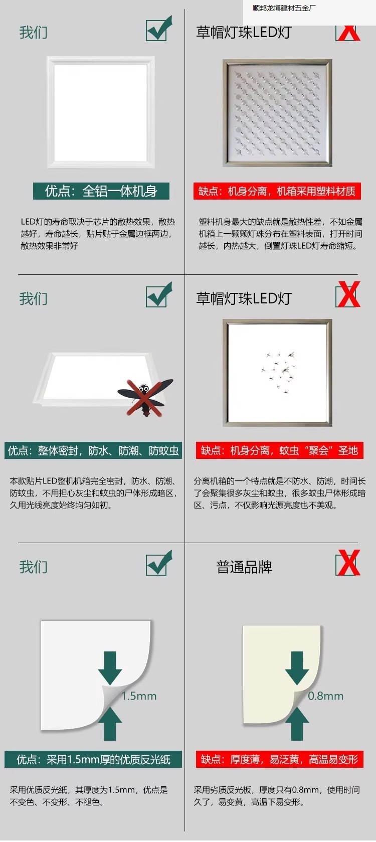 오팔 통합 천장 led 램프 주방 욕실 임베디드 알루미늄 거셋 천장 300x300x600 평면 패널 램프