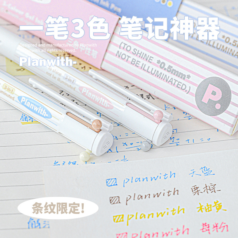 Planwith Friend Plan 삼각형 멀티 컬러 프레스 속건성 브러시 질문 펜 학생 시험 노트 모듈 젤 펜스토어 가기
