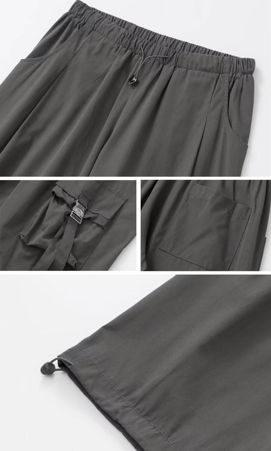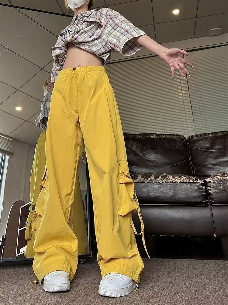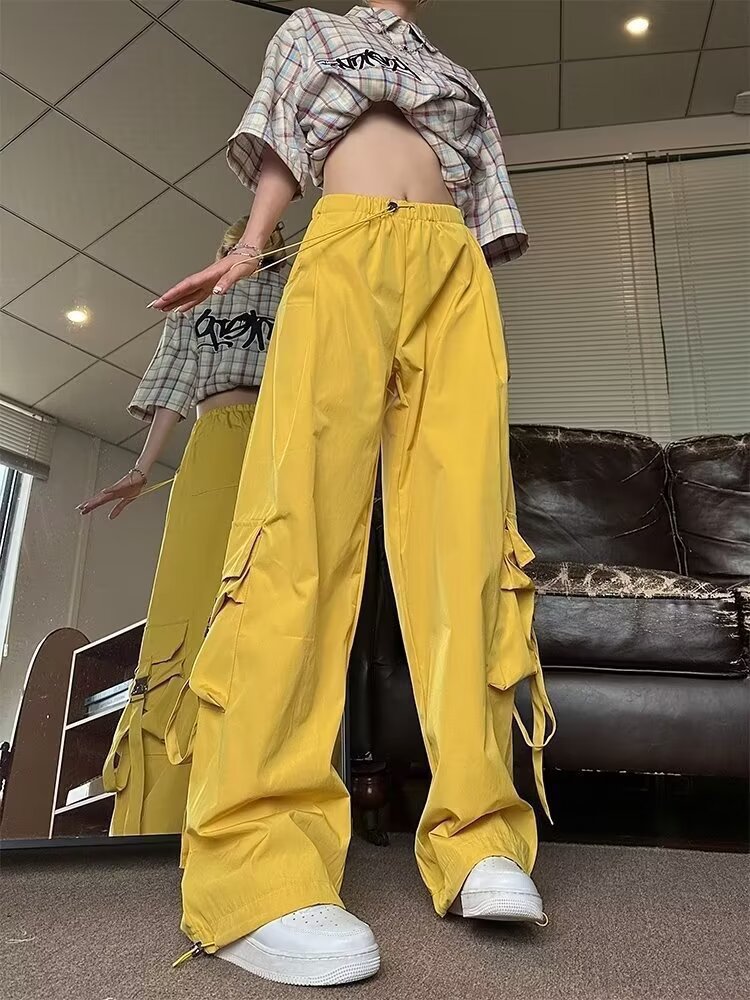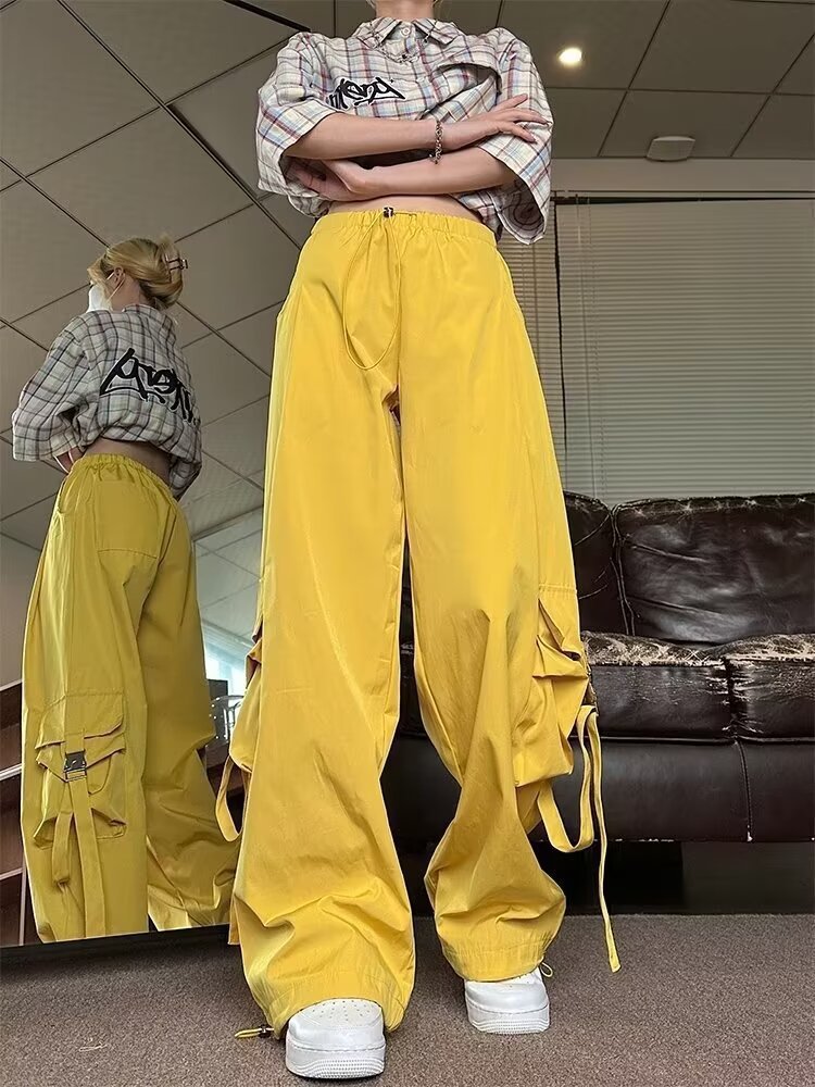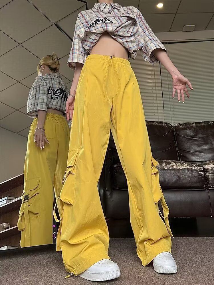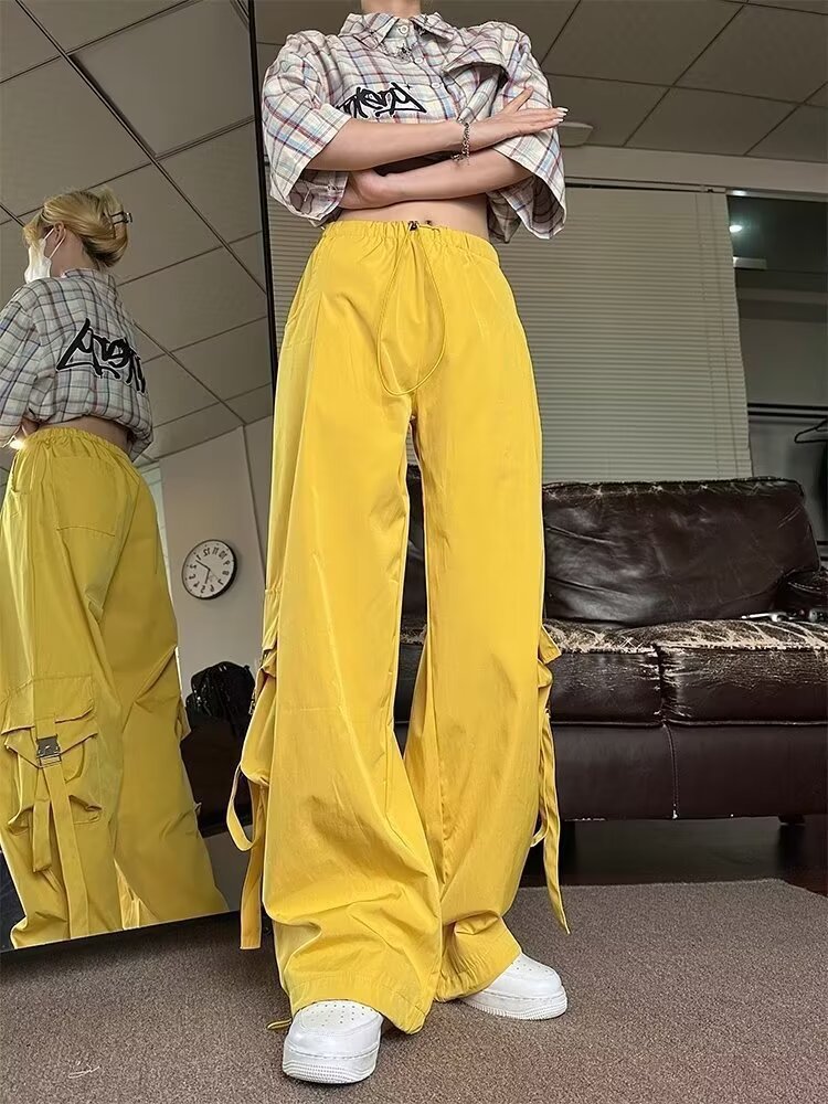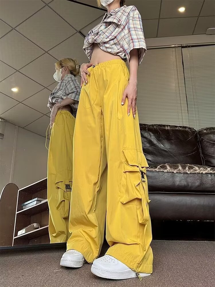 봄 여름 여성용 미국식 와이드 레그 낙하산병 루즈한 작업복, 얇고 속건성, 복고풍, 약간 플레어되는 캐주얼 바지스토어 가기