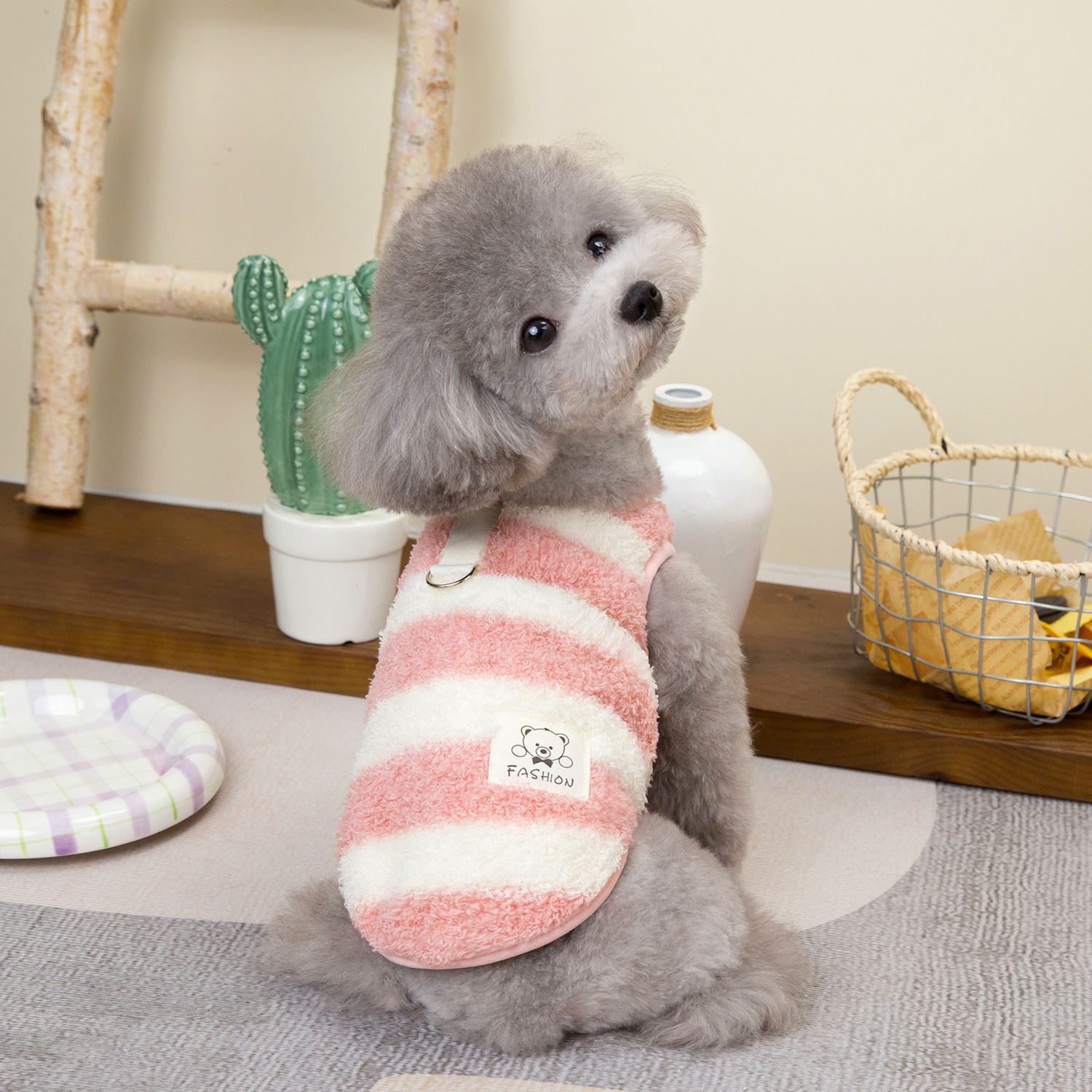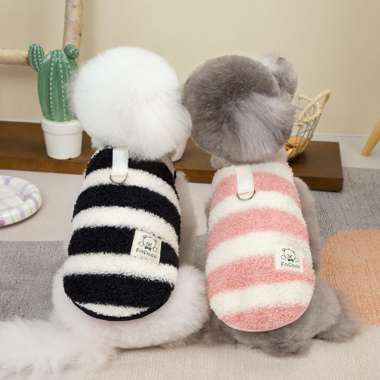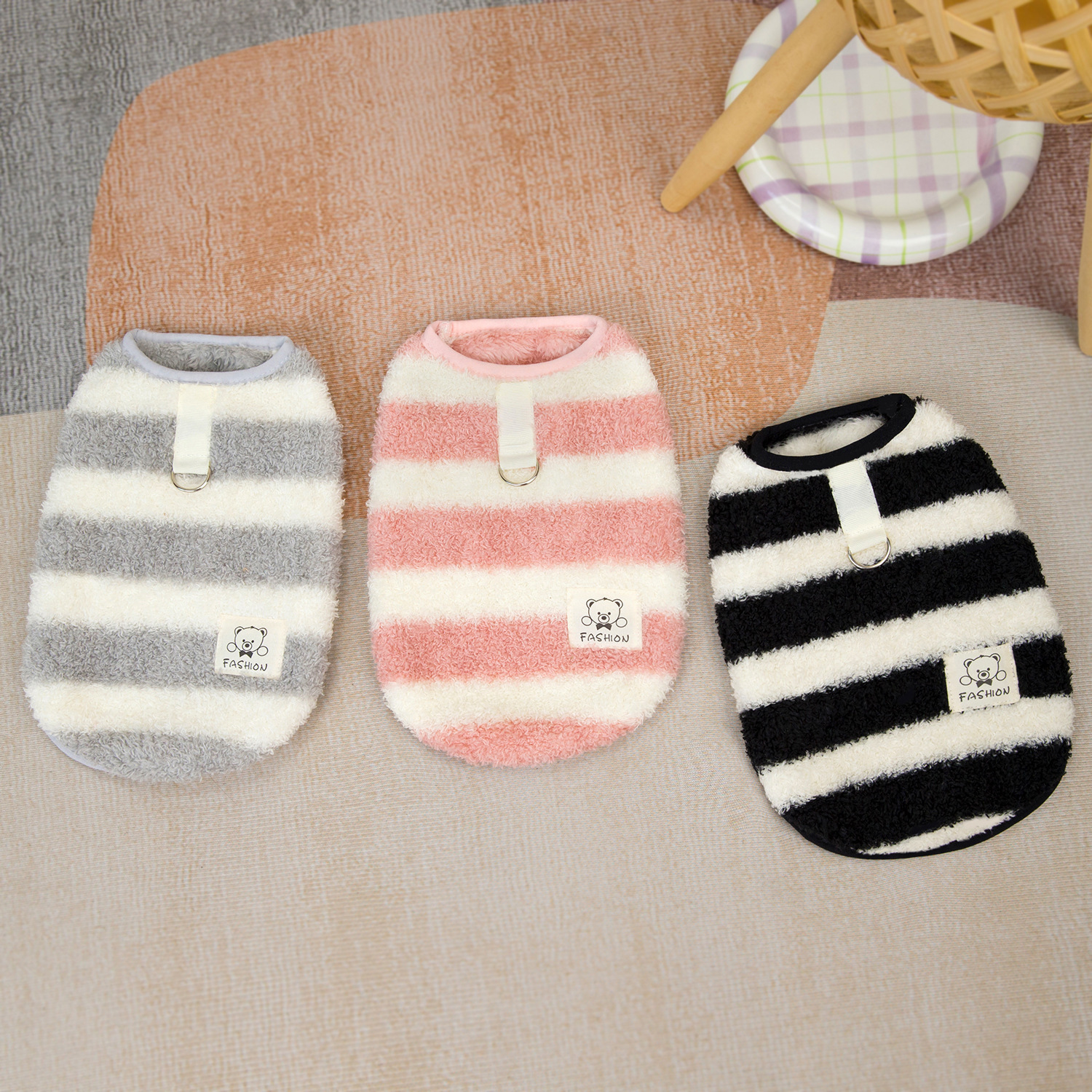 개 옷 애완 동물 의류 작은 개 고양이는 가을과 겨울에 따뜻하고 편안한 24 대형 스트라이프 벨벳 조끼를 입을 수 있습니다스토어 가기