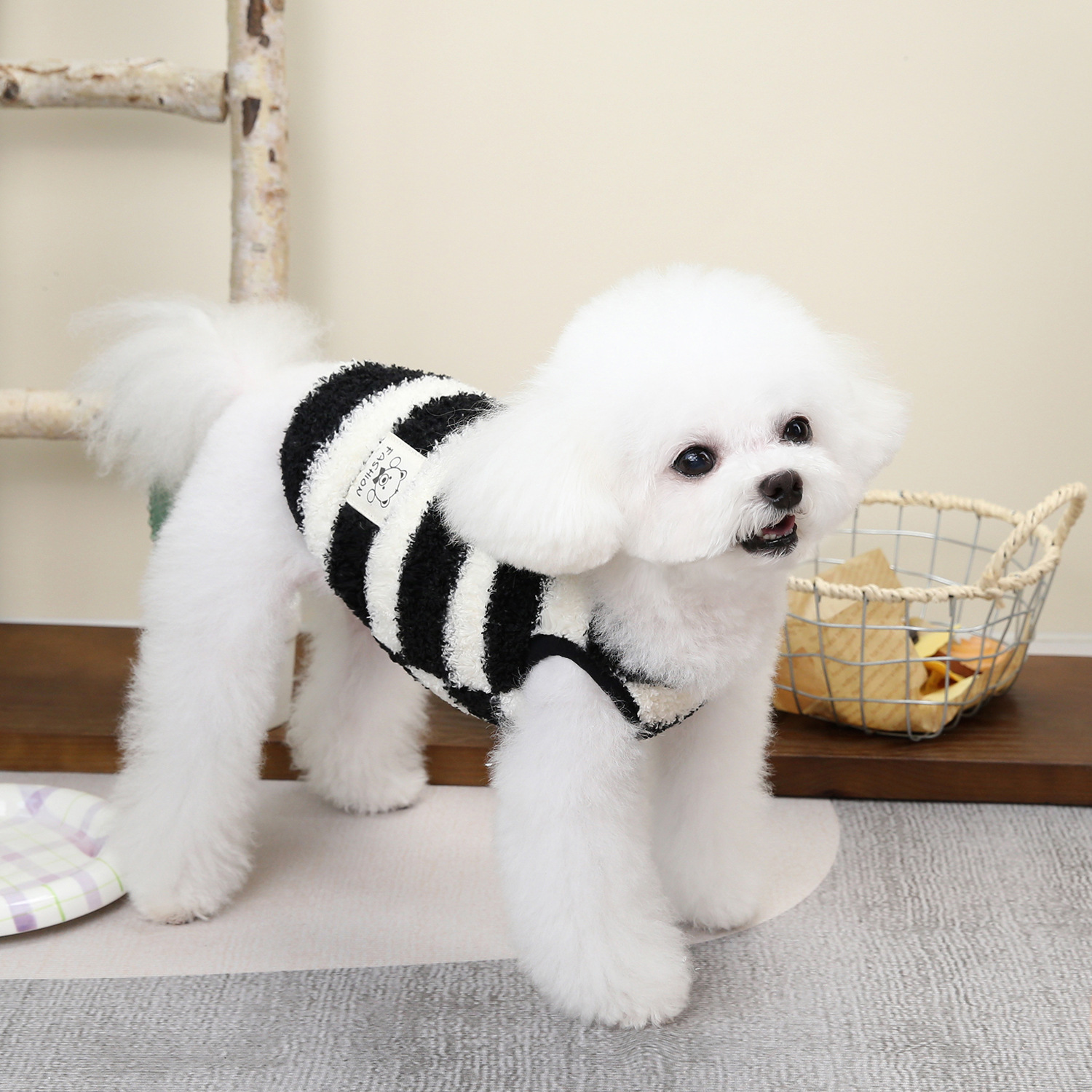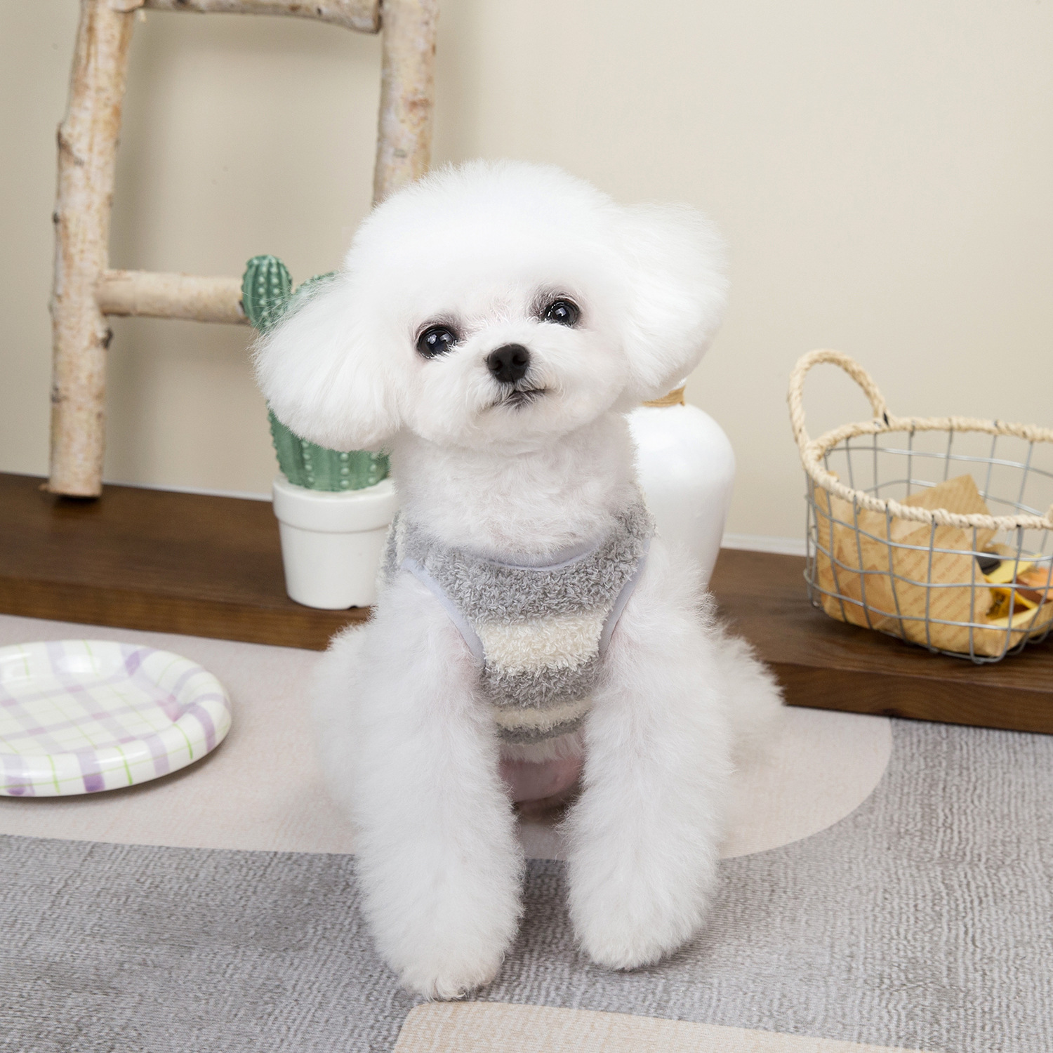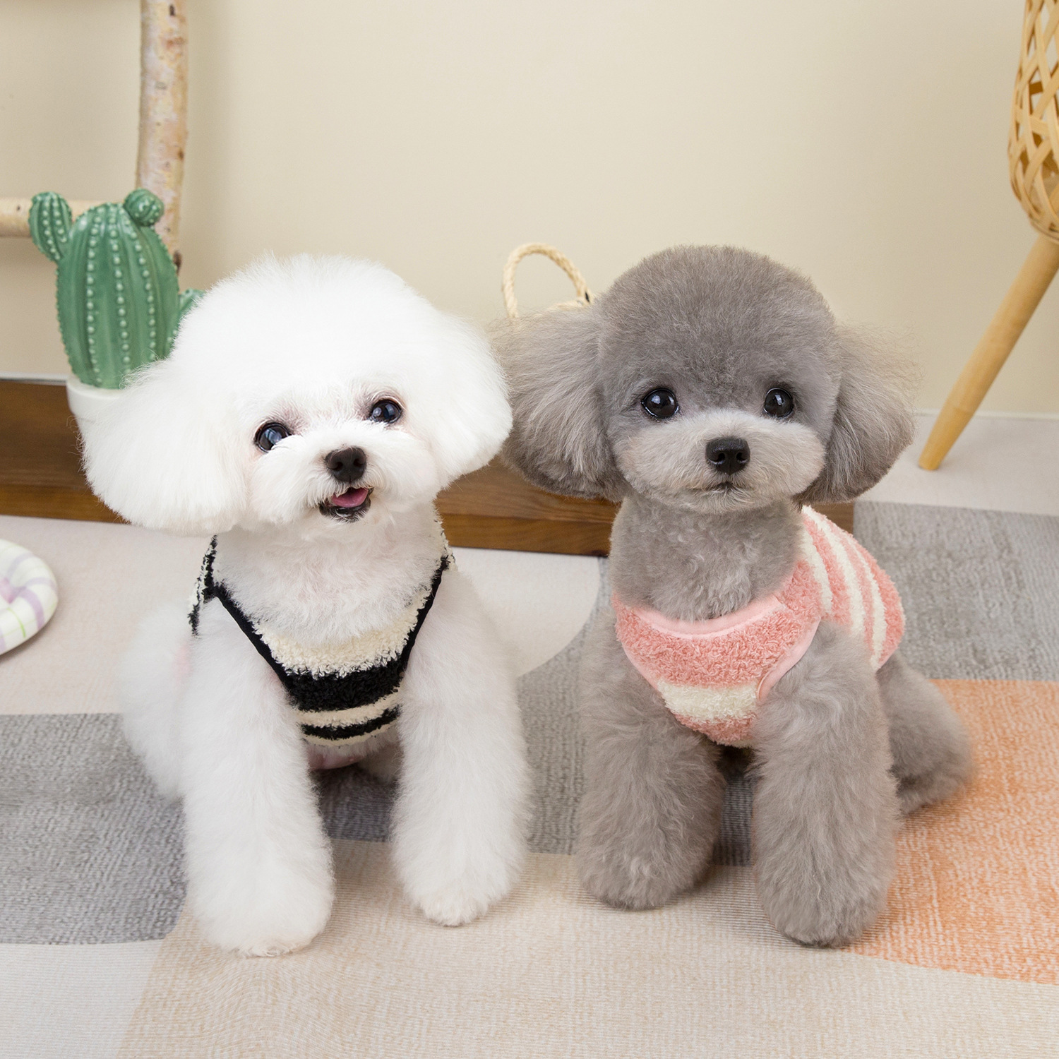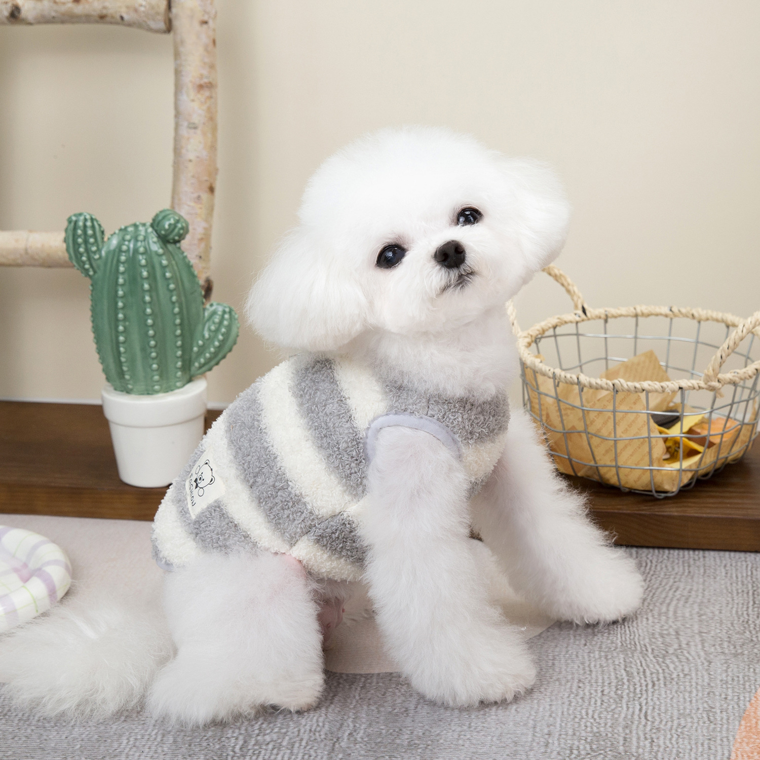 개 옷 애완 동물 의류 작은 개 고양이는 가을과 겨울에 따뜻하고 편안한 24 대형 스트라이프 벨벳 조끼를 입을 수 있습니다스토어 가기
