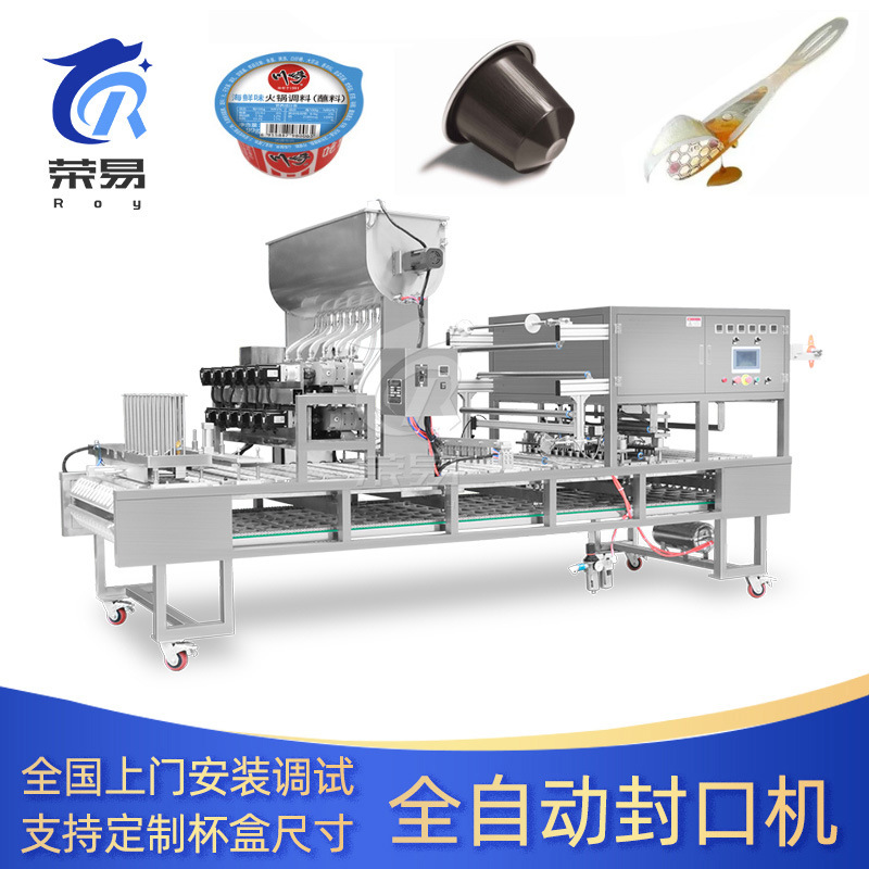 전자동 커피 캡슐 충전 및 밀봉 기계 대형 꿀 스푼 마늘 소스 컵 밀봉 기계 포장 라인