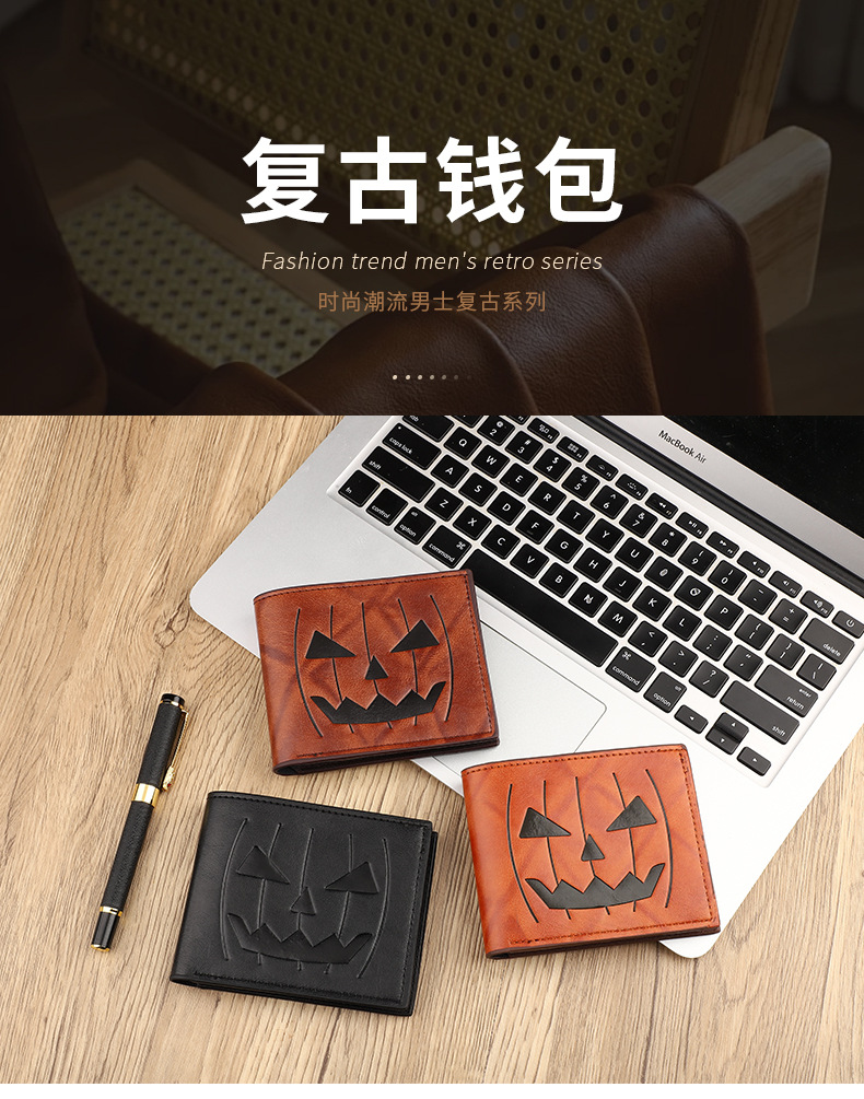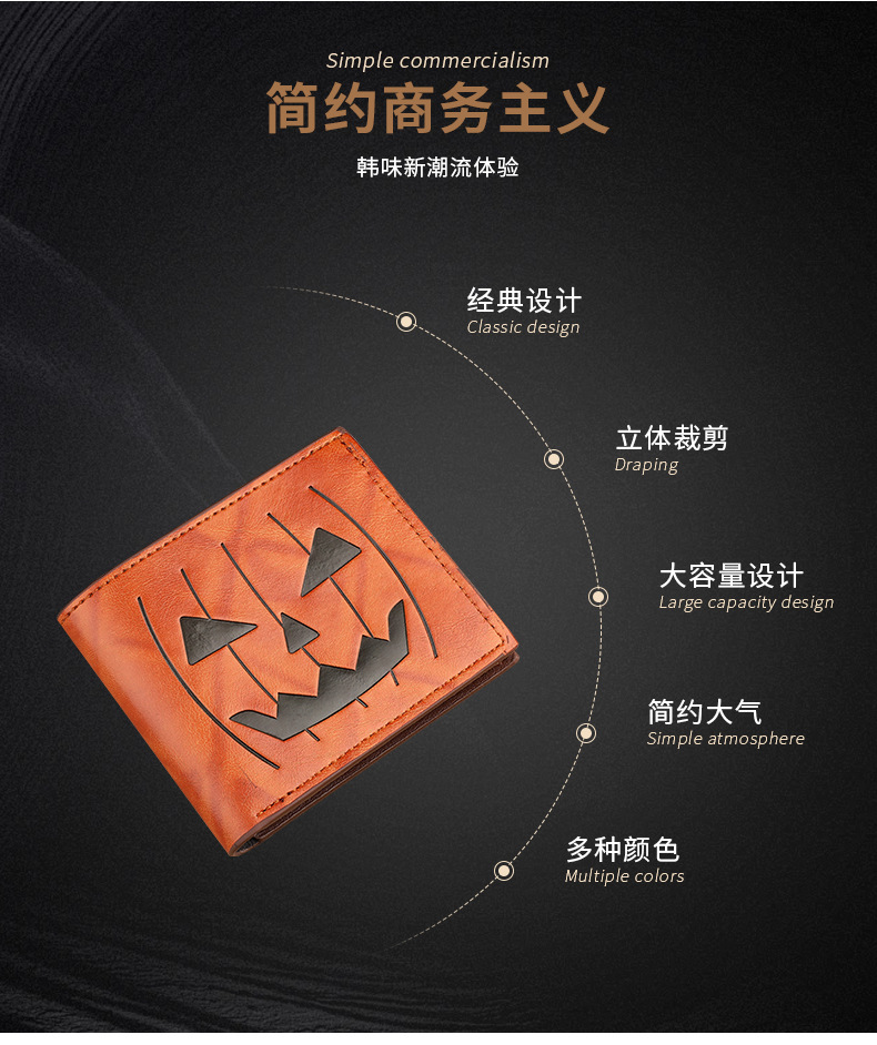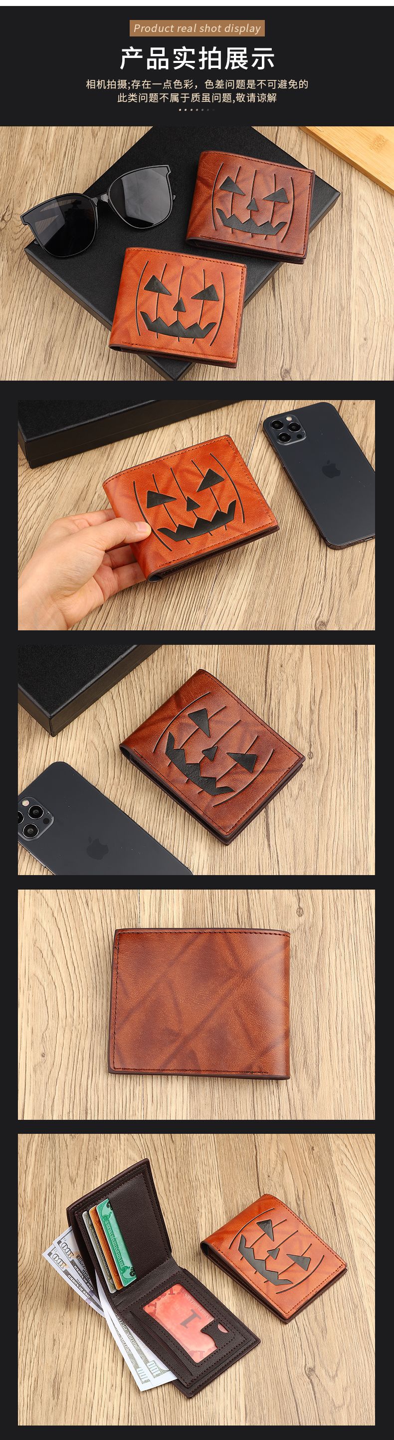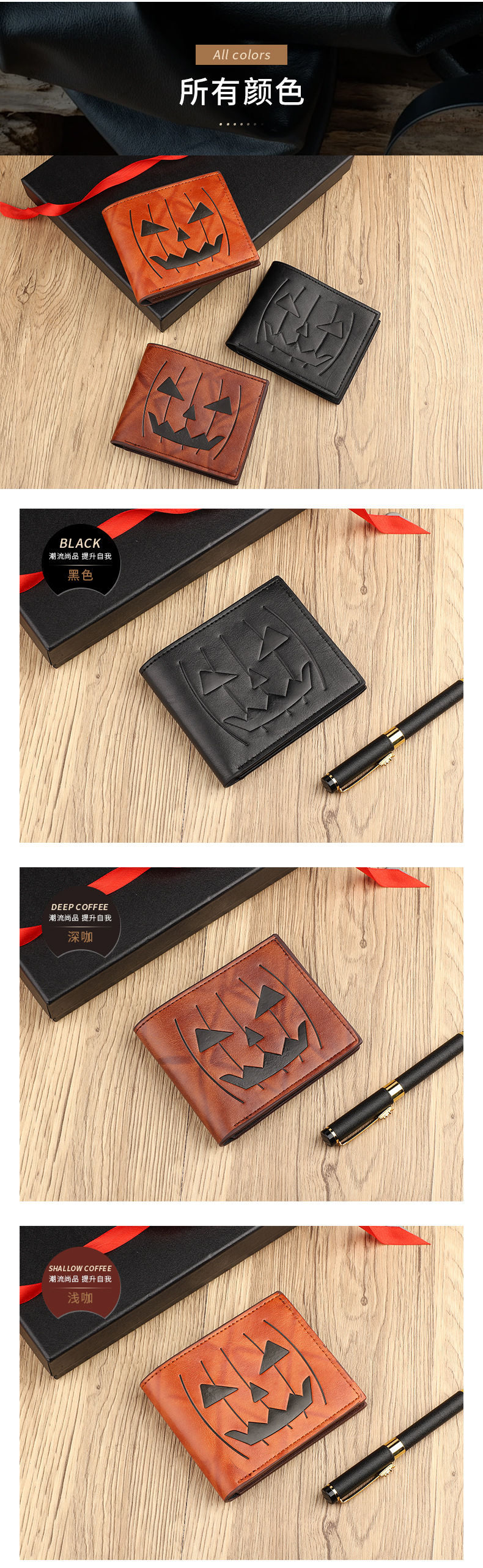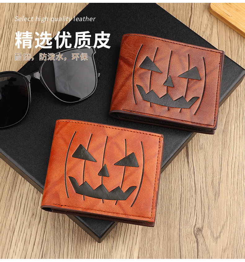 하이 엔드 유럽과 미국의 레트로 할로윈 지갑 남성 개성 유행 패션 호박 머리 양각 지갑 남성 카드 가방스토어 가기