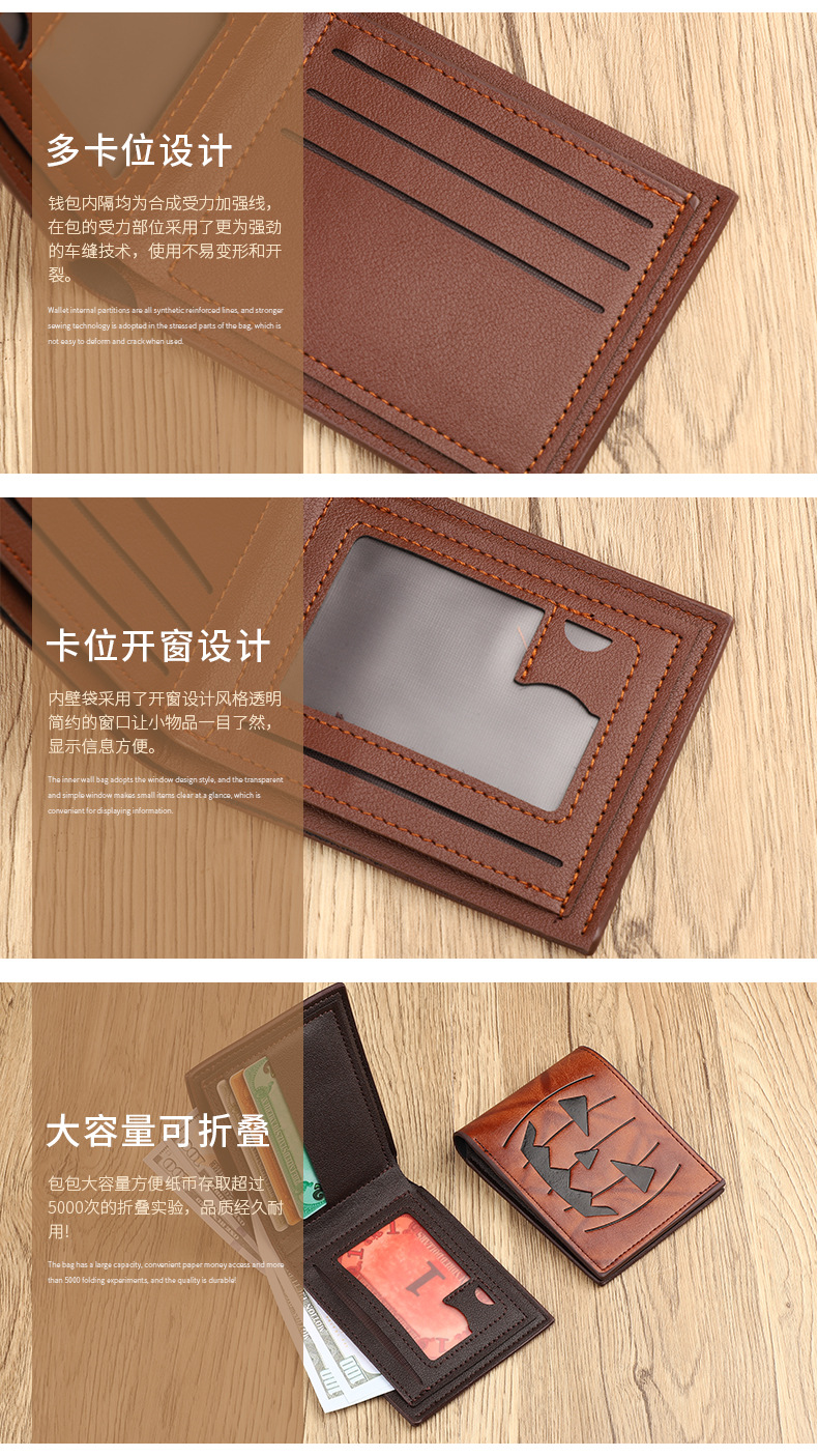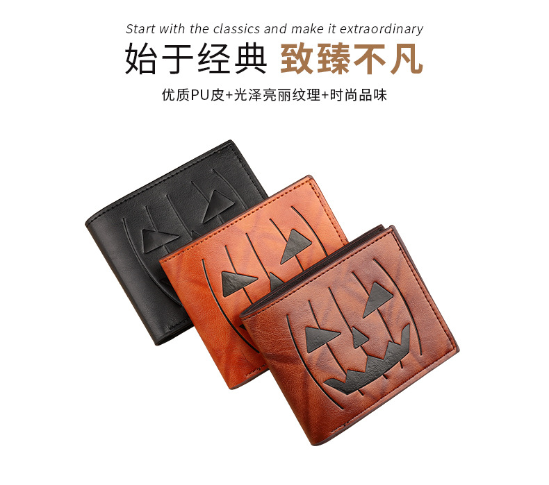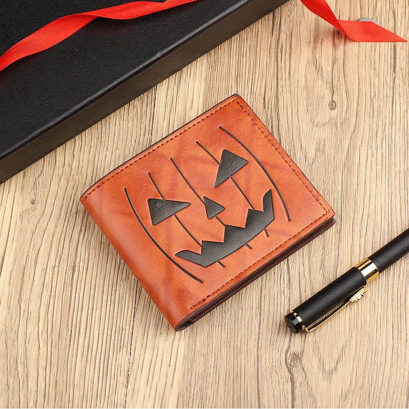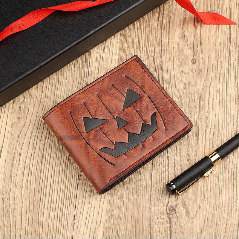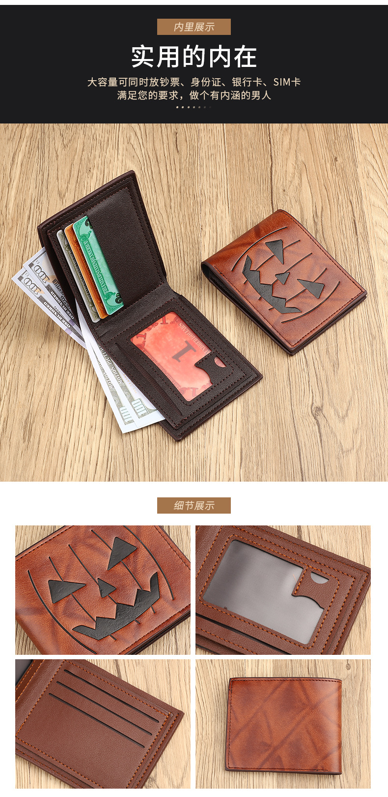 하이 엔드 유럽과 미국의 레트로 할로윈 지갑 남성 개성 유행 패션 호박 머리 양각 지갑 남성 카드 가방스토어 가기