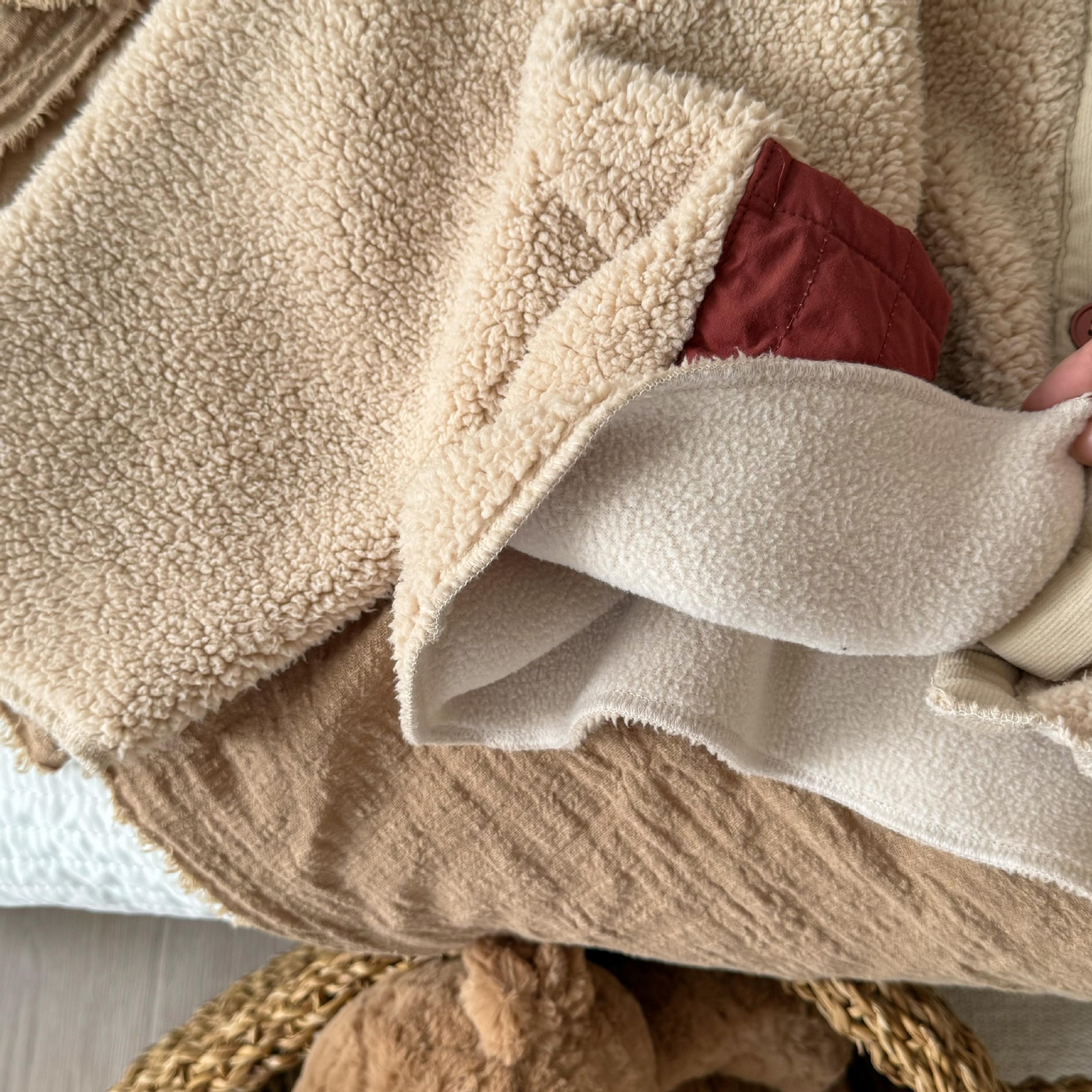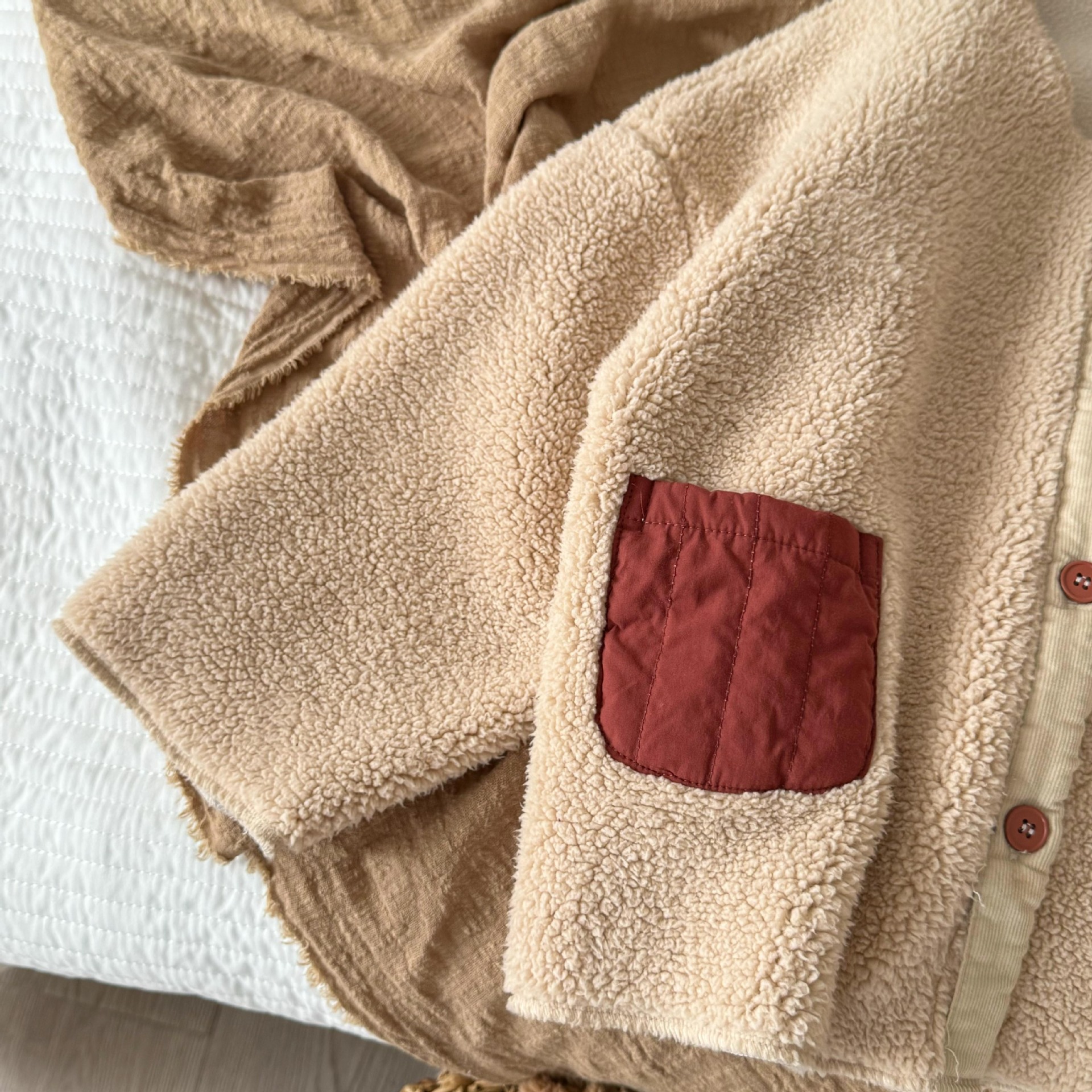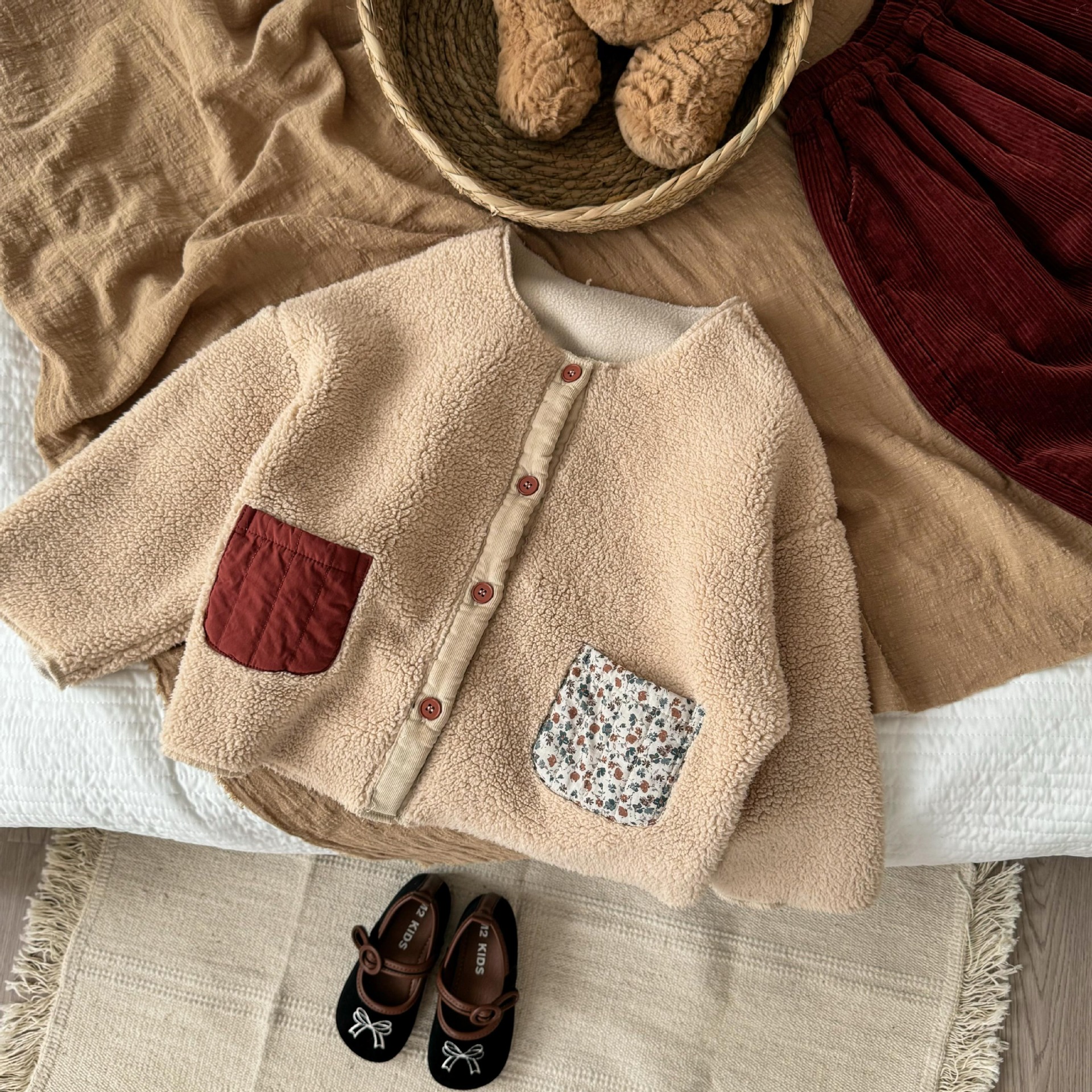Yimai 가을 및 겨울 새로운 아동복 한국 스타일 소녀 양고기 벨벳 모피 재킷 어린이 컬러 블록 플로랄 포켓 벨벳 코튼 패딩 의류