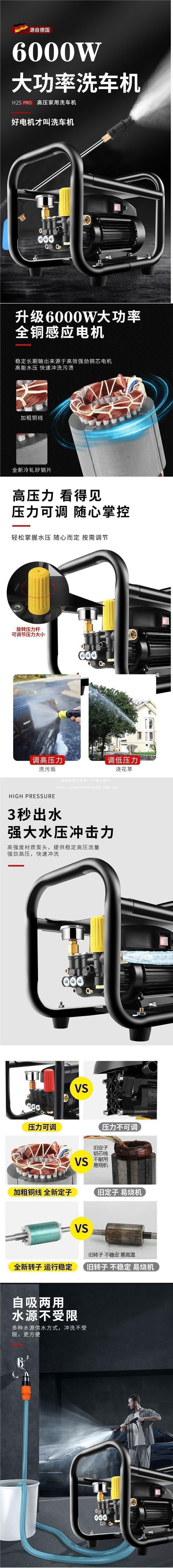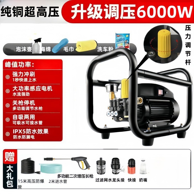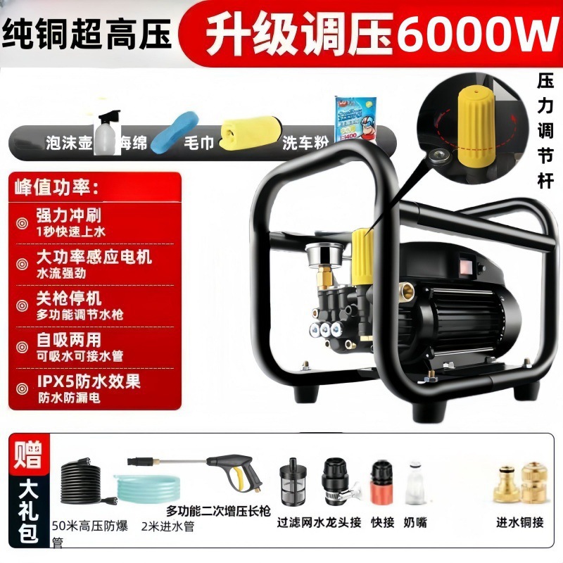 6000W 자동차 세탁기 가정용 고압 고성능 농장 청소 기계 220V 소형 자동차 세척 펌프 자동차 세척스토어 가기