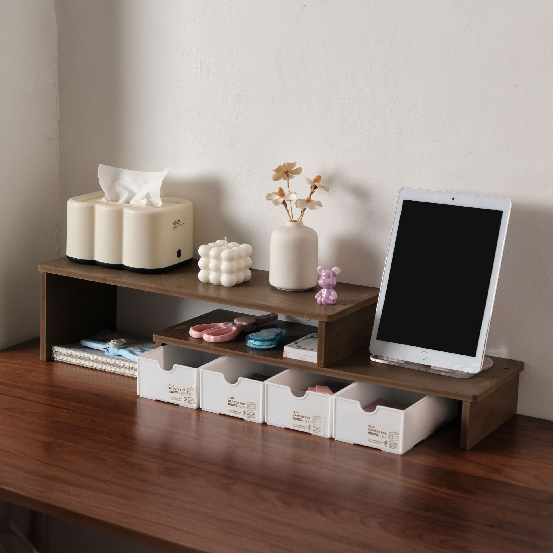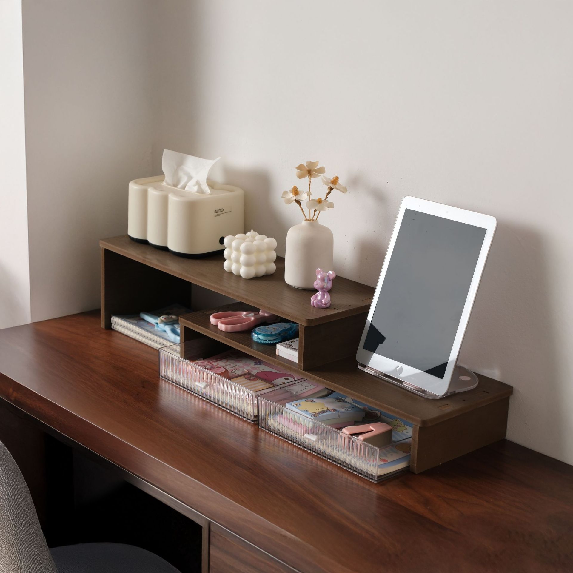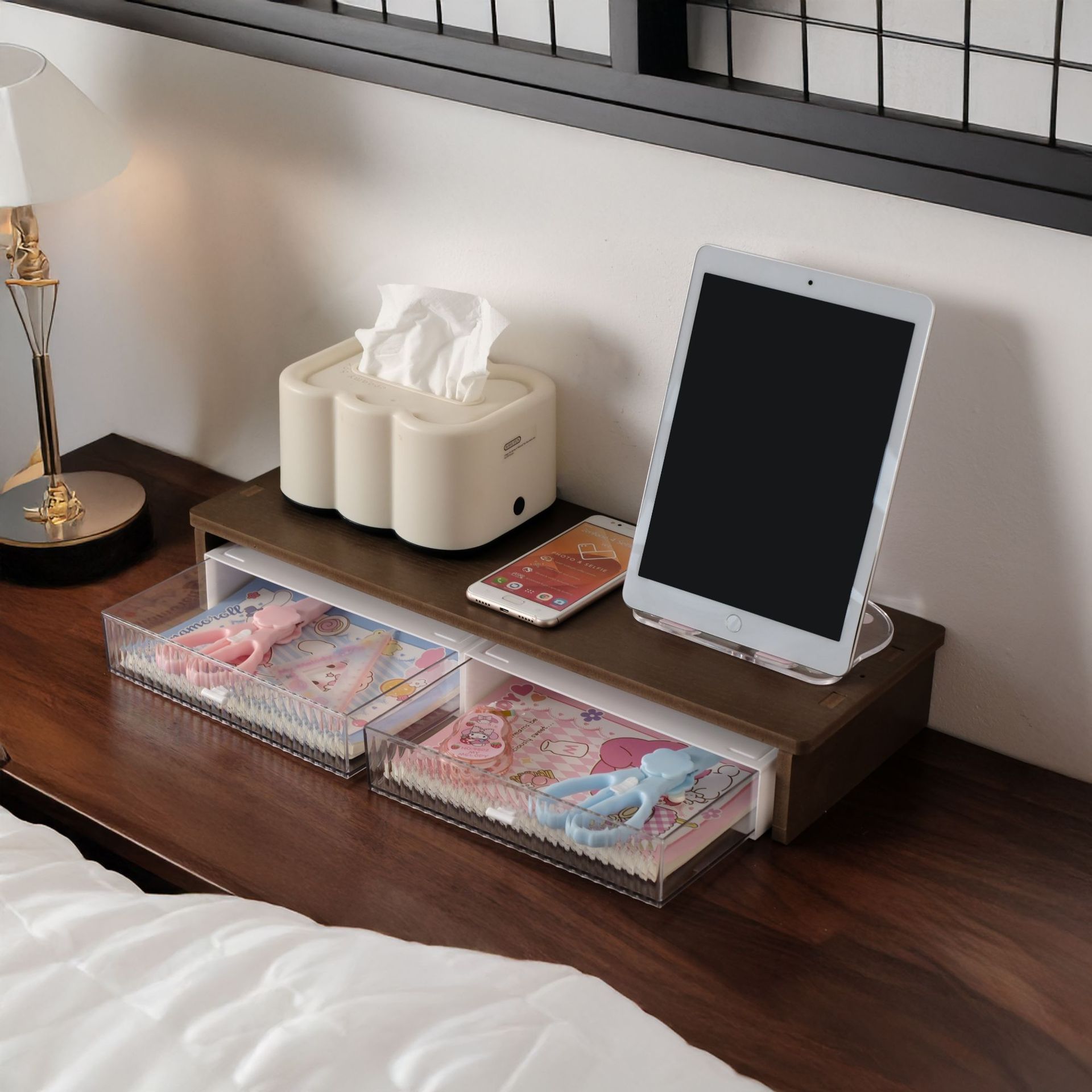 호두 더블 팩 컴퓨터 높이 상승 스토리지 랙 현대 간단한 스타일 더블 레이어 스토리지 랙 화이트 투명 휴대용 스토리지 박스