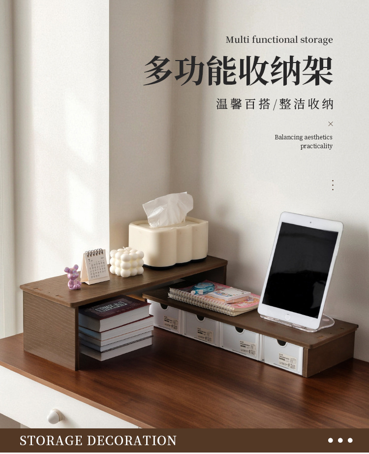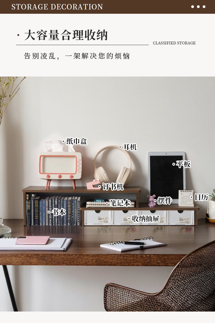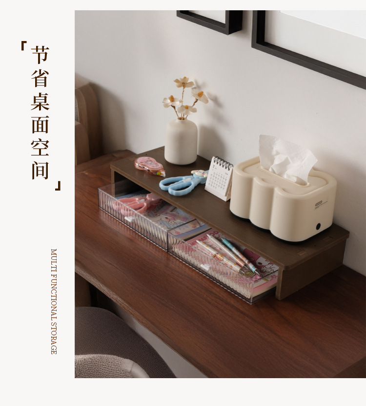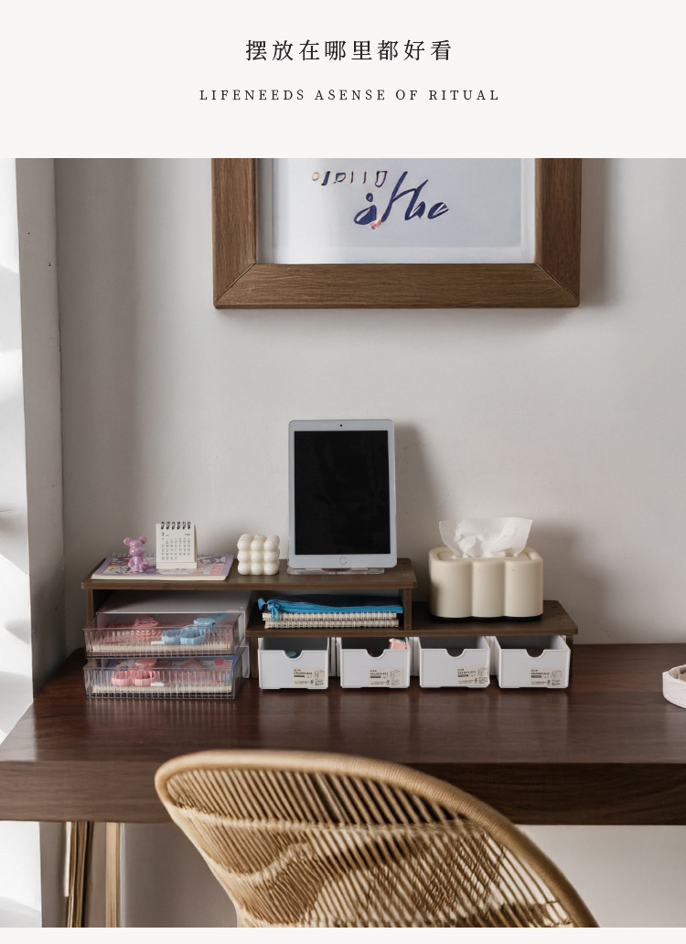호두 더블 팩 컴퓨터 높이 상승 스토리지 랙 현대 간단한 스타일 더블 레이어 스토리지 랙 화이트 투명 휴대용 스토리지 박스