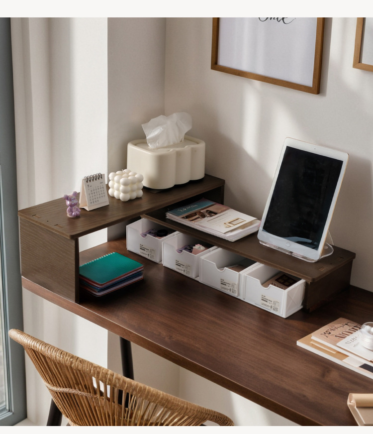 • 월넛 더블조합 + 투명수납박스 2개 + 화이트박스 4개(베이스 없음)