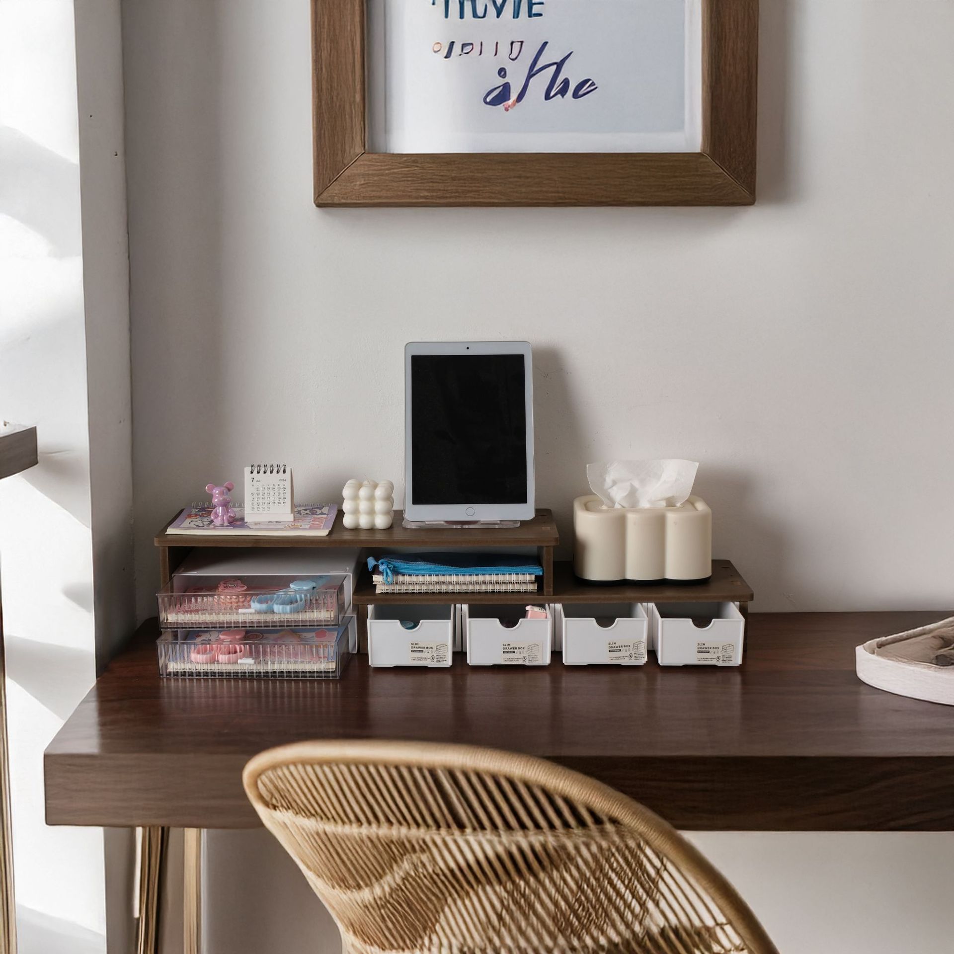 • 호두나무 단층 컴퓨터 높이 조절 선반