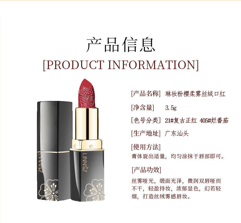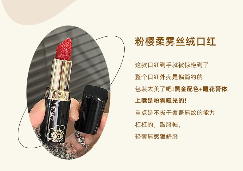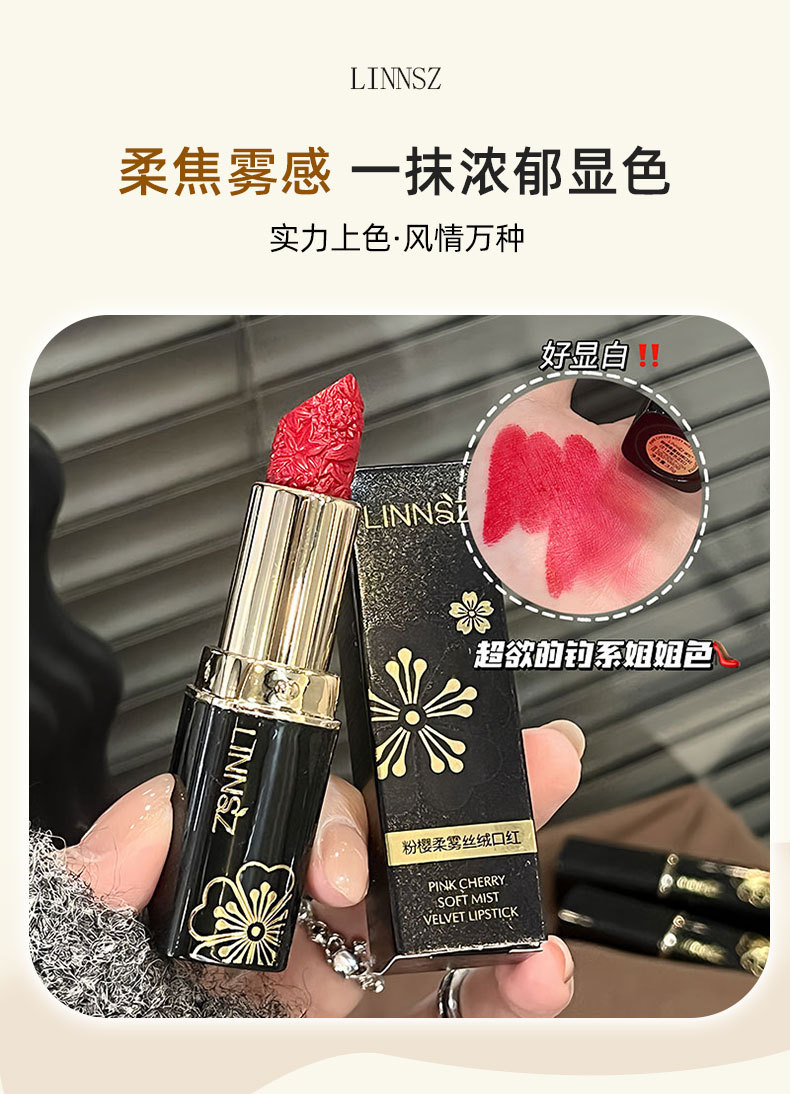 린 메이크업 파우더 체리 소프트 미스트 벨벳 립스틱 여성용 보습 컬러 프리 립스틱 블랙 튜브 조각 립스틱 저렴한 폭발스토어 가기