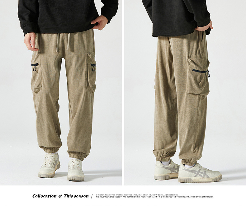 일본식 레트로 코듀로이 바지 남자 가을 2024 새로운 패션 브랜드 느슨한 도구 다리 스포츠 캐주얼 바지