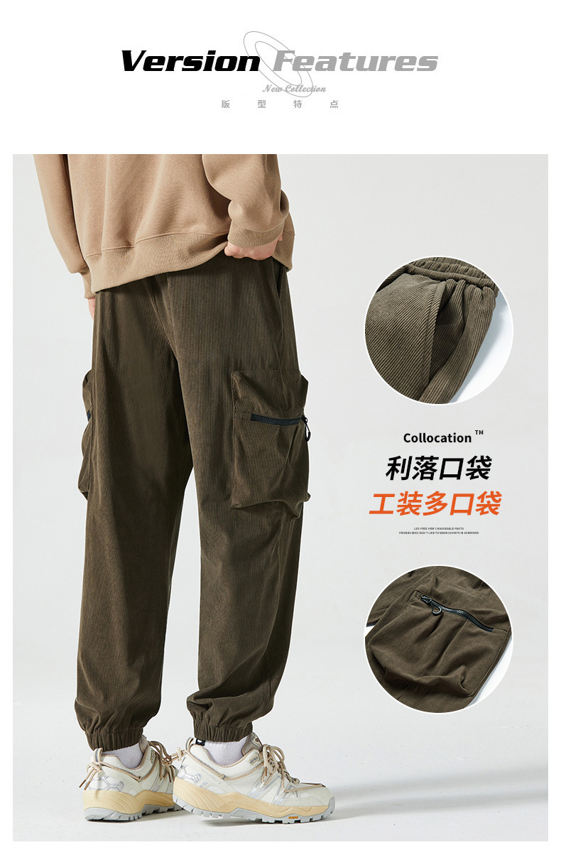 일본식 레트로 코듀로이 바지 남자 가을 2024 새로운 패션 브랜드 느슨한 도구 다리 스포츠 캐주얼 바지스토어 가기