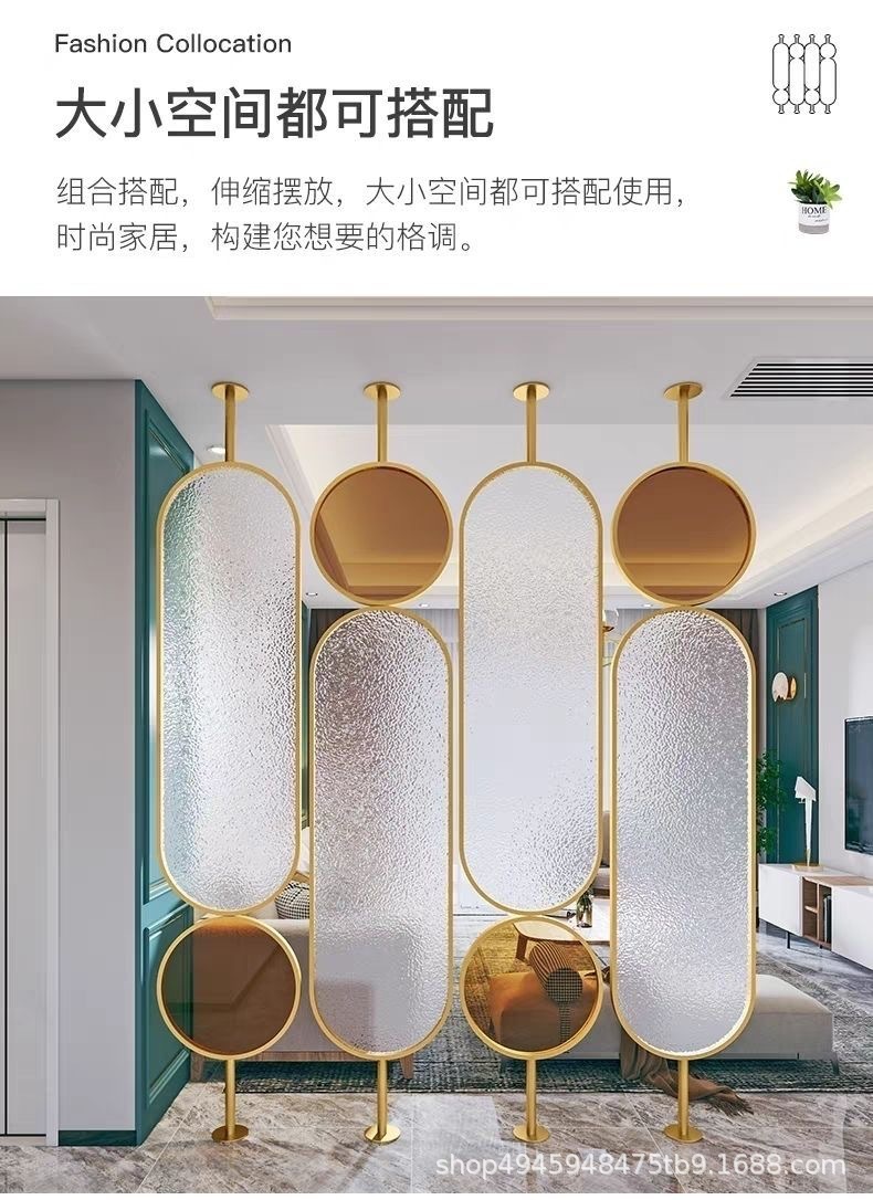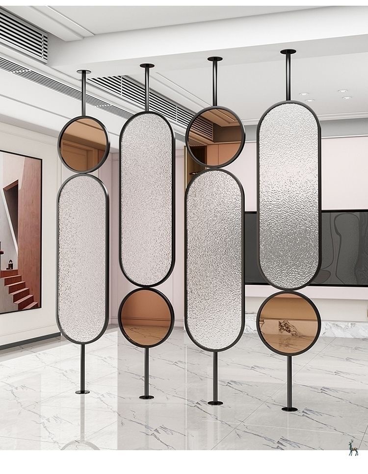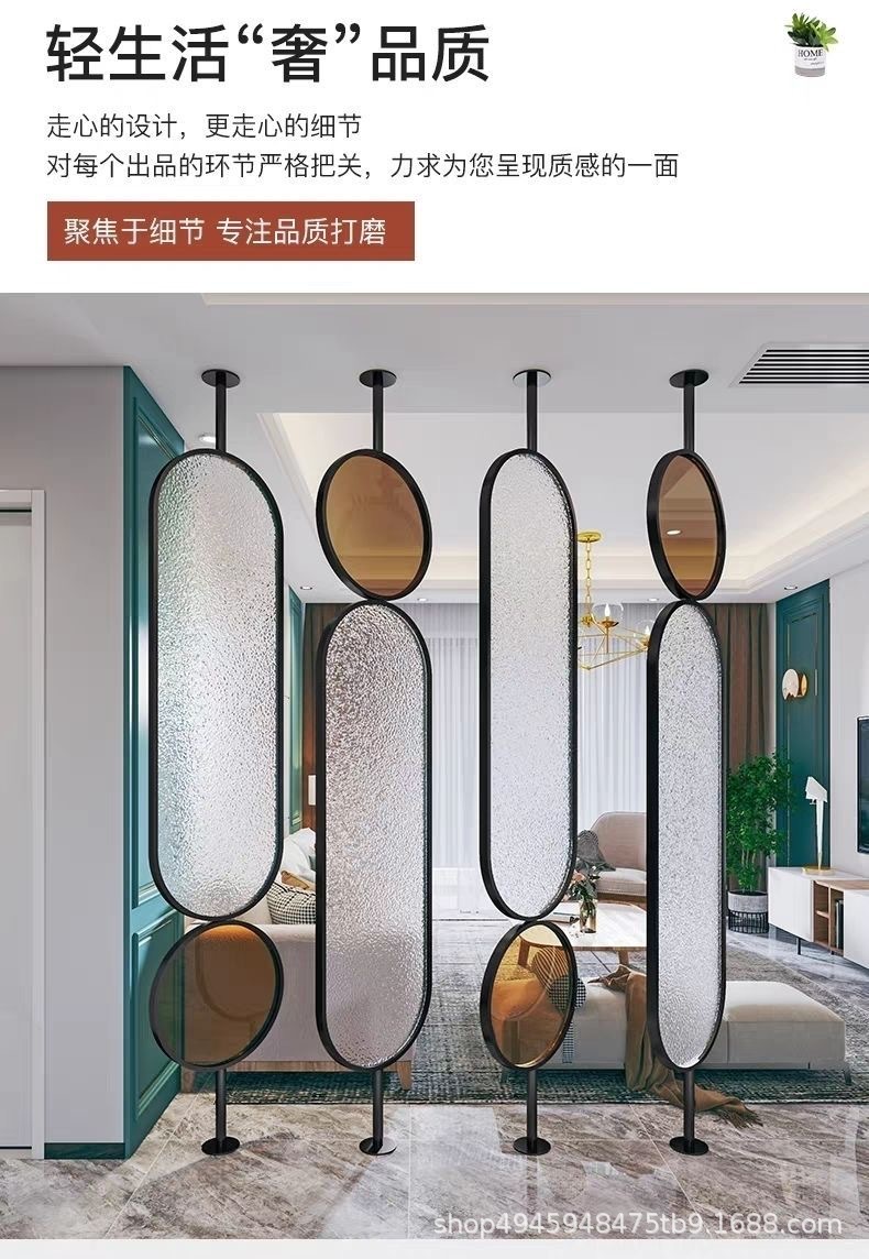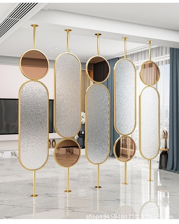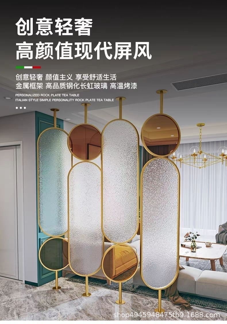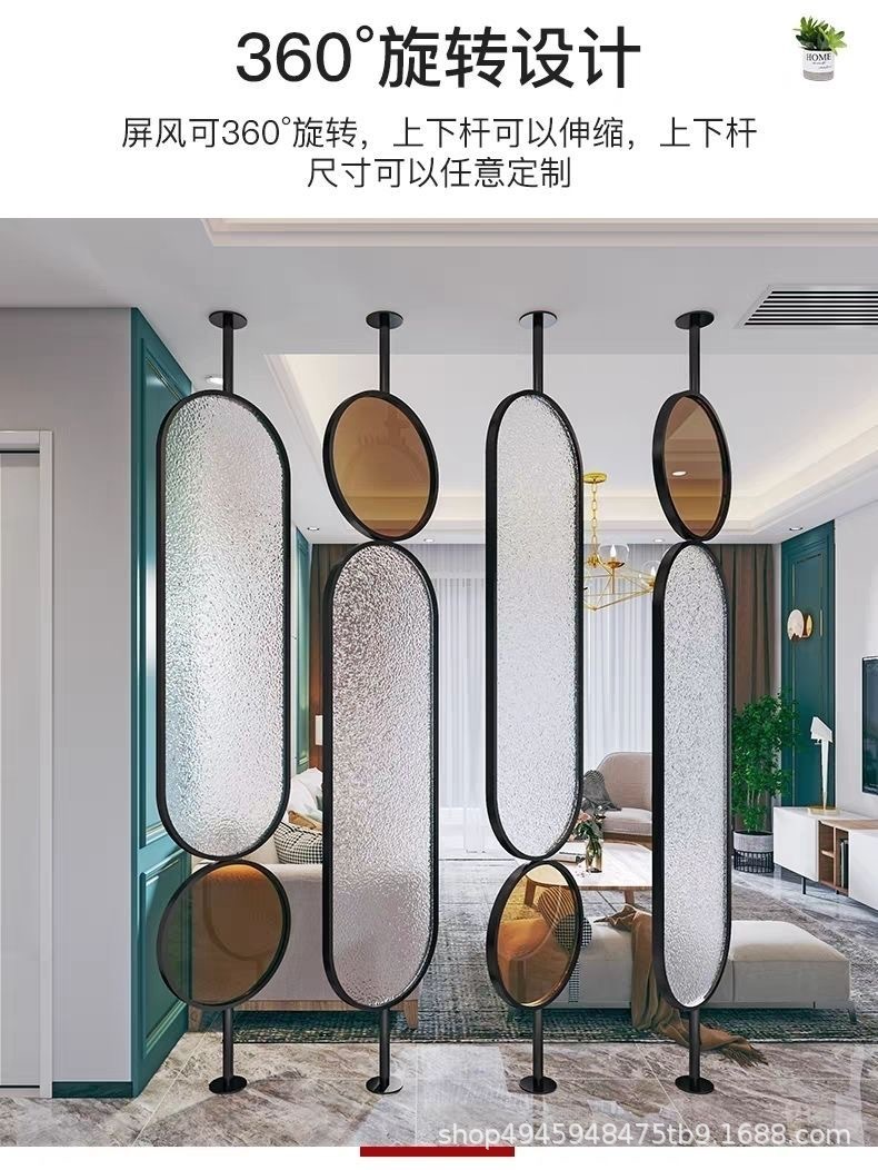 라이트 럭셔리 스크린 파티션 거실 음영 입구 문 크림 유리 회전 현대 미술 침실 입구