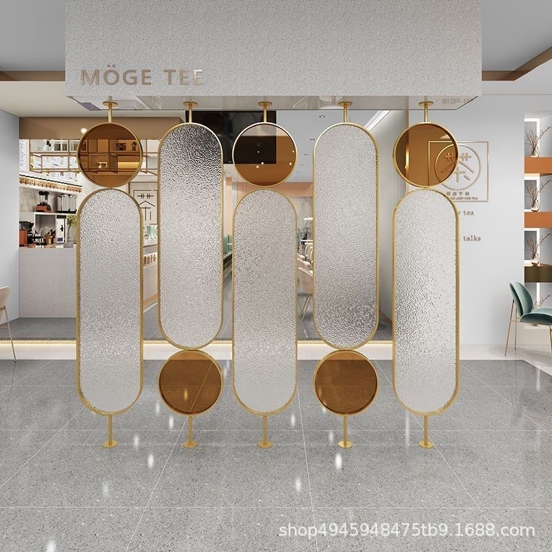 라이트 럭셔리 스크린 파티션 거실 음영 입구 문 크림 유리 회전 현대 미술 침실 입구스토어 가기