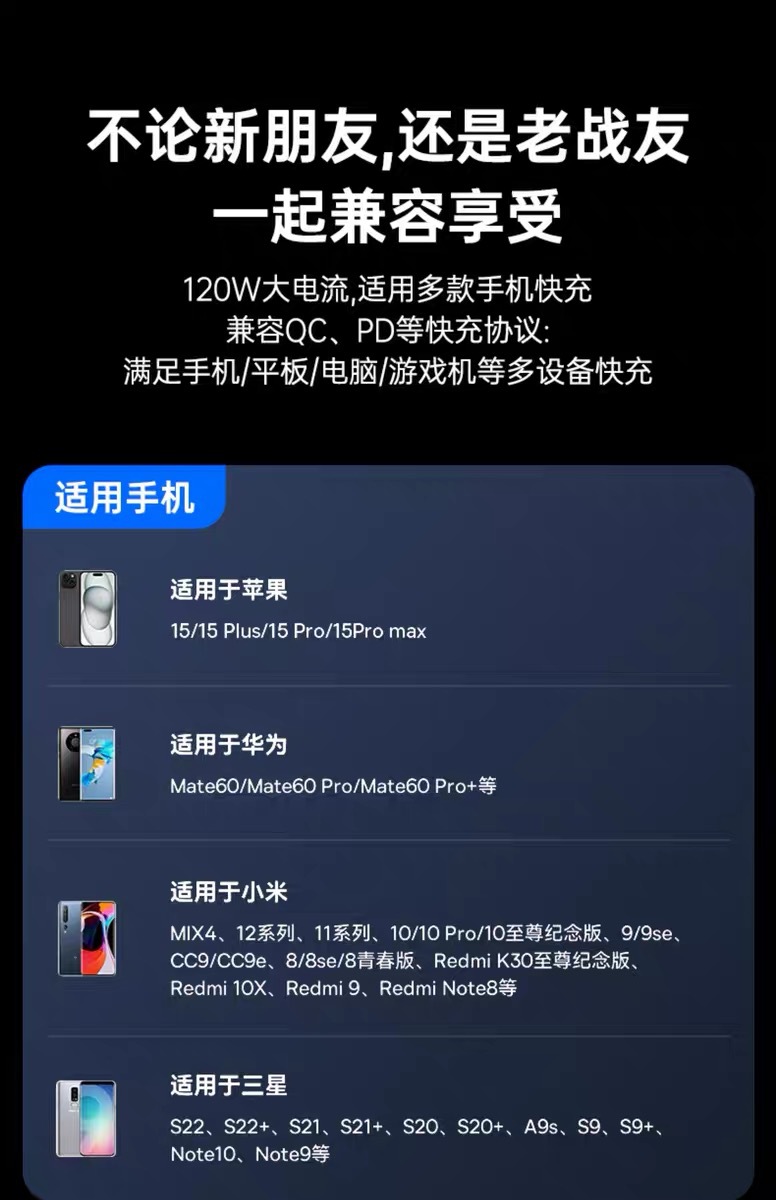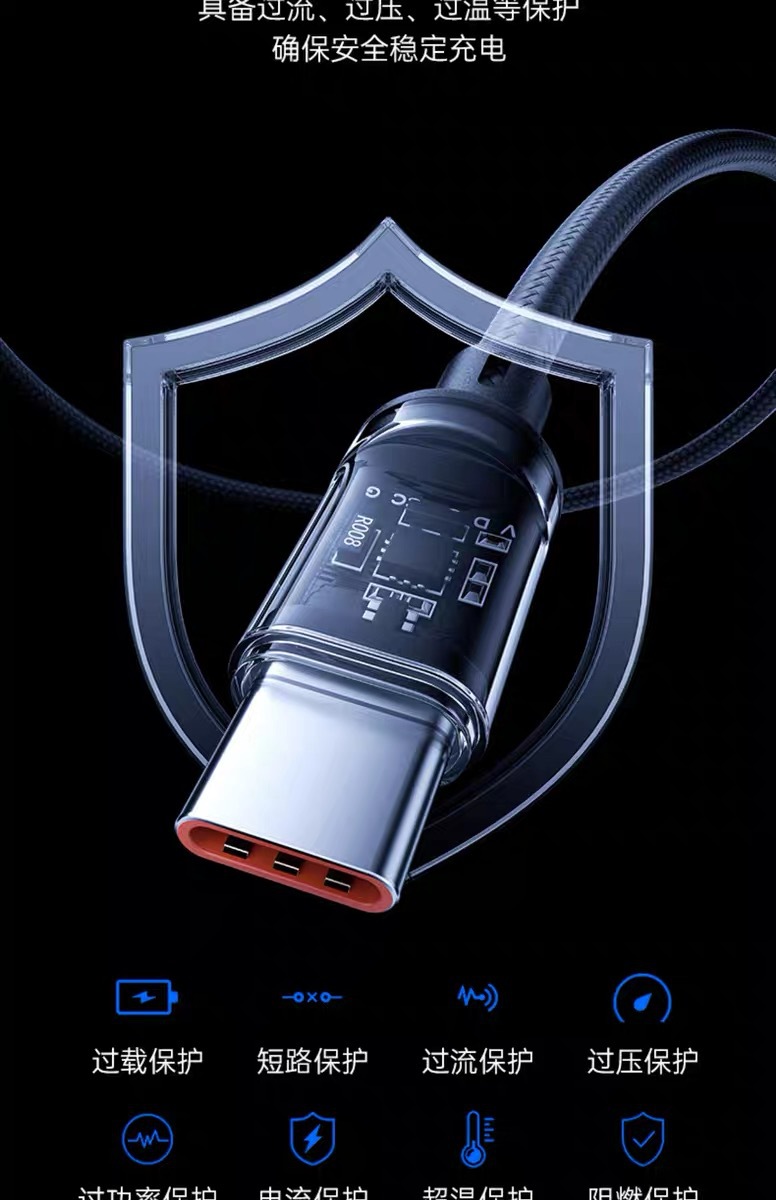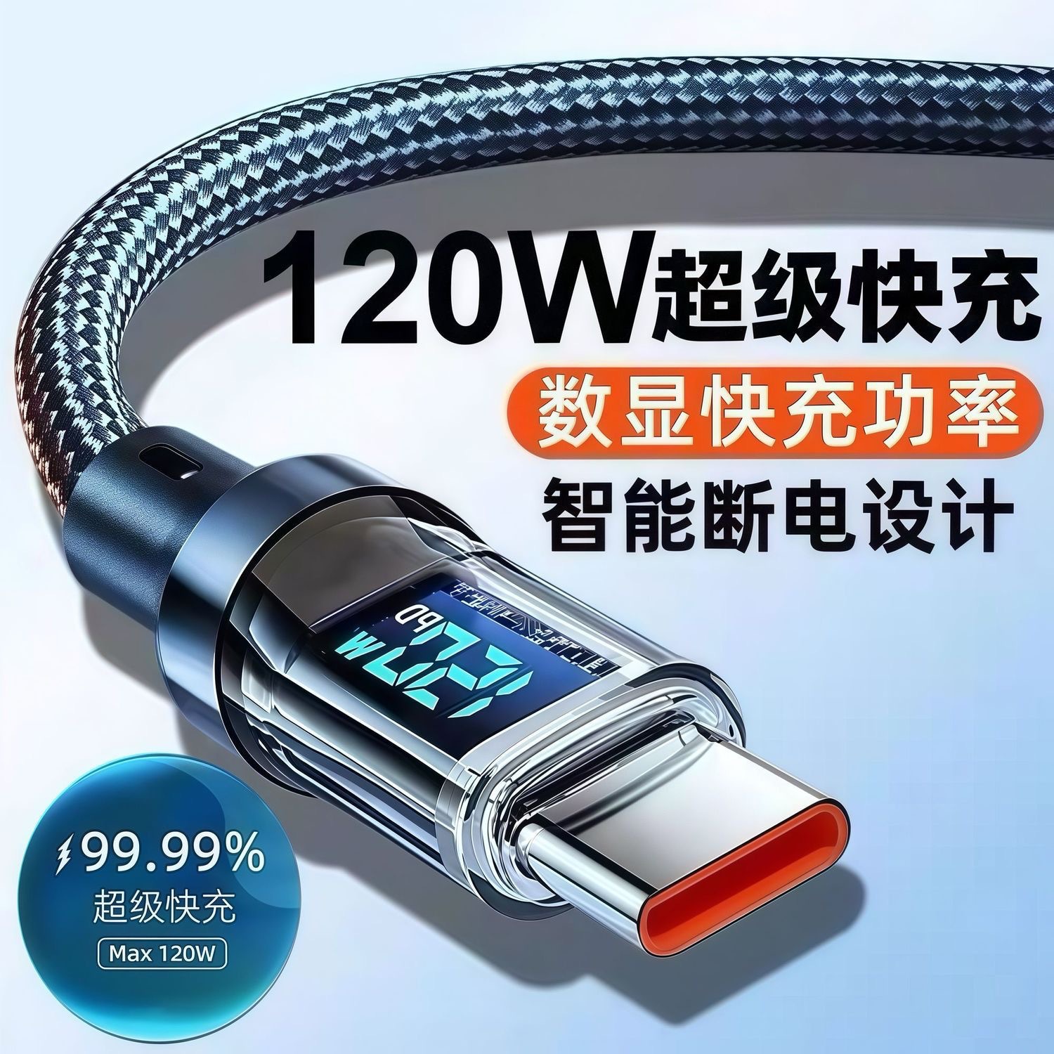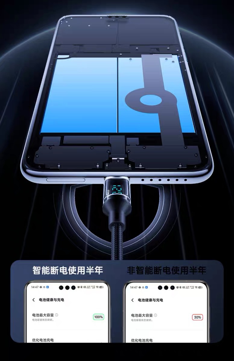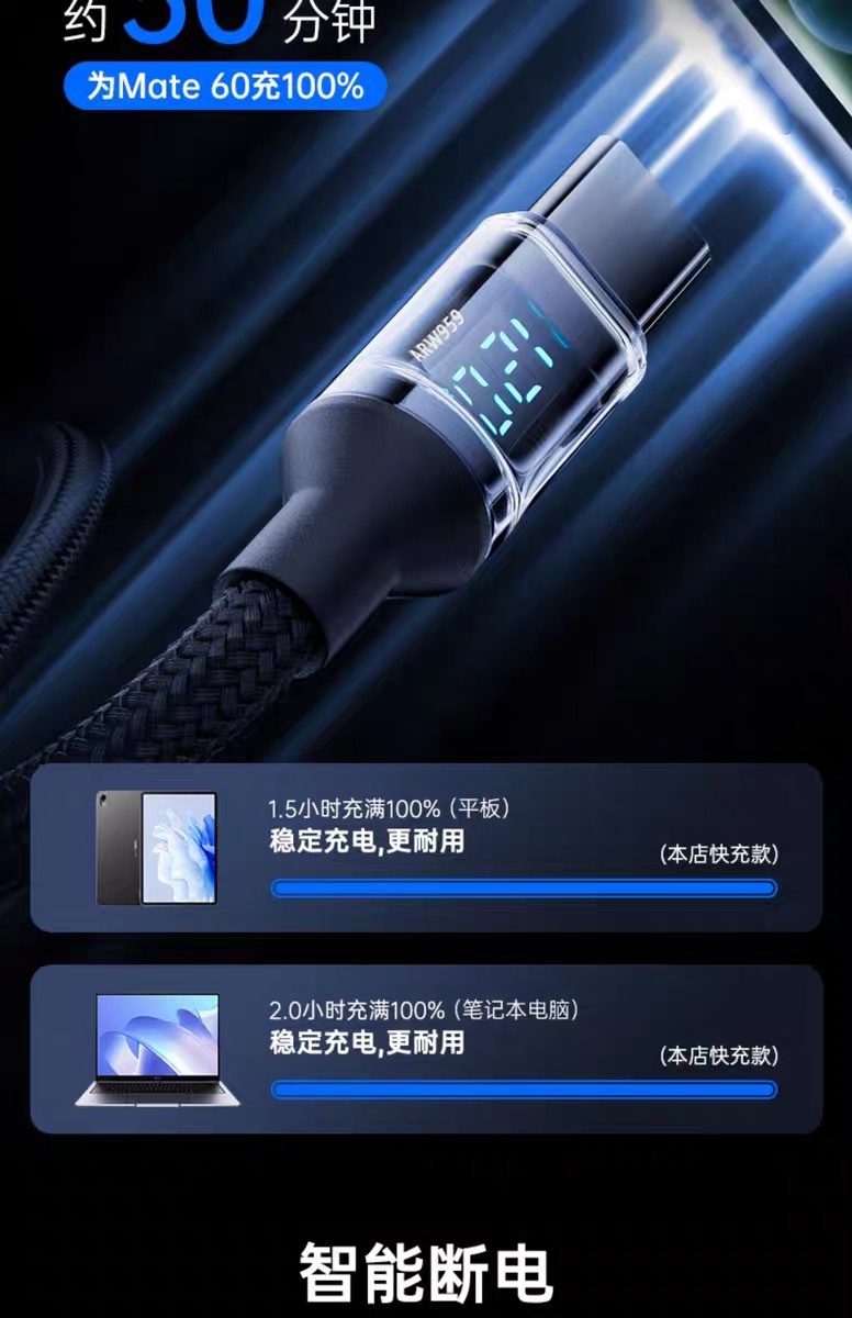 화웨이 샤오미 OPPO 영광 휴대 전화 충전 라인을 위한 Lengthen 스마트 디지털 디스플레이 유형-c 슈퍼 고속 충전 120W스토어 가기