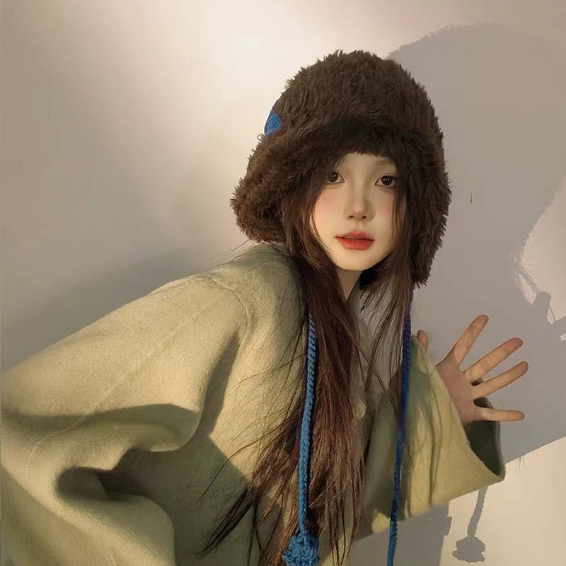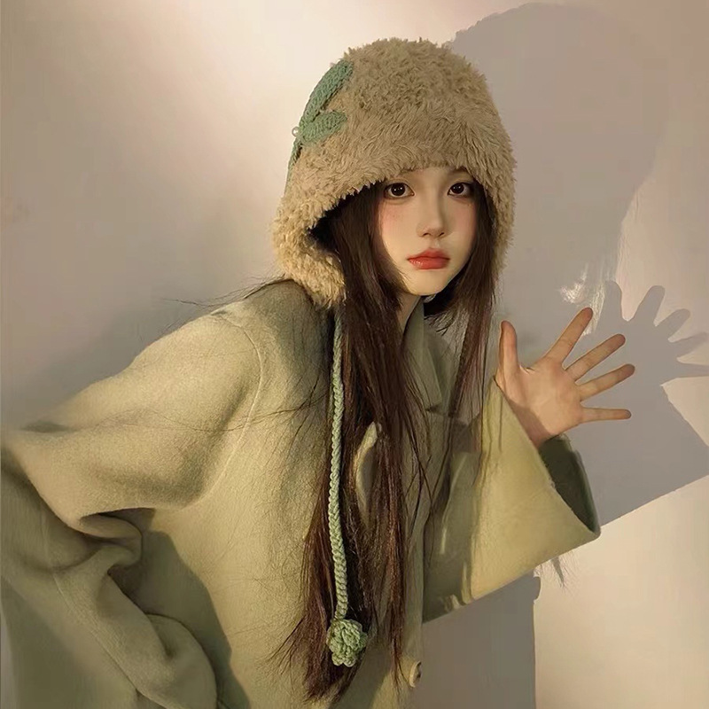 가을과 겨울 새로운 활 봉제 귀 보호 캡 올 매치 얼굴-작은 모자 여성의 따뜻한 방풍 풀오버 모자를 보여줍니다스토어 가기