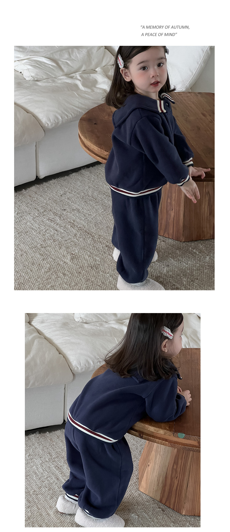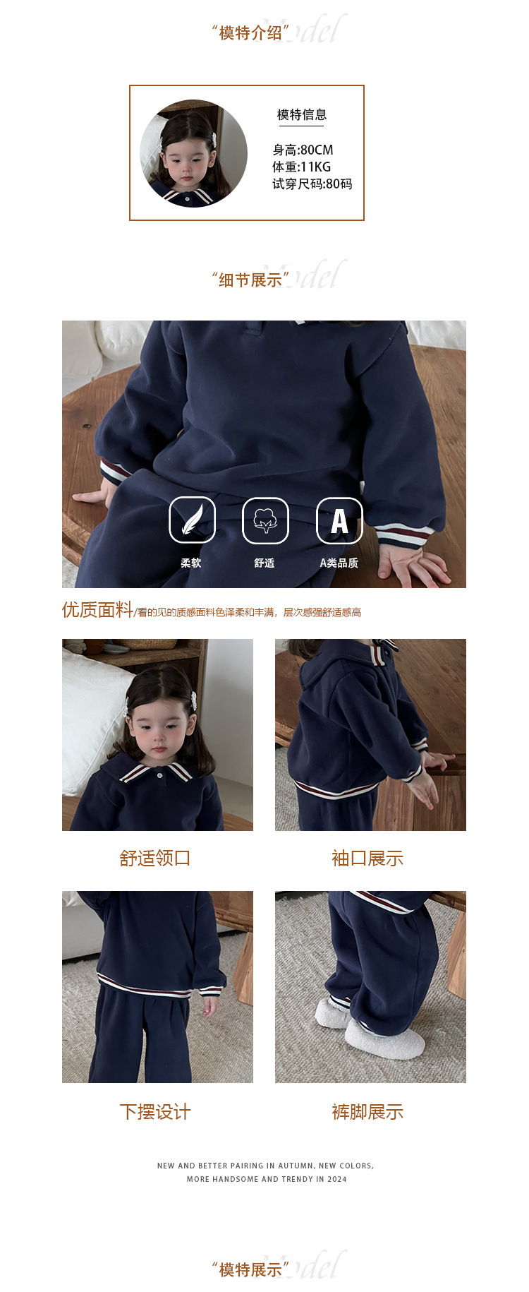 어린이 가을 겨울 두껍게 세트 한국 아동복 2024 새로운 아기 두꺼운 옷 소녀의 해군 칼라 양털 세트스토어 가기