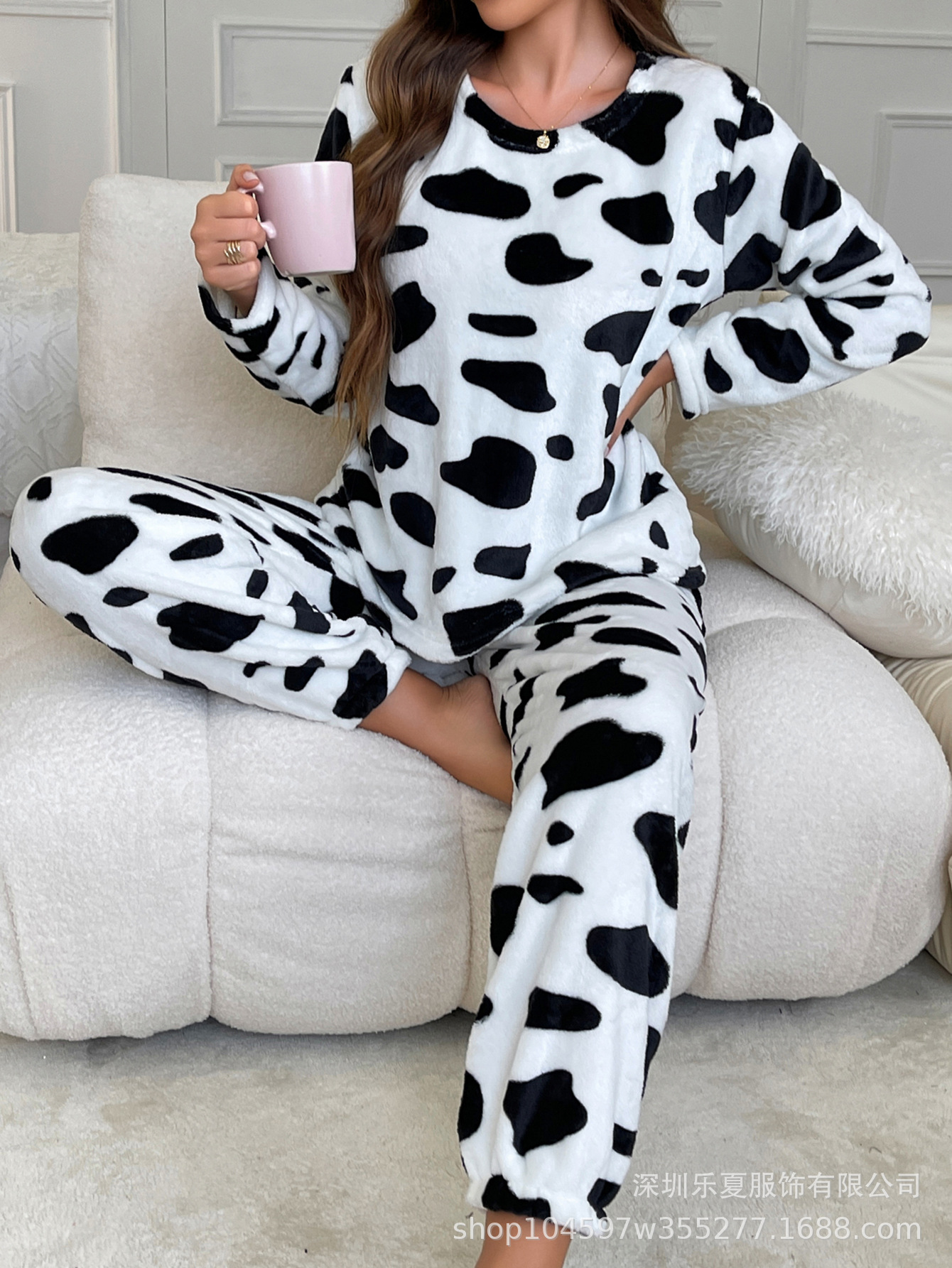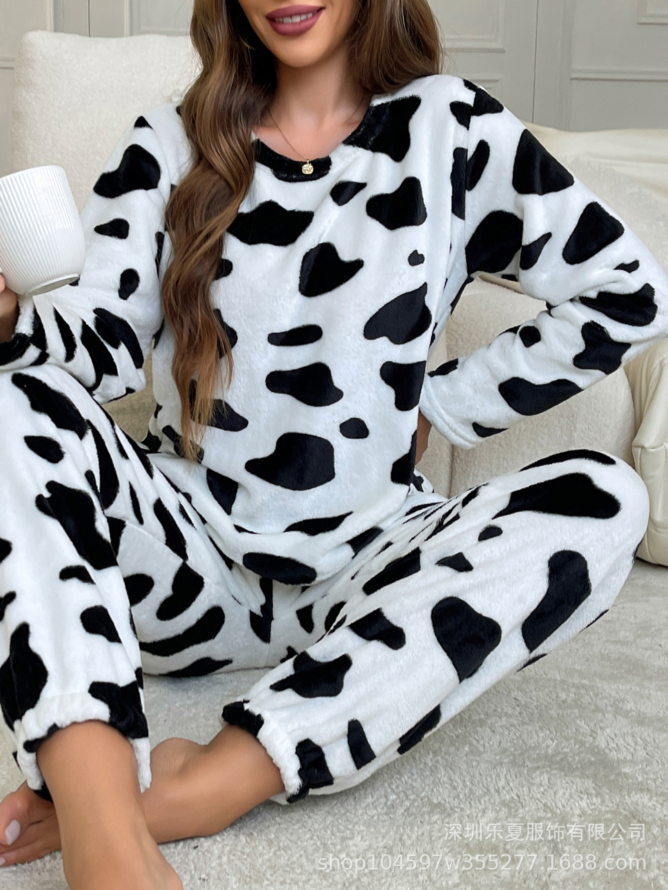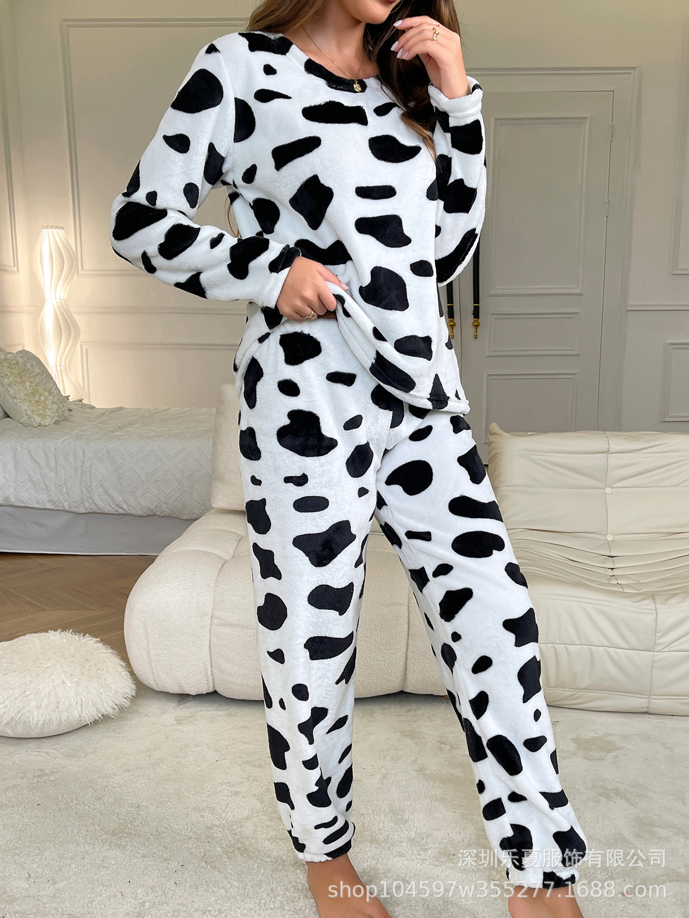 국경을 넘나 드는 유럽과 미국의 벨벳 파자마 여성의 겨울 암소 기모 두꺼운 따뜻한 발가락 플란넬 파자마 가을과 겨울 여성의 따뜻한스토어 가기