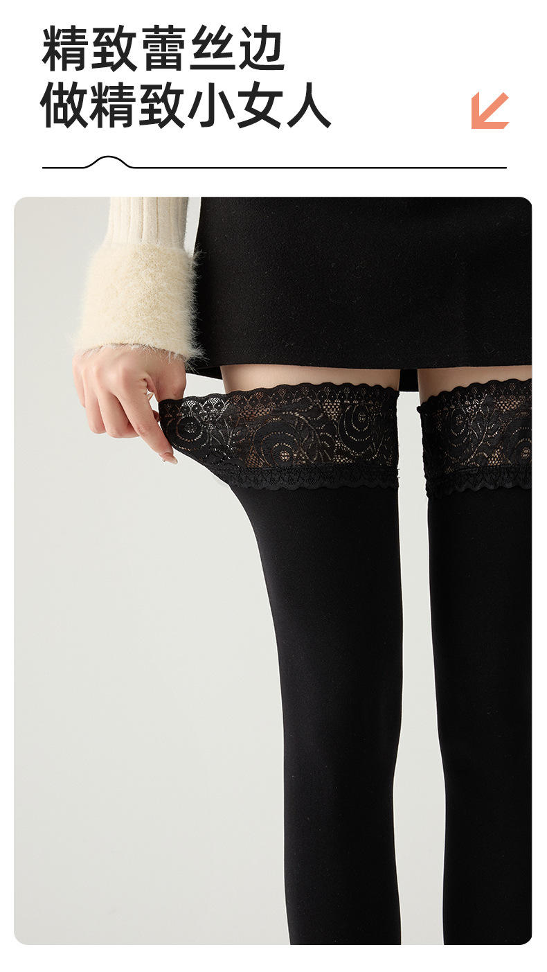 유연한 레이스 스타킹 살포 실크 스타킹 여성의 봄과 가을 벨벳 미끄럼 방지 반쪽 레이스 오버 더 무릎 양말