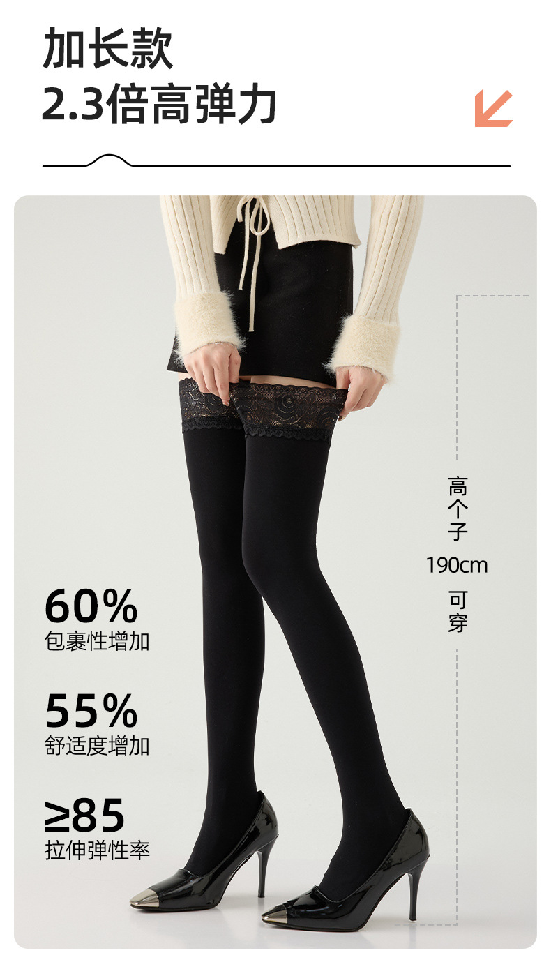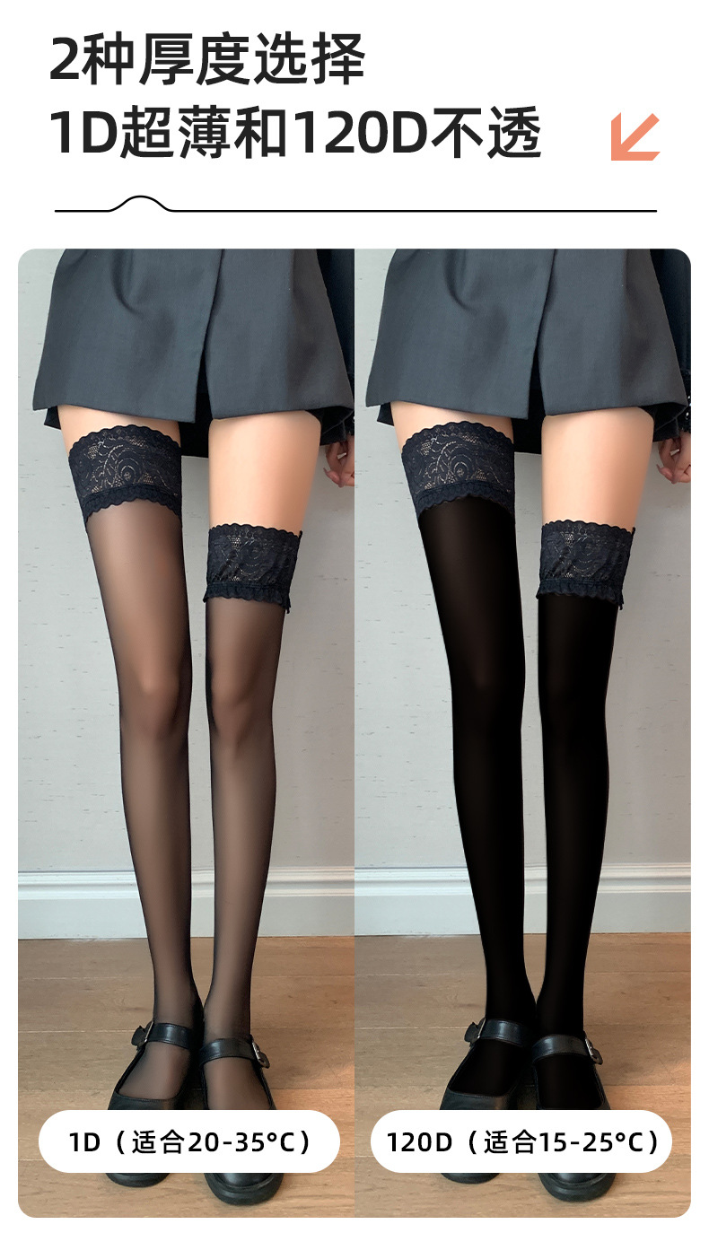 유연한 레이스 스타킹 살포 실크 스타킹 여성의 봄과 가을 벨벳 미끄럼 방지 반쪽 레이스 오버 더 무릎 양말스토어 가기