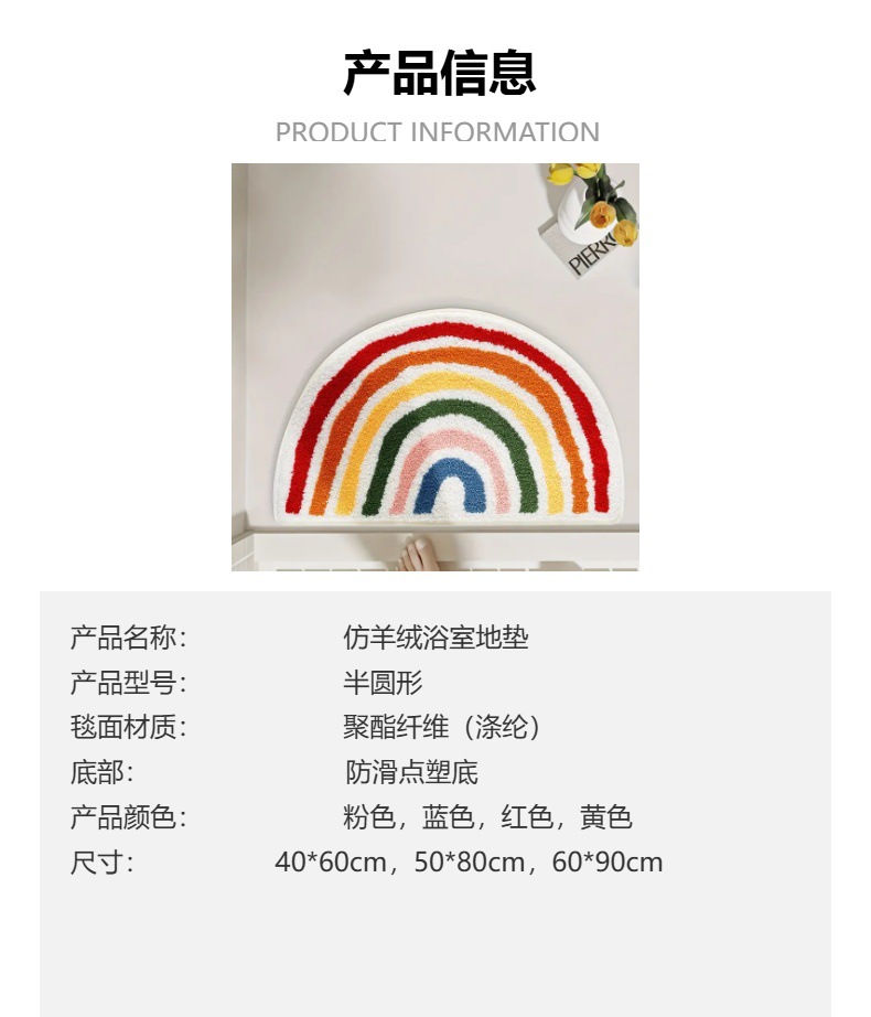 간단한 반원형 무지개 모조 캐시미어 욕실 바닥 매트 가정용 욕실 흡수 매트 화장실 문 미끄럼 방지 매트스토어 가기