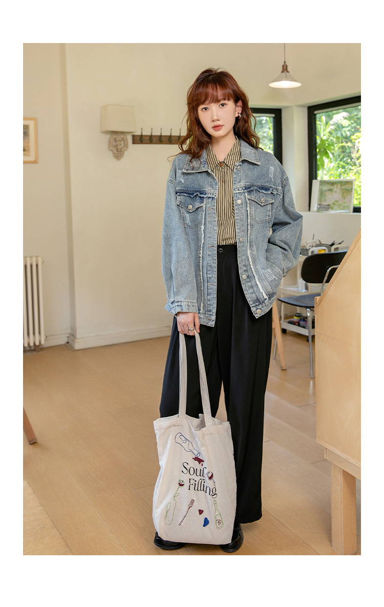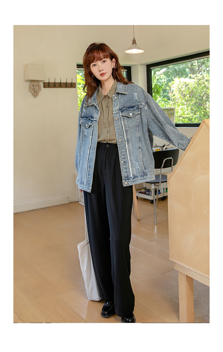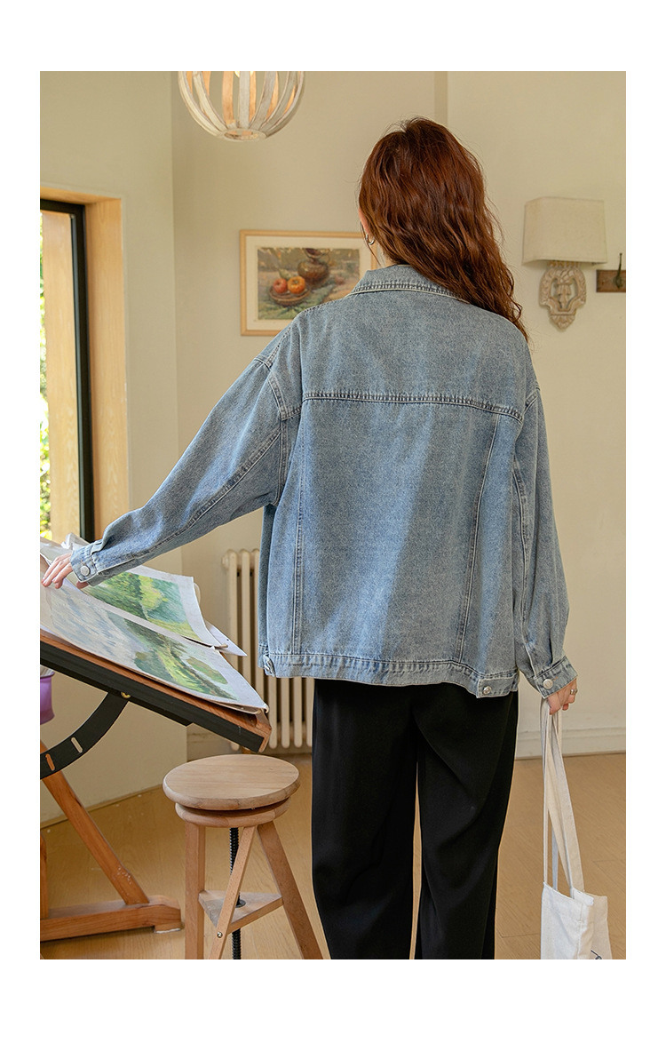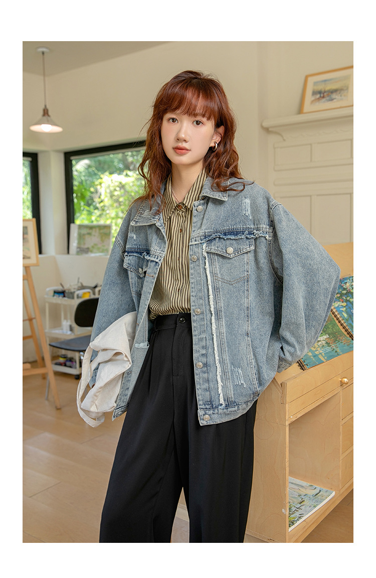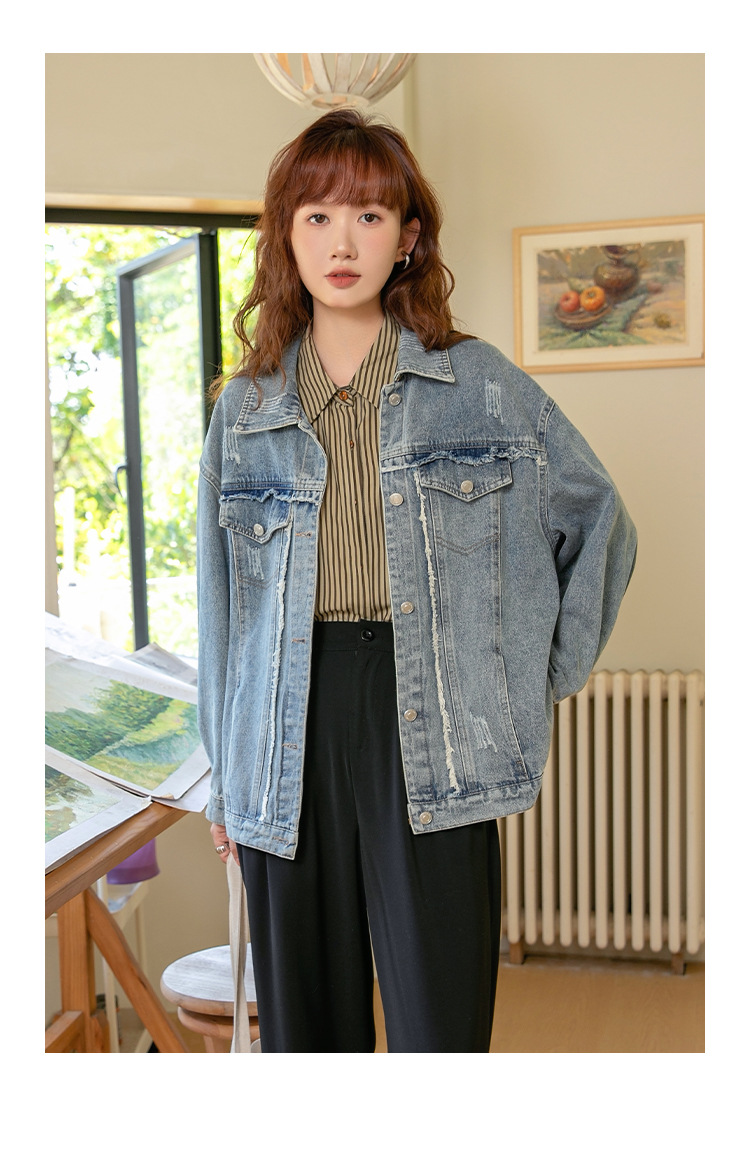 2024 가을과 겨울 새로운 한국어 버전의 복고풍 거친 가장자리 오래된 낡은 느슨한 디자인 데님 코트 여성스토어 가기