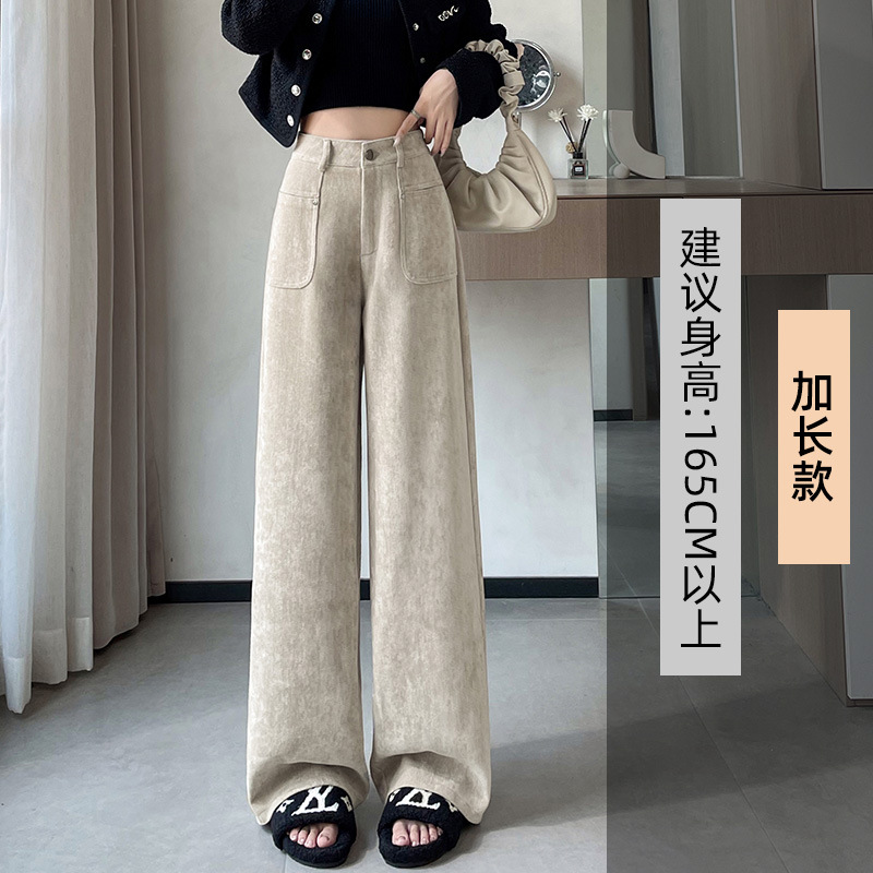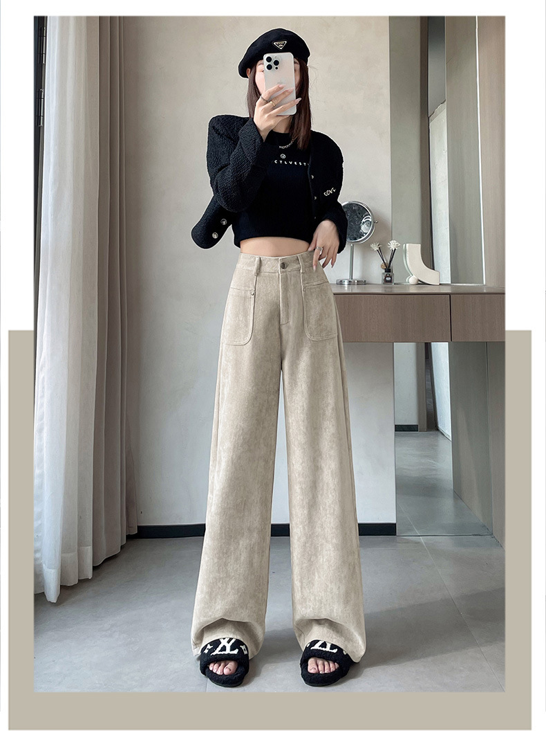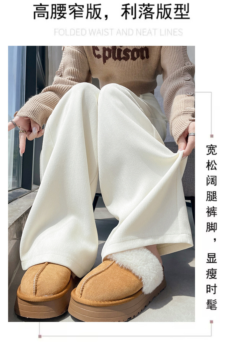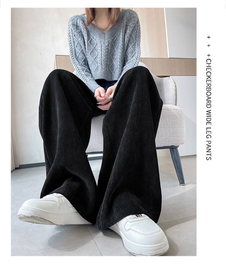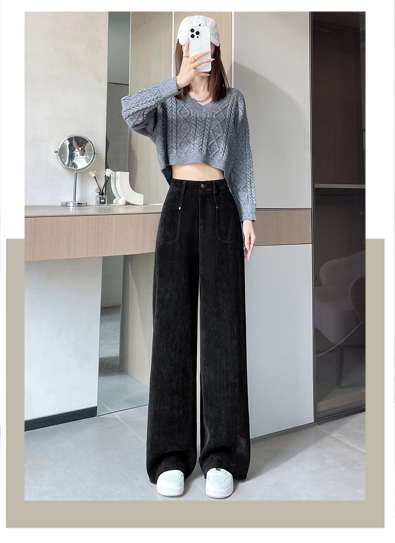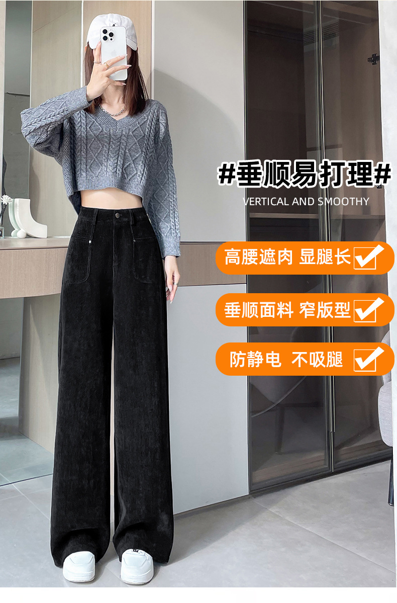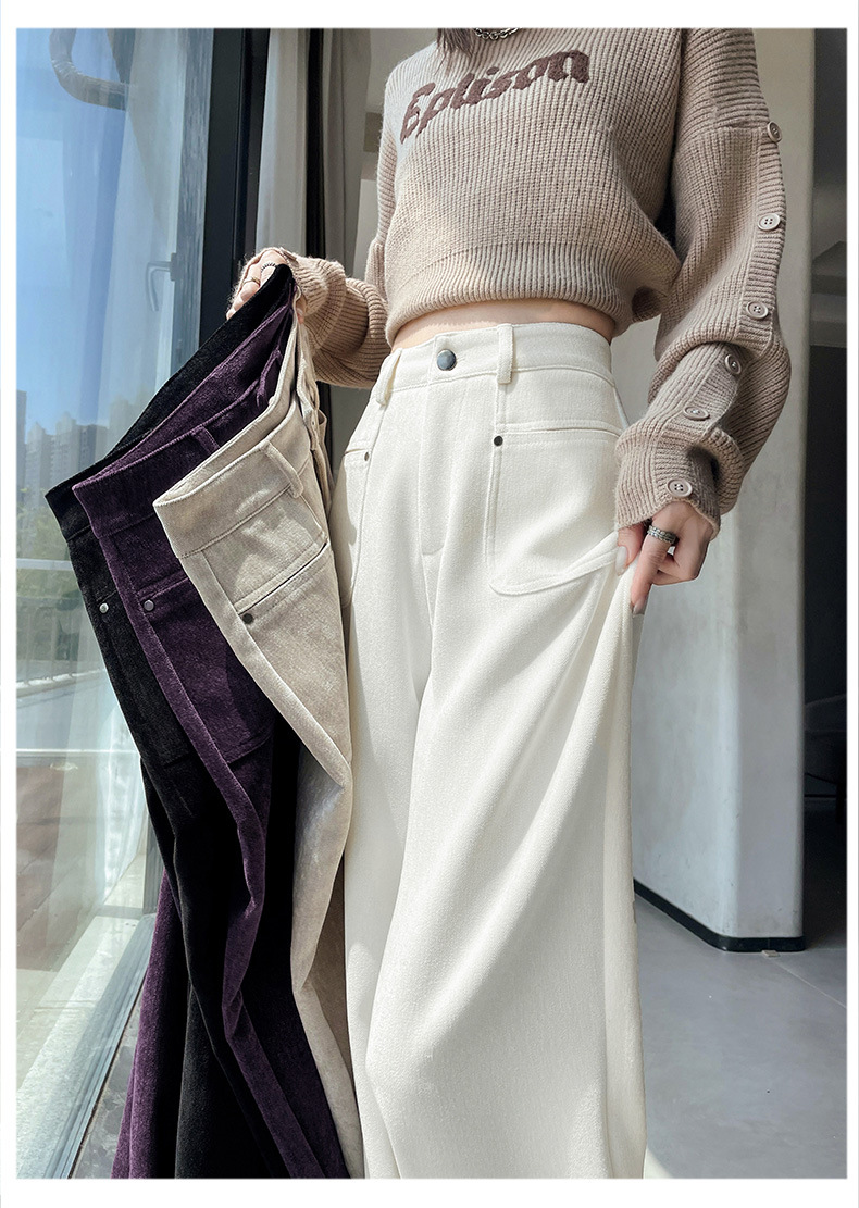 리얼 샷 퍼플 하이 허리 셔닐 와이드 레그 팬츠 여성용 가을과 겨울 새로운 느슨한 수직 슬리밍 스트레이트 세트 바지
