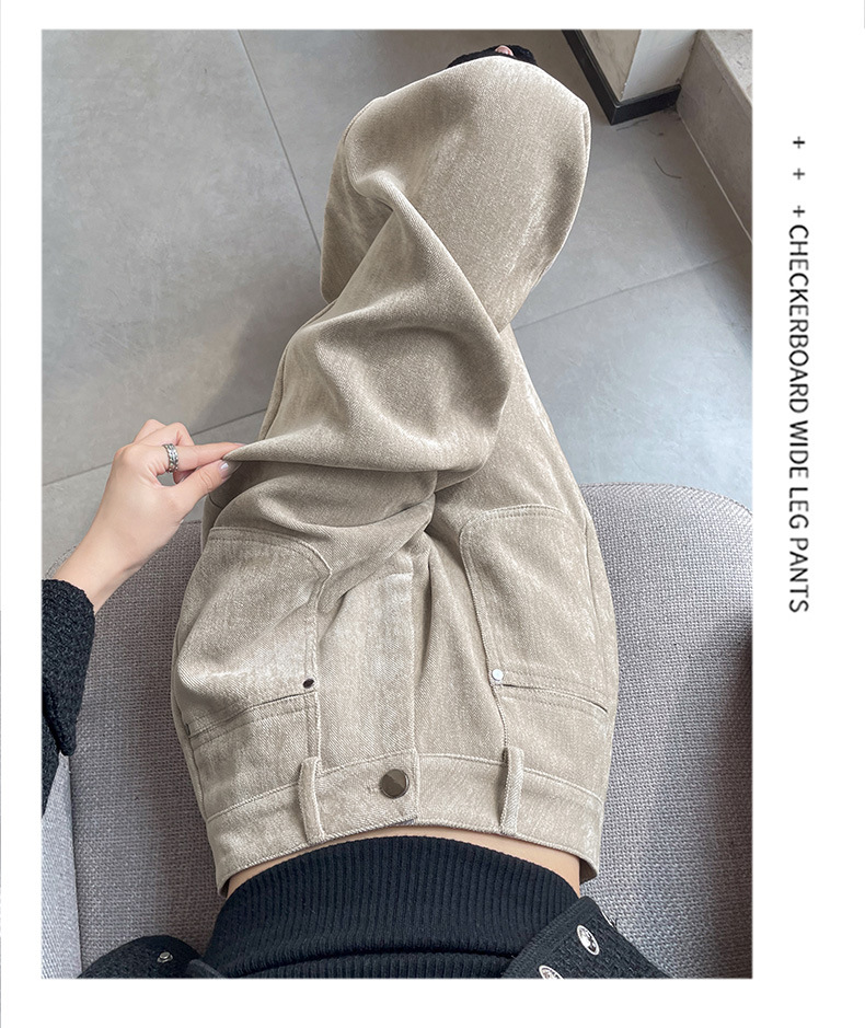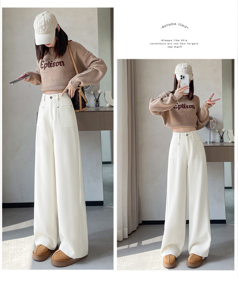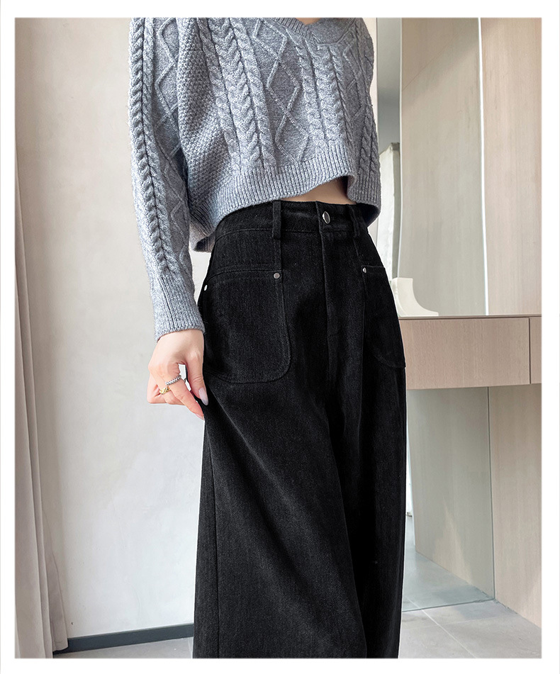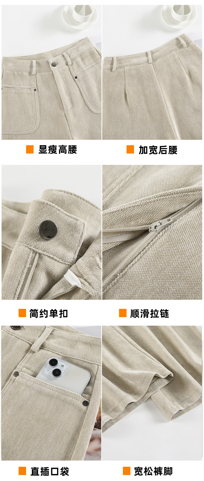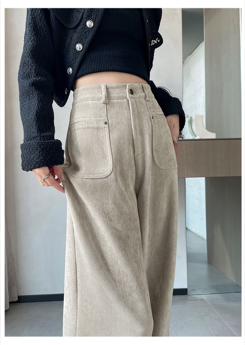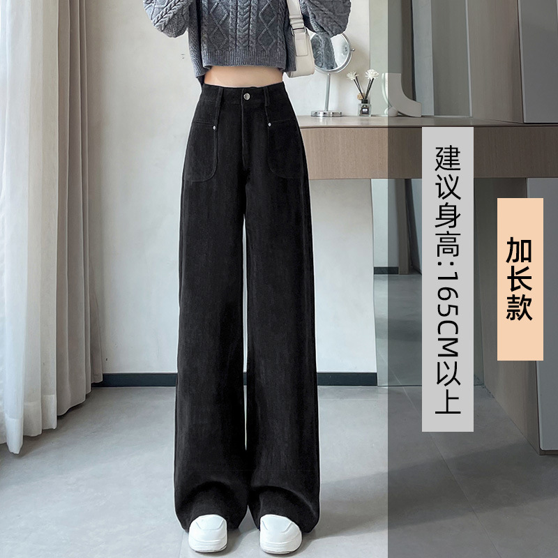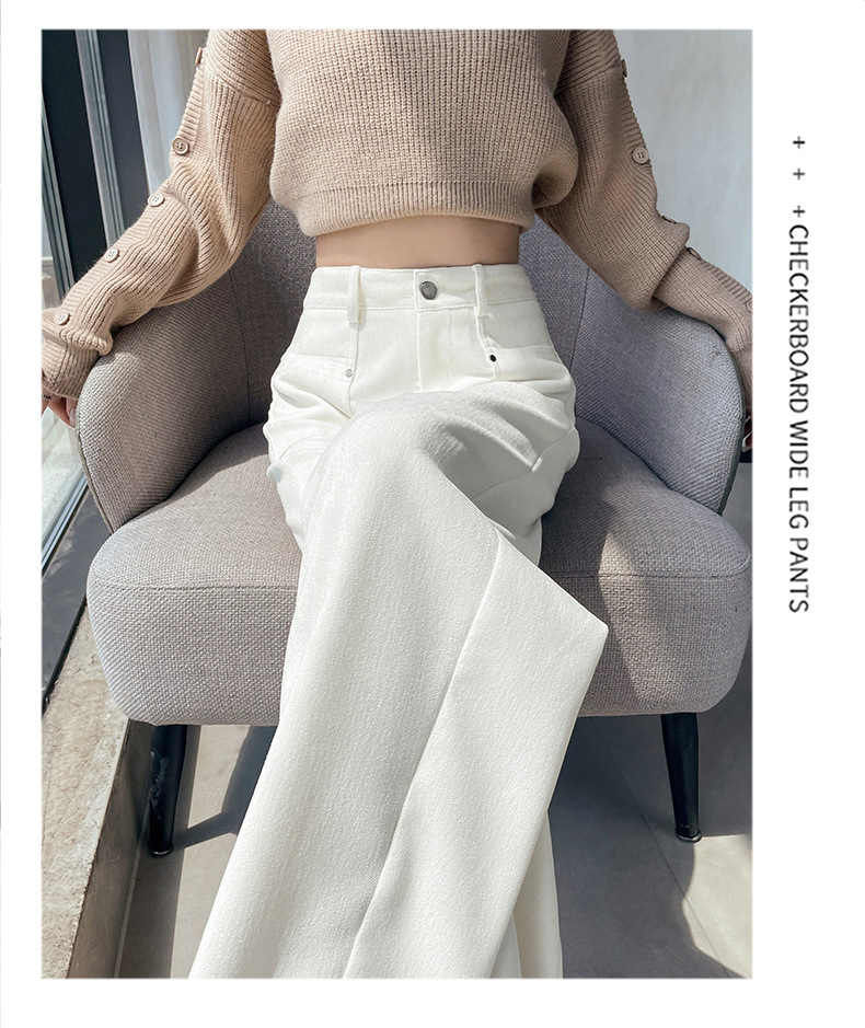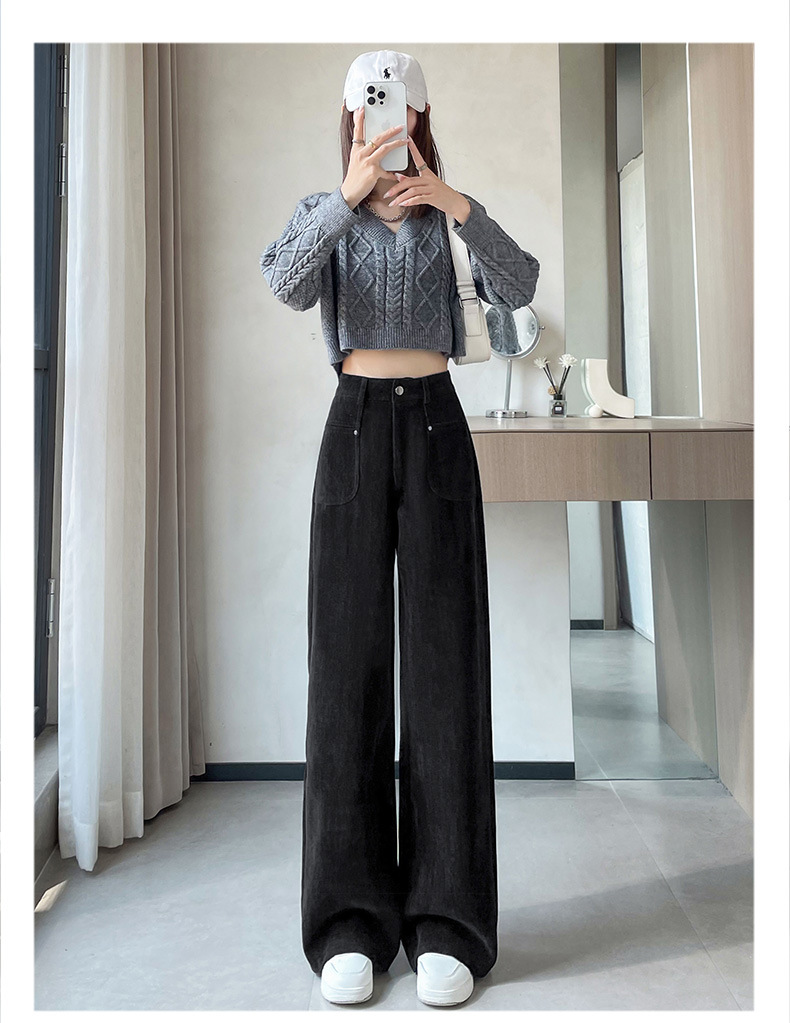 리얼 샷 퍼플 하이 허리 셔닐 와이드 레그 팬츠 여성용 가을과 겨울 새로운 느슨한 수직 슬리밍 스트레이트 세트 바지