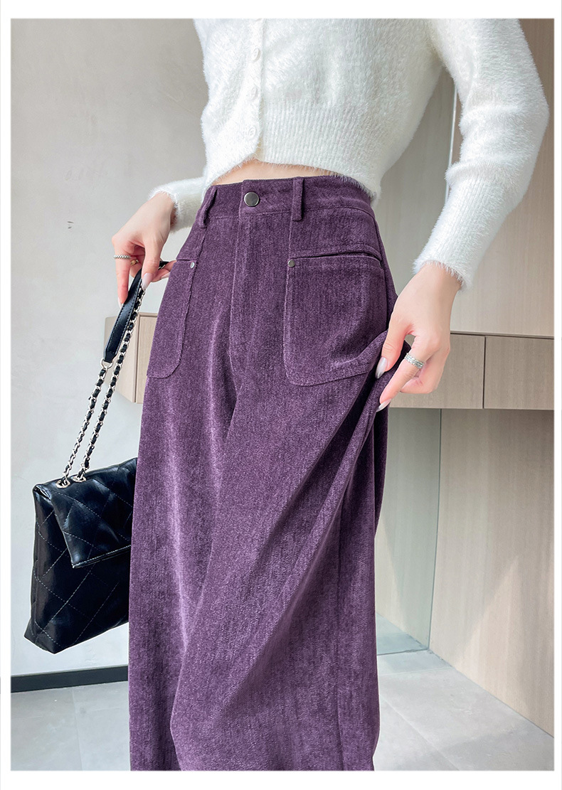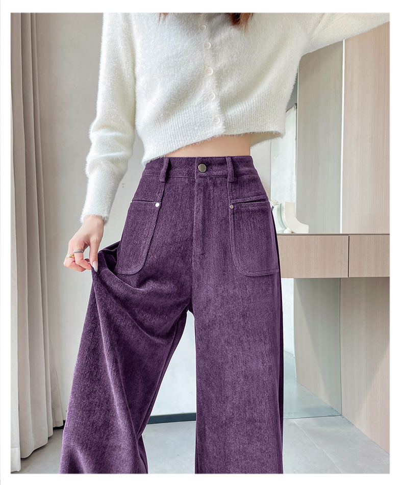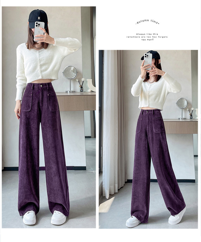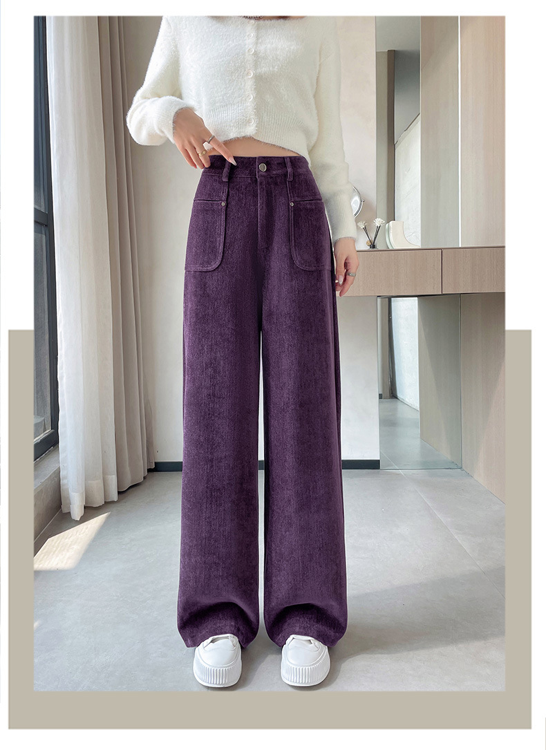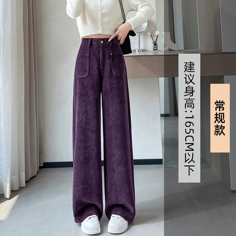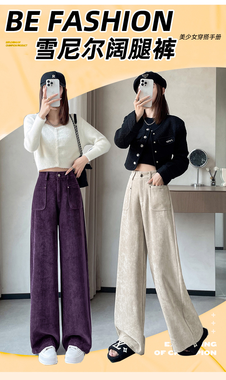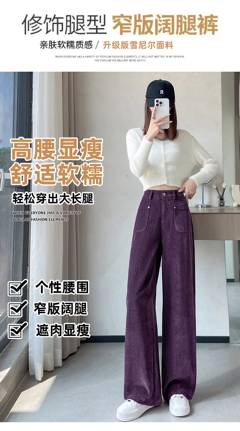 리얼 샷 퍼플 하이 허리 셔닐 와이드 레그 팬츠 여성용 가을과 겨울 새로운 느슨한 수직 슬리밍 스트레이트 세트 바지스토어 가기